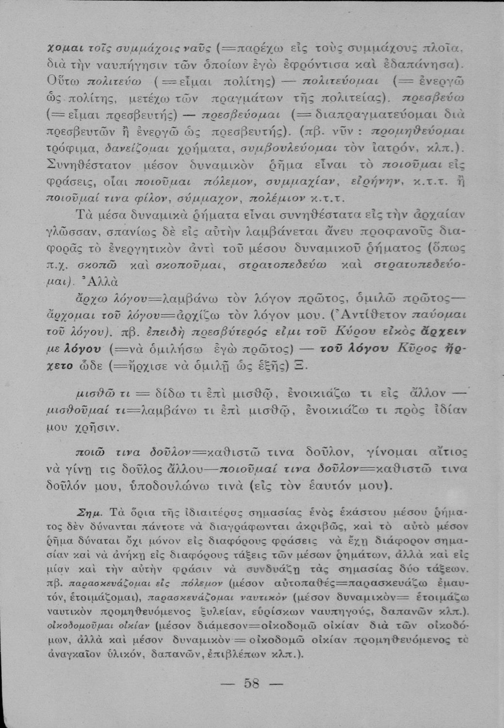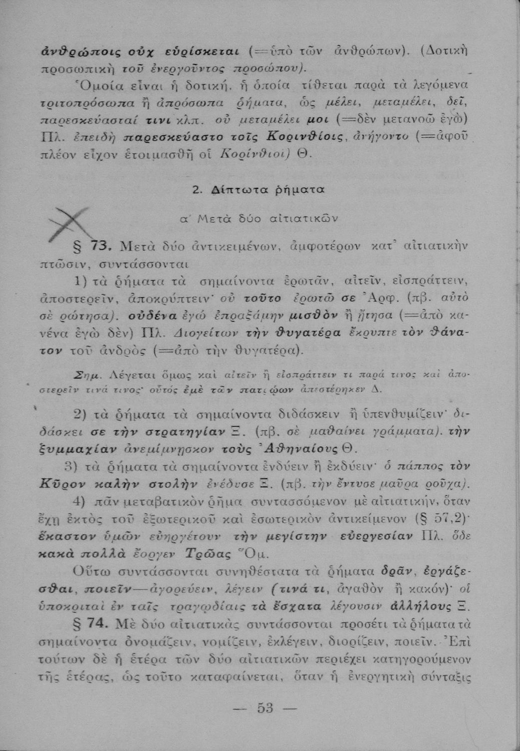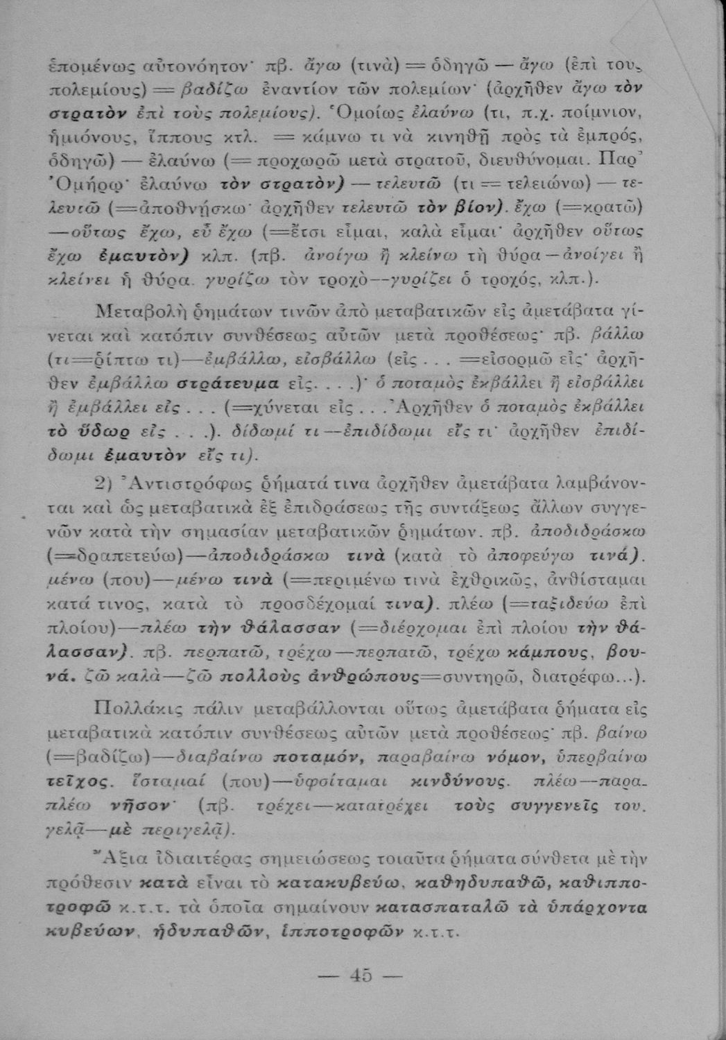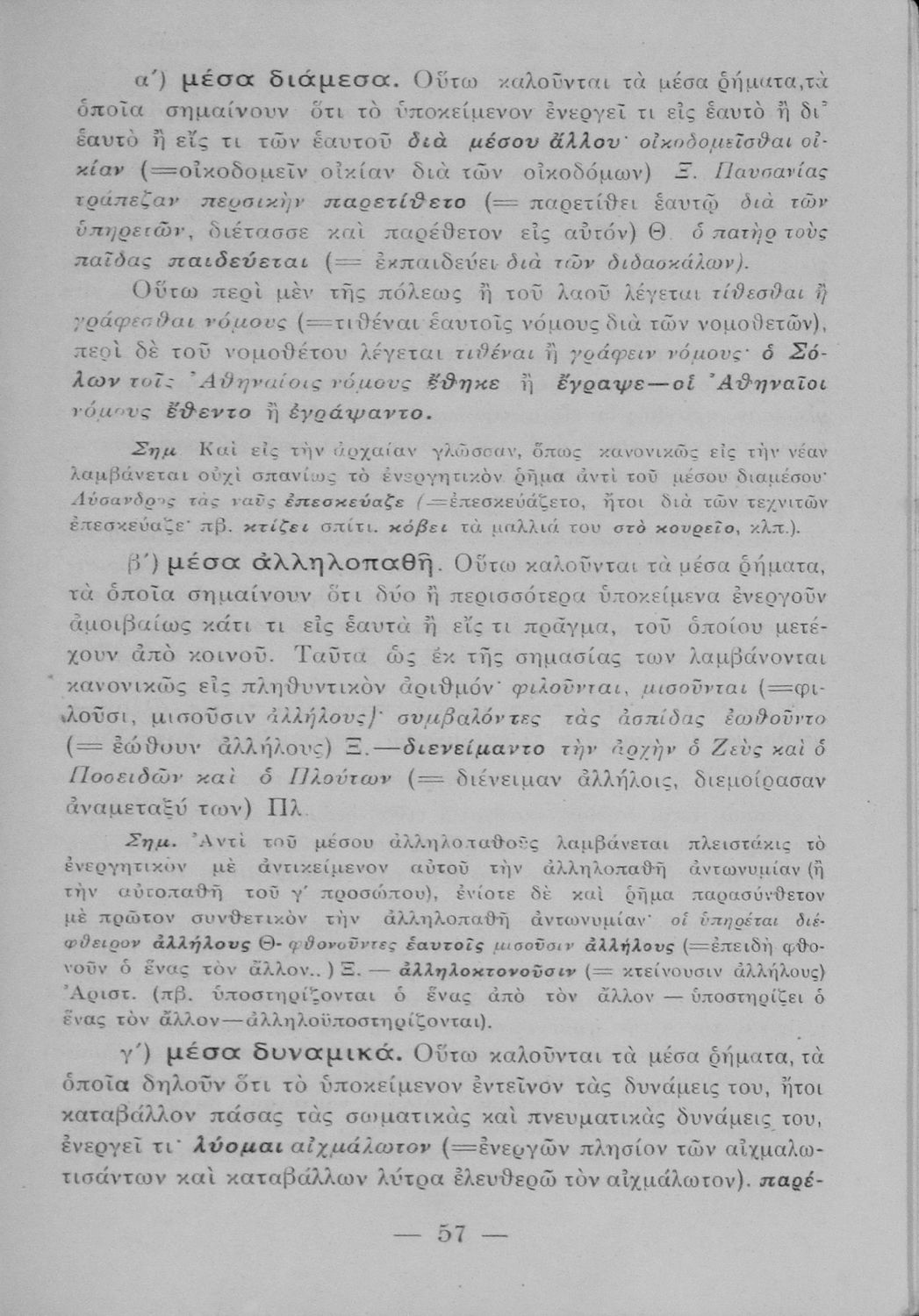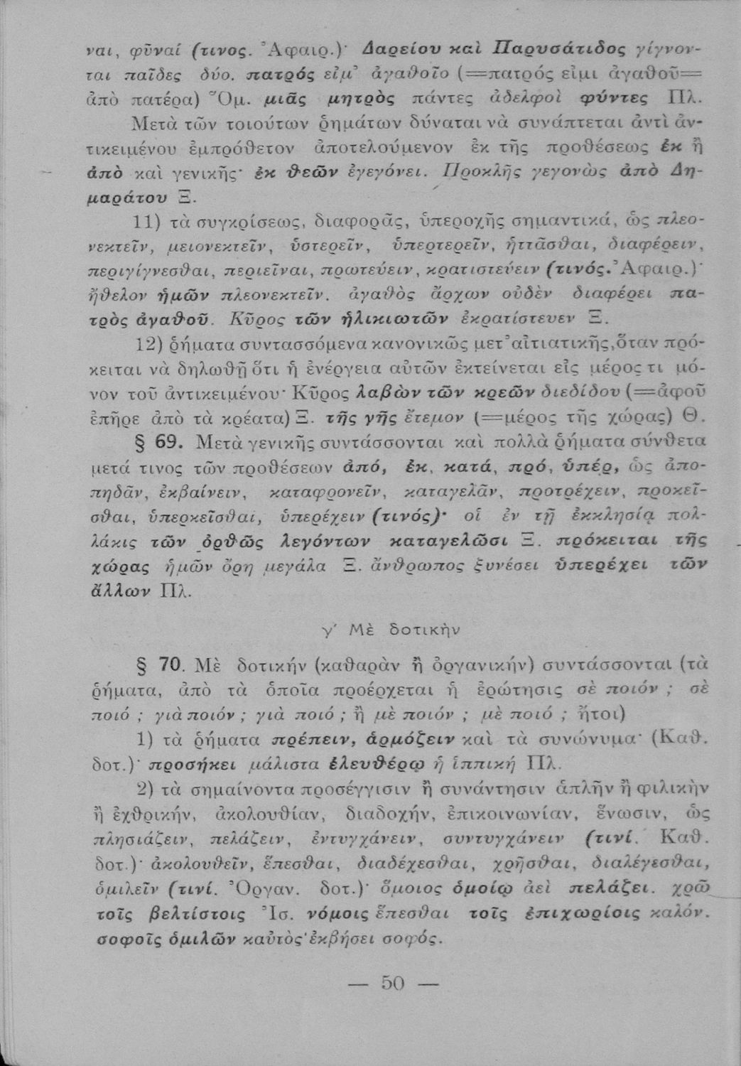 Σχολικό εγχειρίδιο Αρχαίων Ελληνικών που εξετάζει τα μέρη του λόγου και την σύνταξή τους.