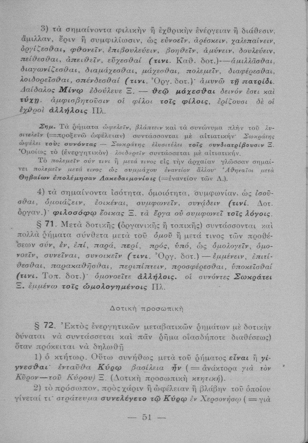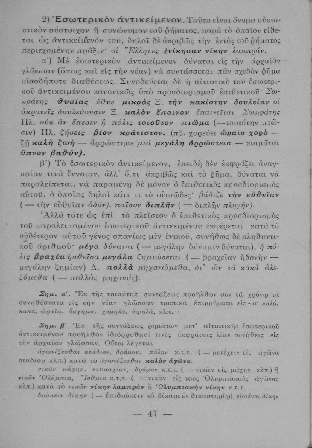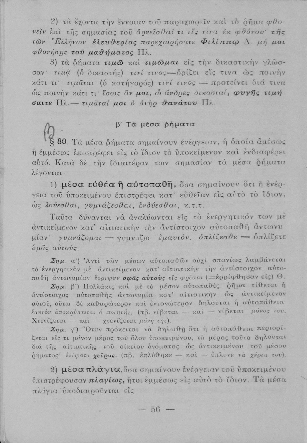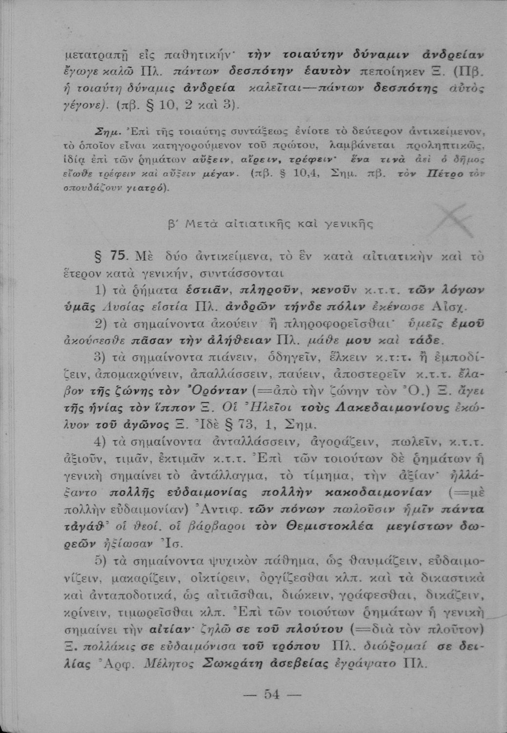 Βαθμίδα εκπαίδευσης: Δευτεροβάθμια Μάθημα: Αρχαία Ελληνικά Γλώσσα: Καθαρεύουσα Παρουσίαση περιεχομένου: Σχολικό εγχειρίδιο Αρχαίων Ελληνικών που εξετάζει τα μέρη του λόγου και την σύνταξή τους. |