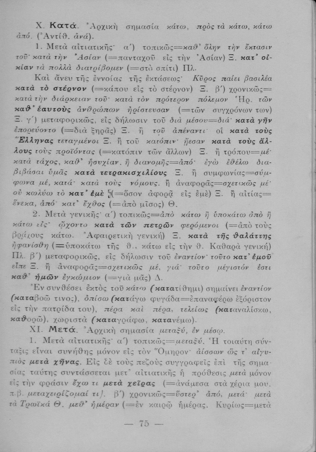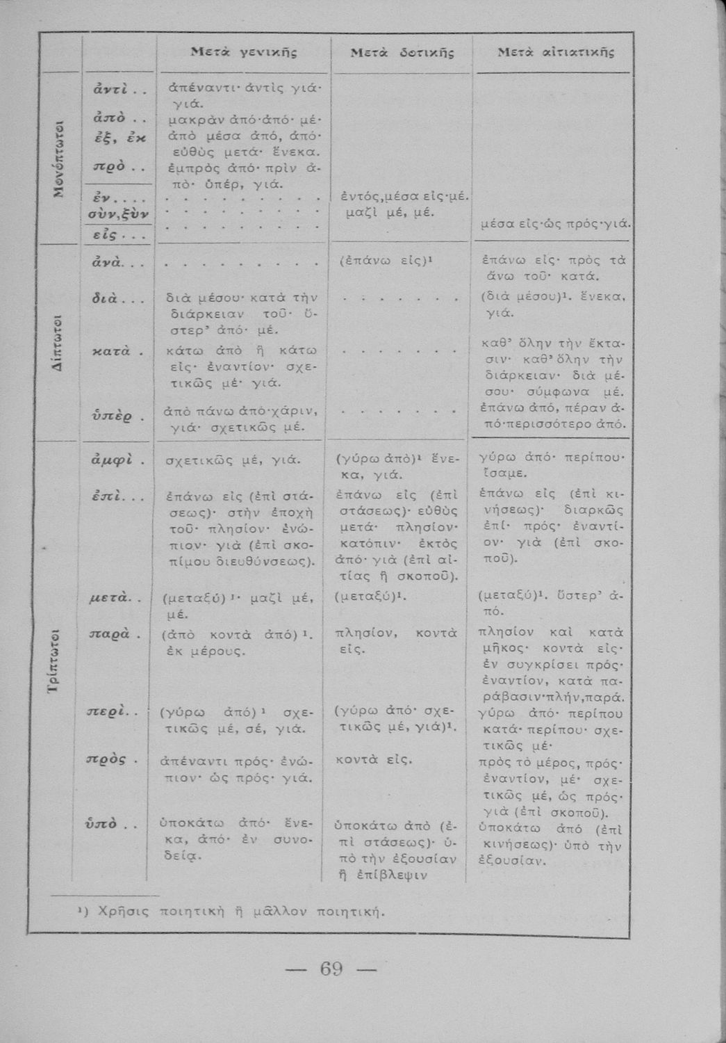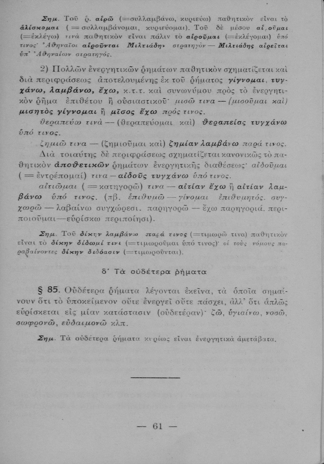 Σχολικό εγχειρίδιο Αρχαίων Ελληνικών που εξετάζει τα μέρη του λόγου και την σύνταξή τους.