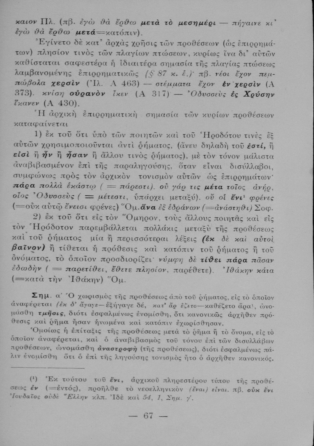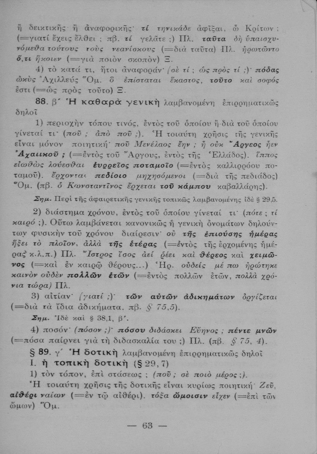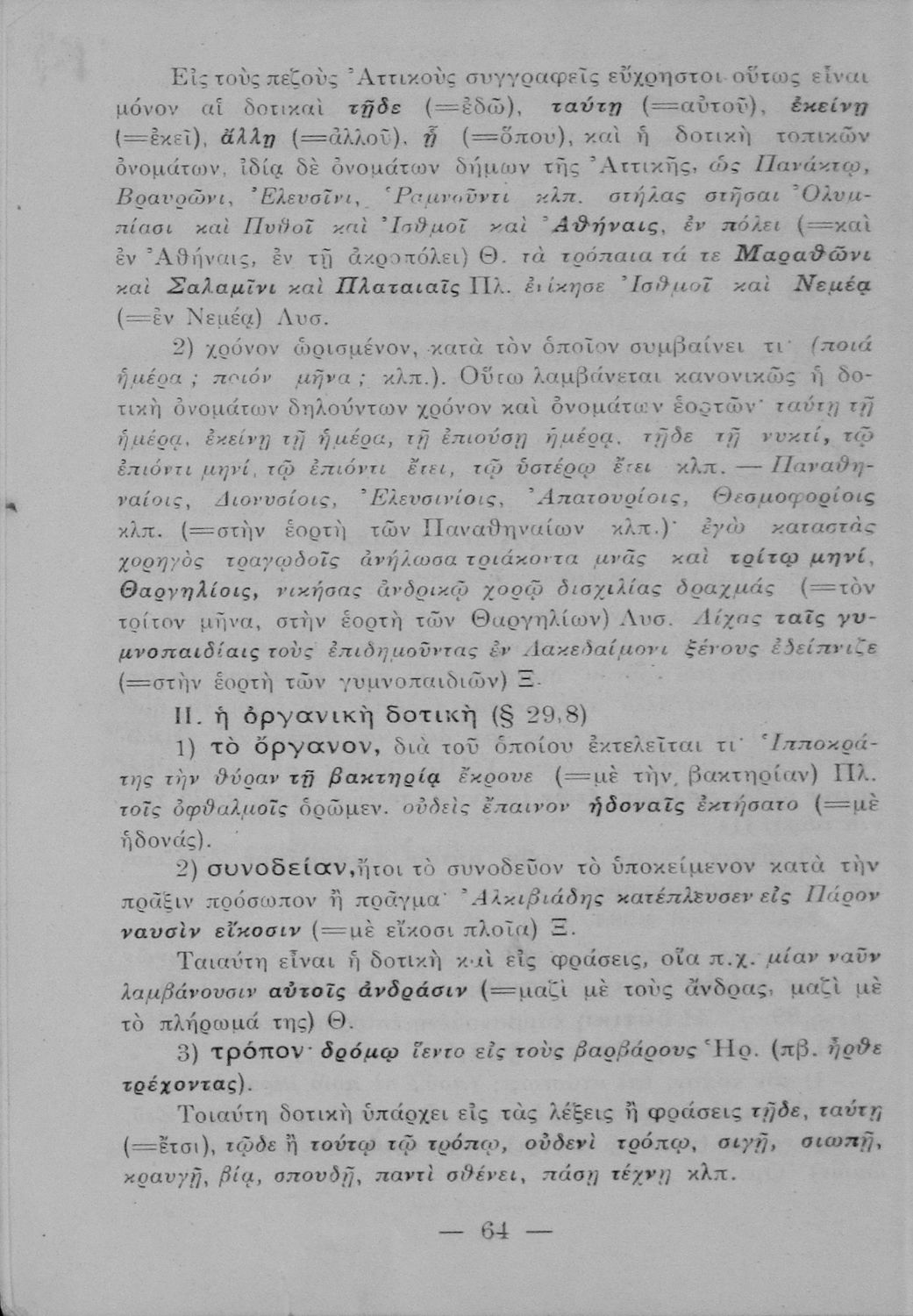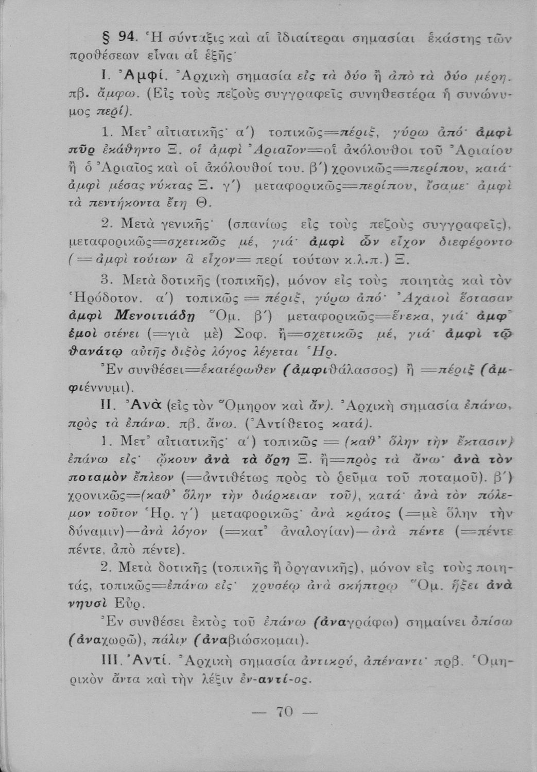 Σχολικό εγχειρίδιο Αρχαίων Ελληνικών που εξετάζει τα μέρη του λόγου και την σύνταξή τους.