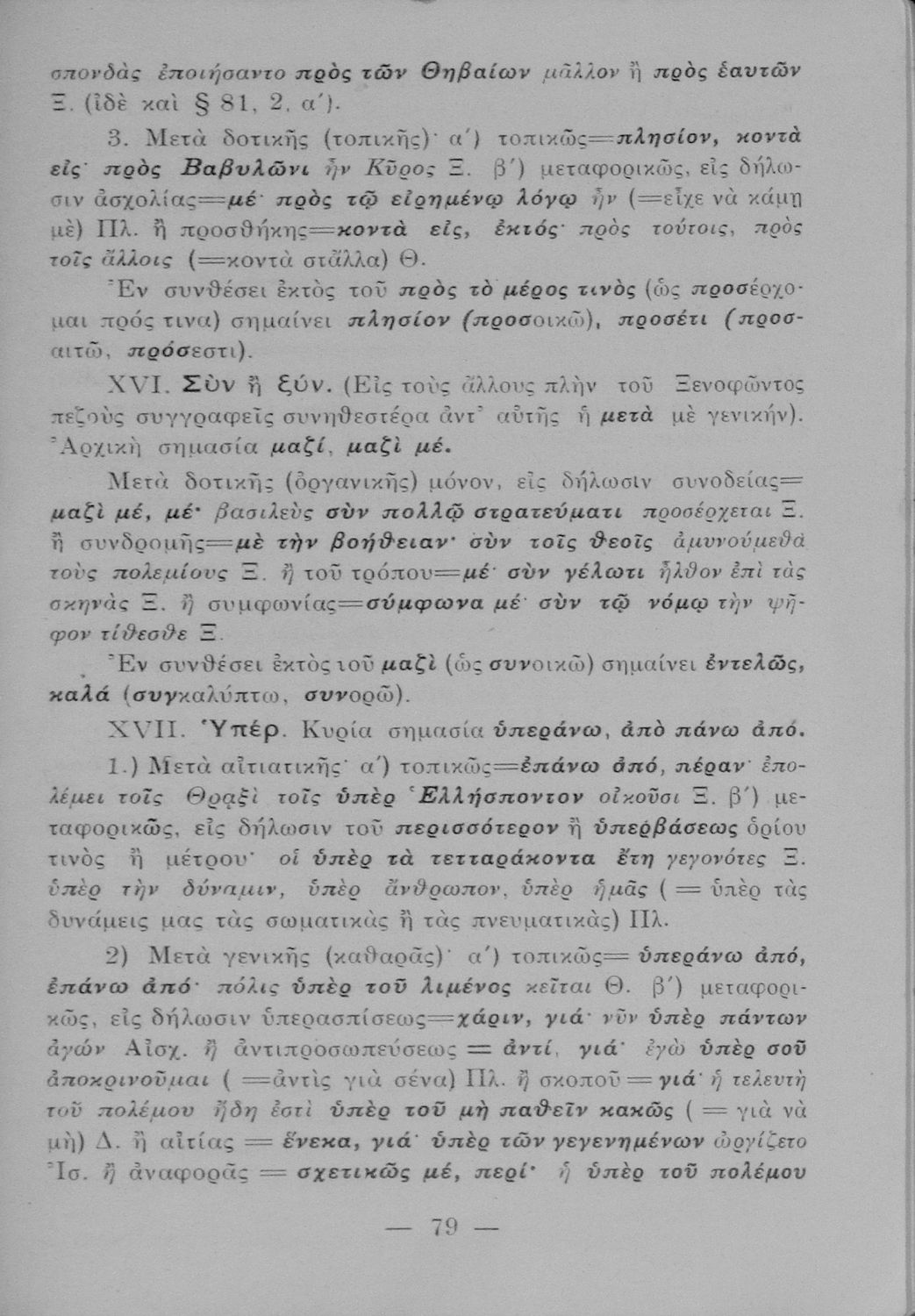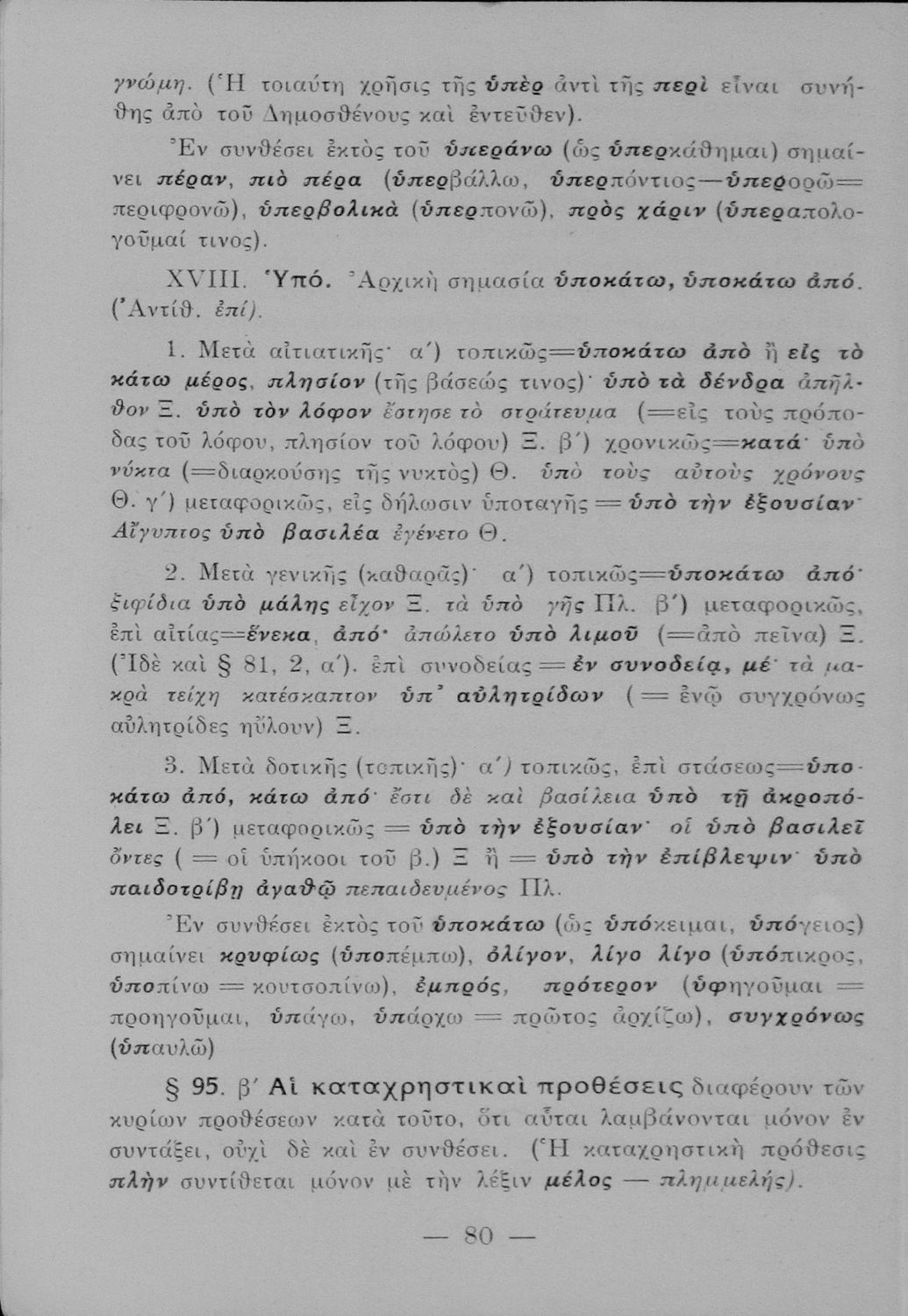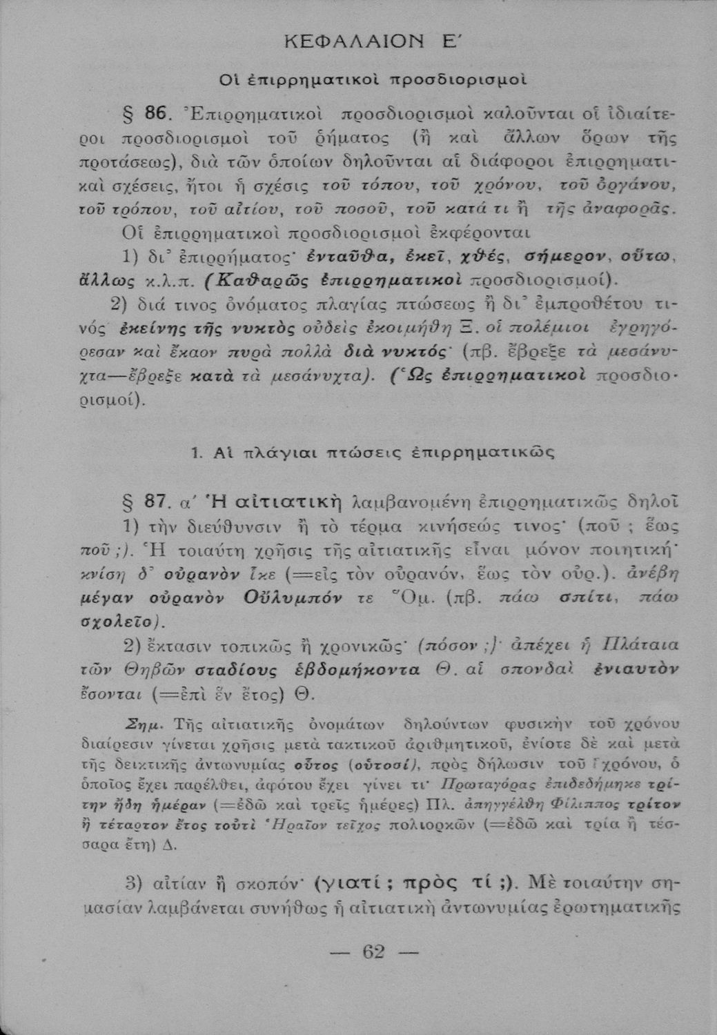 Βαθμίδα εκπαίδευσης: Δευτεροβάθμια Μάθημα: Αρχαία Ελληνικά Γλώσσα: Καθαρεύουσα Παρουσίαση περιεχομένου: Σχολικό εγχειρίδιο Αρχαίων Ελληνικών που εξετάζει τα μέρη του λόγου και την σύνταξή τους. |