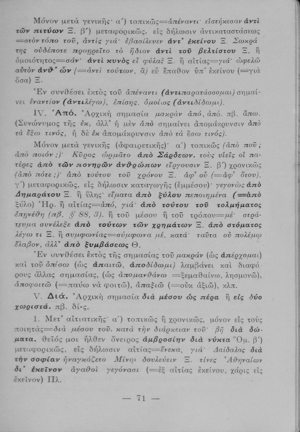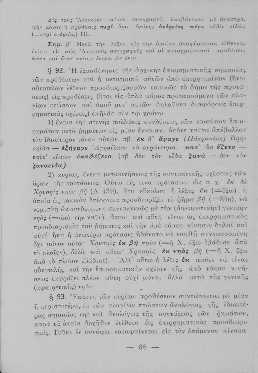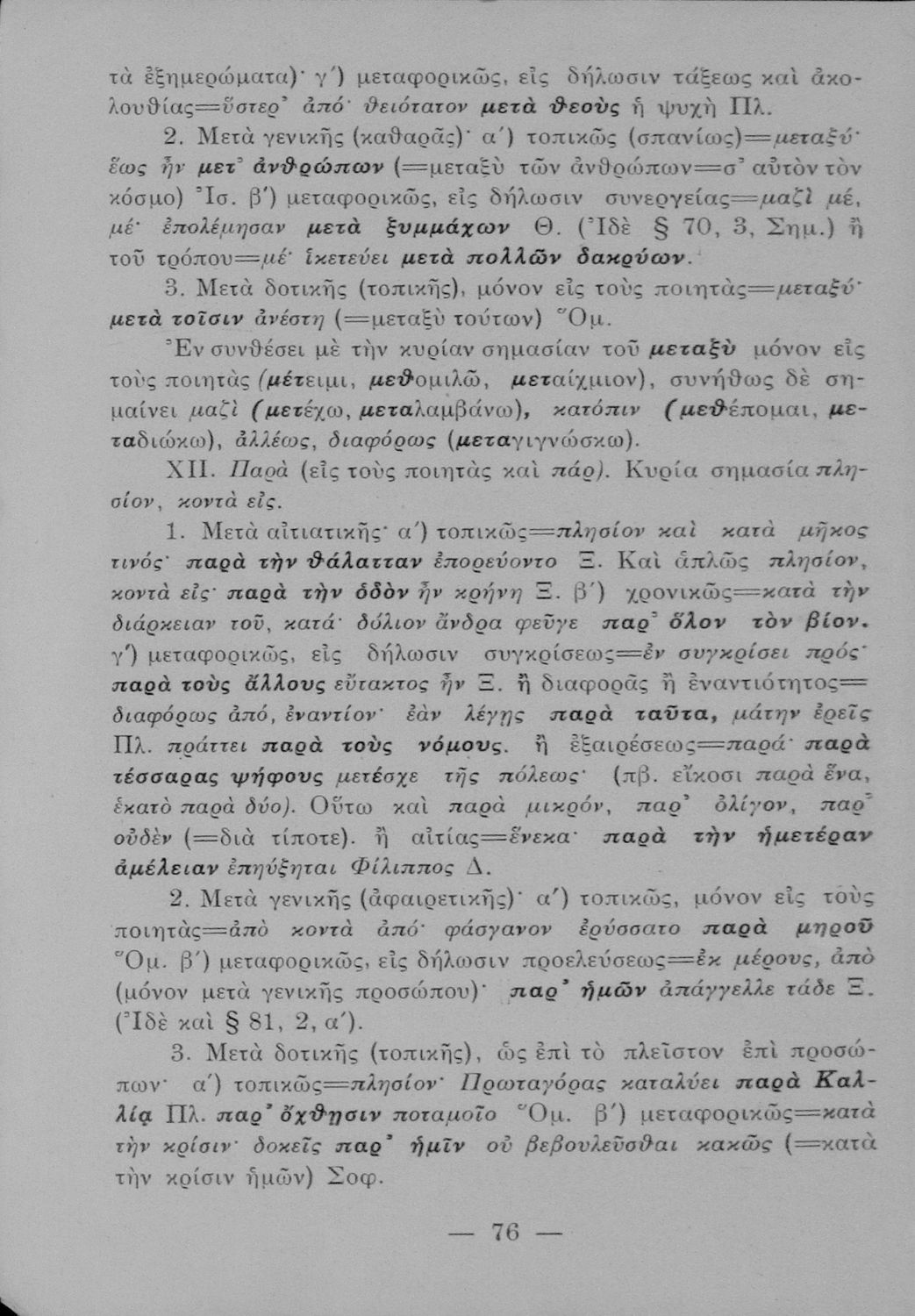 Βαθμίδα εκπαίδευσης: Δευτεροβάθμια Μάθημα: Αρχαία Ελληνικά Γλώσσα: Καθαρεύουσα Παρουσίαση περιεχομένου: Σχολικό εγχειρίδιο Αρχαίων Ελληνικών που εξετάζει τα μέρη του λόγου και την σύνταξή τους. |