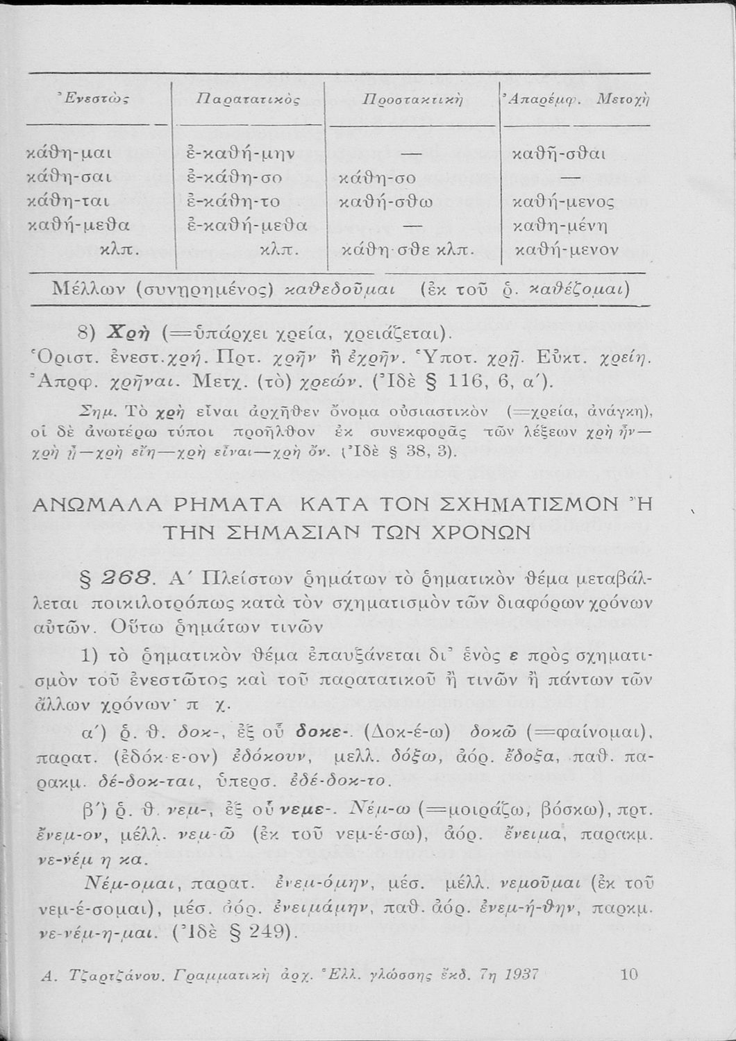 Παρουσίαση περιεχομένου: Σχολικό εγχειρίδιο Αρχαίων Ελληνικών που περιέχει τους κανόνες γραμματικής και είναι χωρισμένο σε φθογγολογικό, τυπολογικό και ετυμολογικό μέρος. Περιέχει και κατάλογο ανωμάλων ρημάτων.