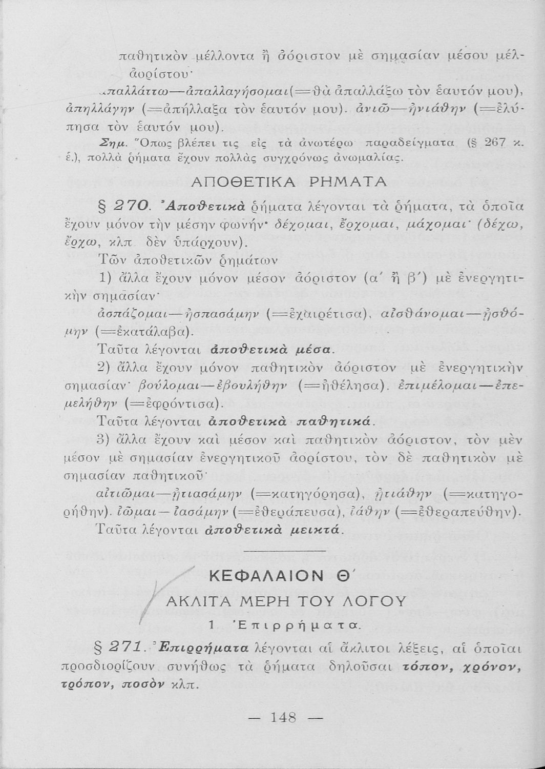 Σχολικό εγχειρίδιο Αρχαίων Ελληνικών Γυμνασίου που περιέχει τους κανόνες γραμματικής και είναι χωρισμένο σε φθογγολογικό, τυπολογικό και ετυμολογικό μέρος. Περιέχει και κατάλογο ανωμάλων ρημάτων.