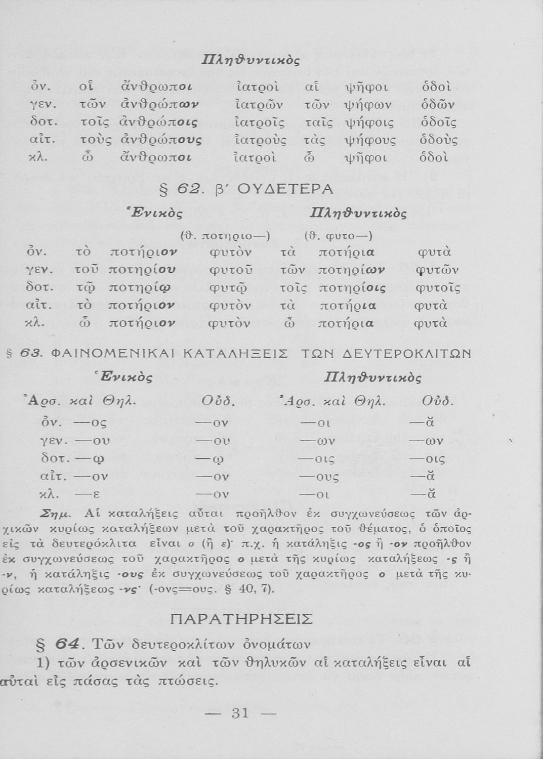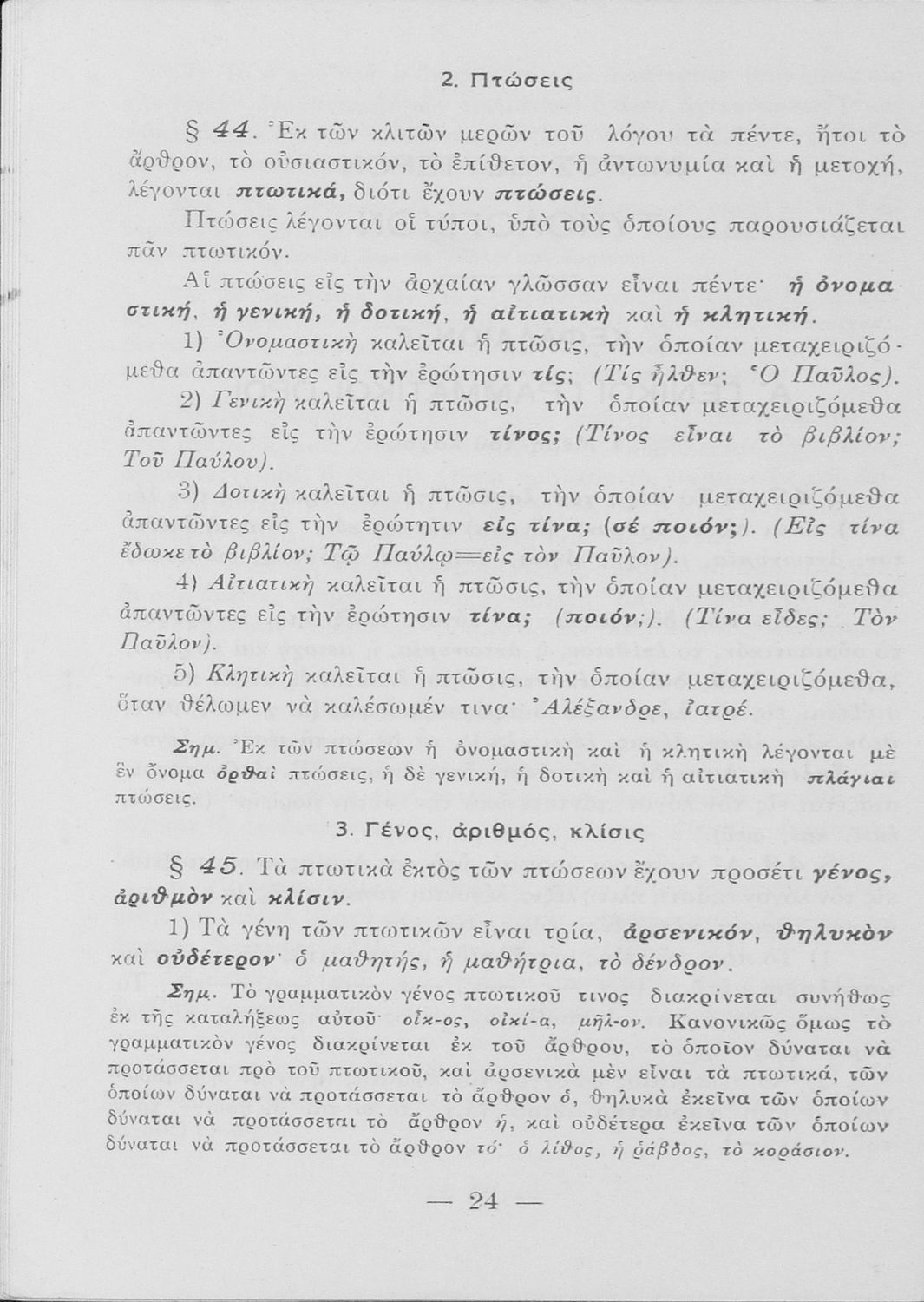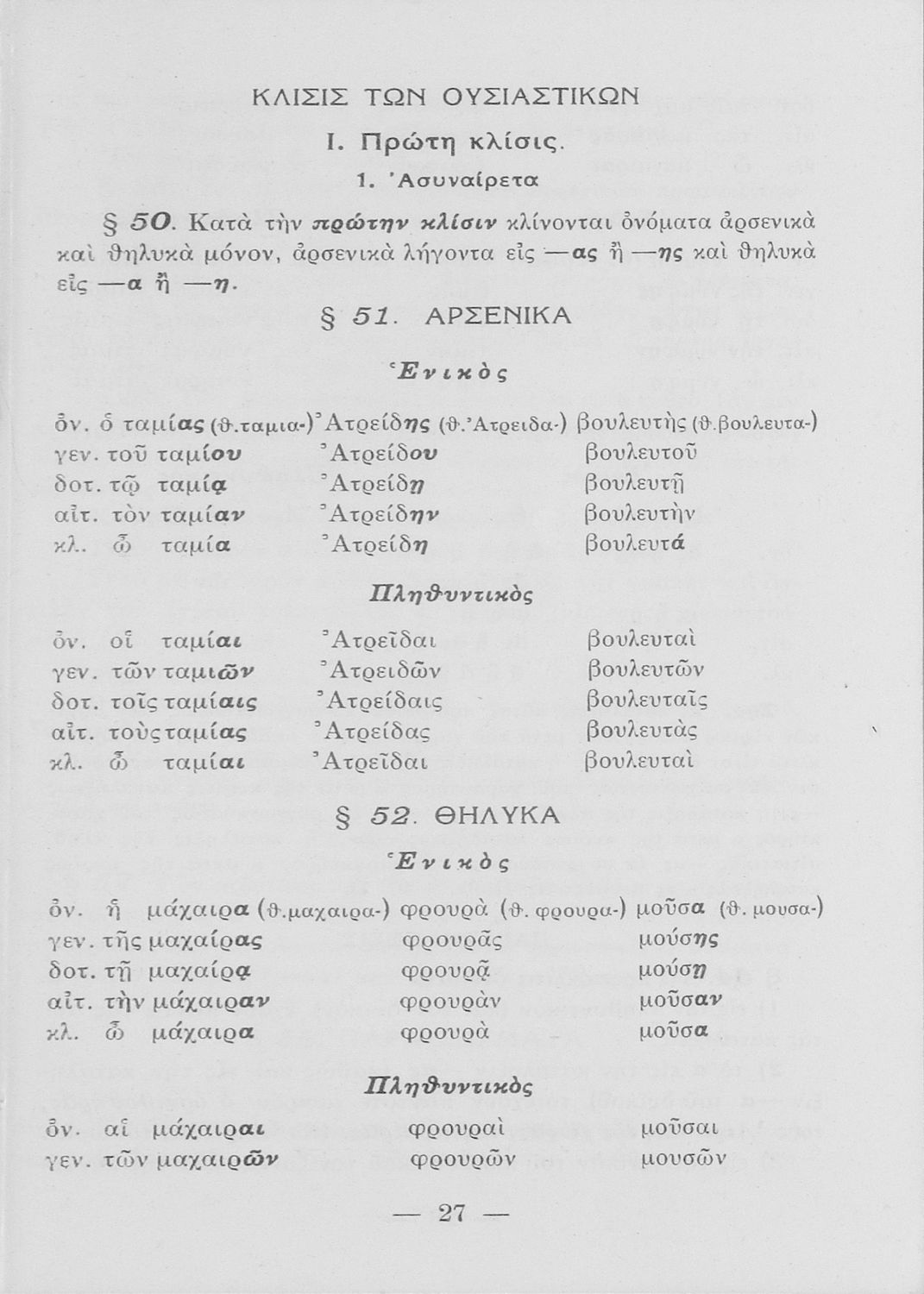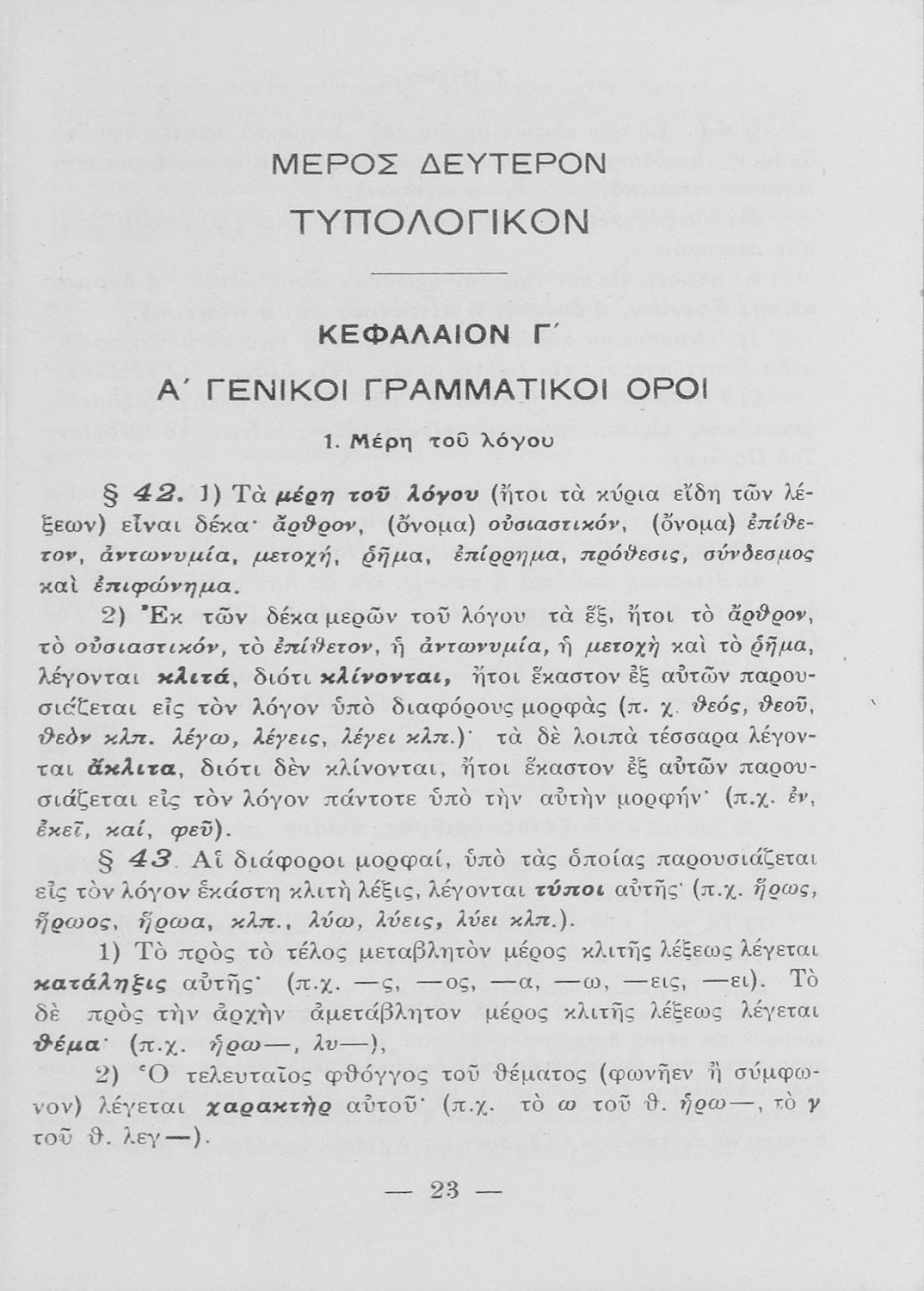 Σχολικό εγχειρίδιο Αρχαίων Ελληνικών που περιέχει τους κανόνες γραμματικής και είναι χωρισμένο σε φθογγολογικό, τυπολογικό και ετυμολογικό μέρος. Περιέχει και κατάλογο ανωμάλων ρημάτων.