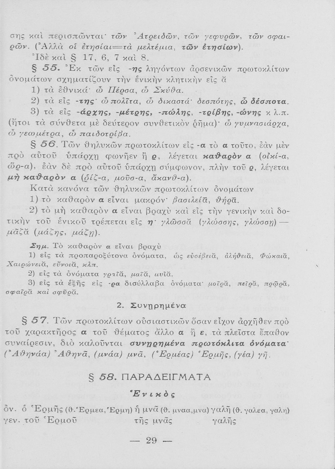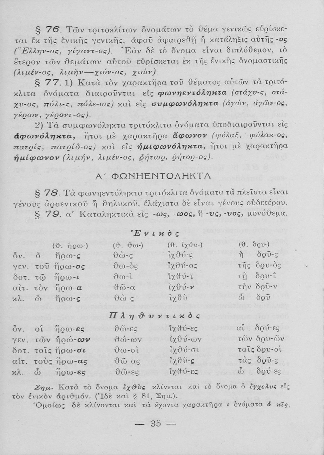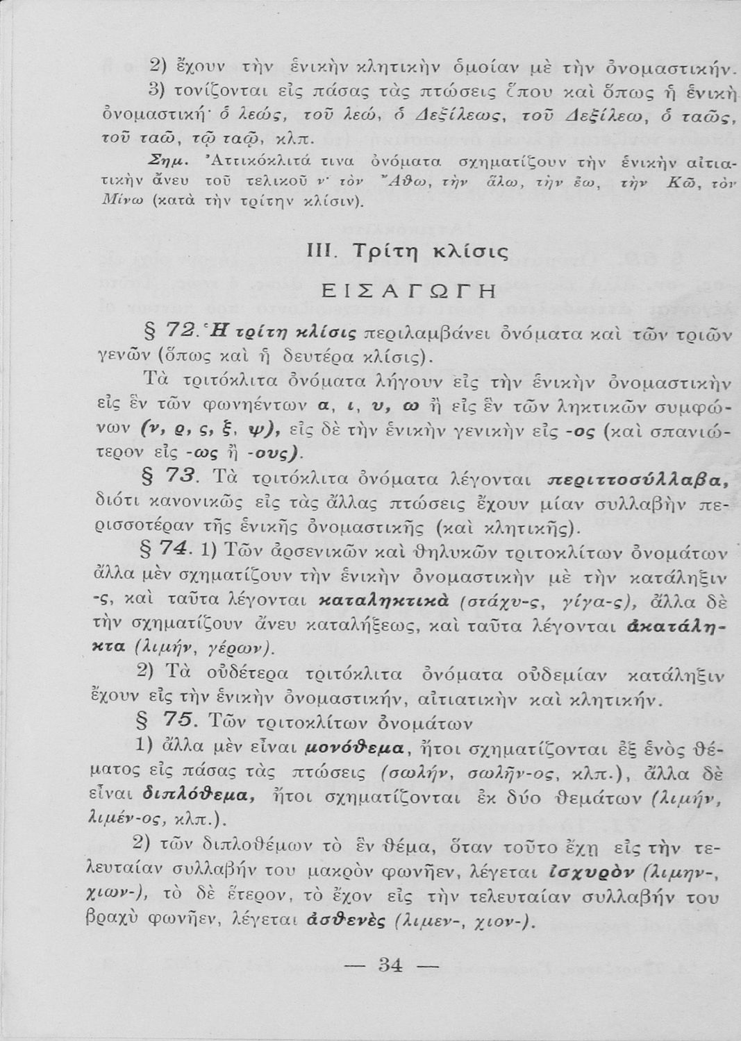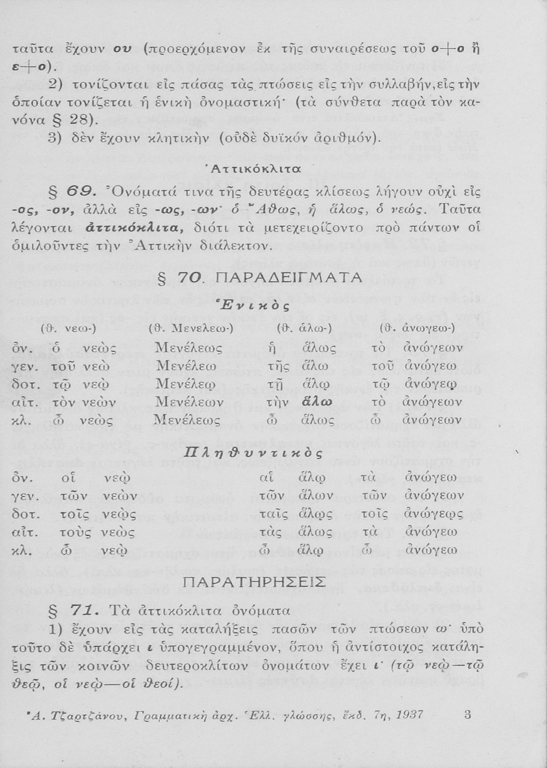 Σχολικό εγχειρίδιο Αρχαίων Ελληνικών που περιέχει τους κανόνες γραμματικής και είναι χωρισμένο σε φθογγολογικό, τυπολογικό και ετυμολογικό μέρος. Περιέχει και κατάλογο ανωμάλων ρημάτων.