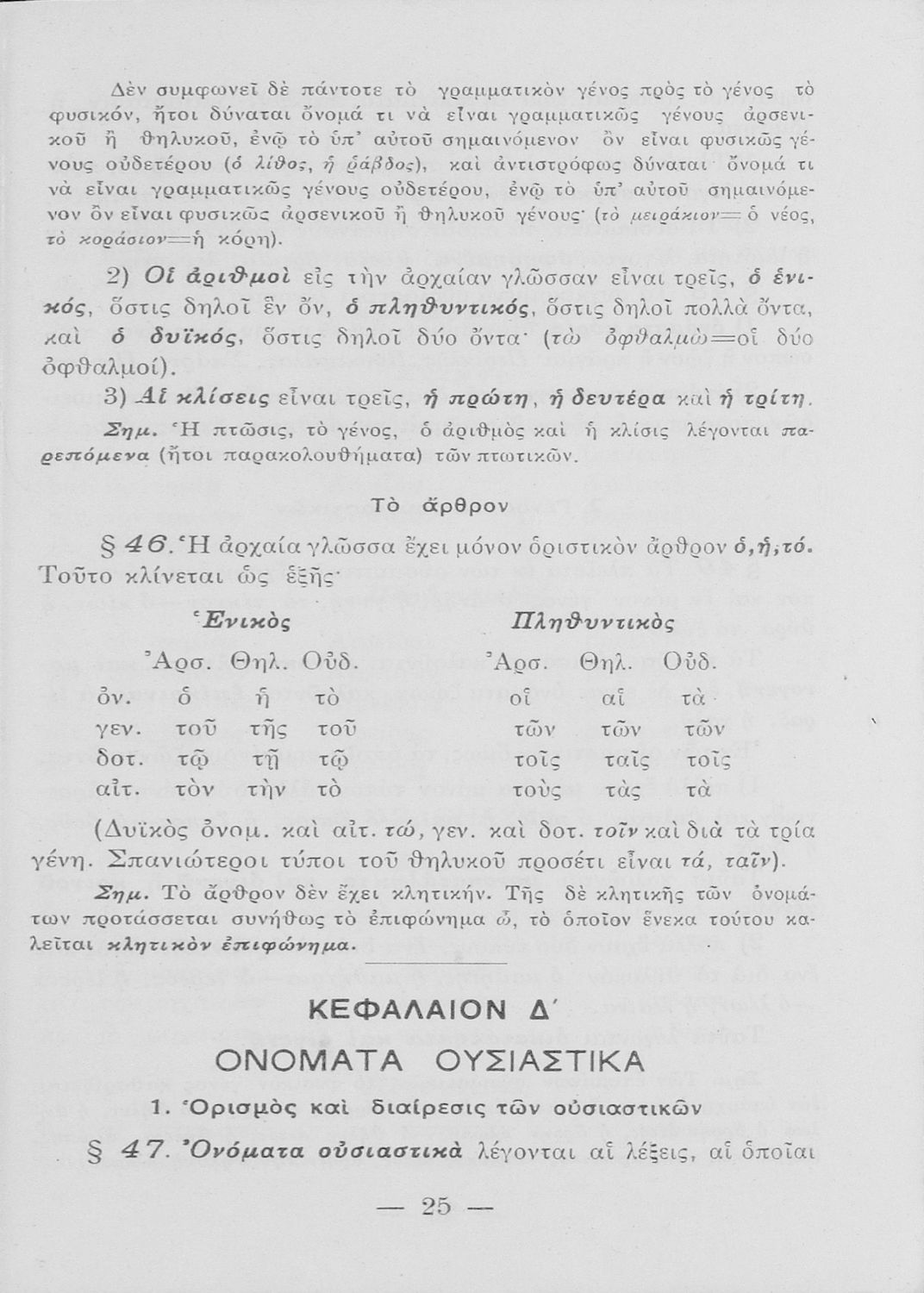 Σχολικό εγχειρίδιο Αρχαίων Ελληνικών Γυμνασίου που περιέχει τους κανόνες γραμματικής και είναι χωρισμένο σε φθογγολογικό, τυπολογικό και ετυμολογικό μέρος. Περιέχει και κατάλογο ανωμάλων ρημάτων.