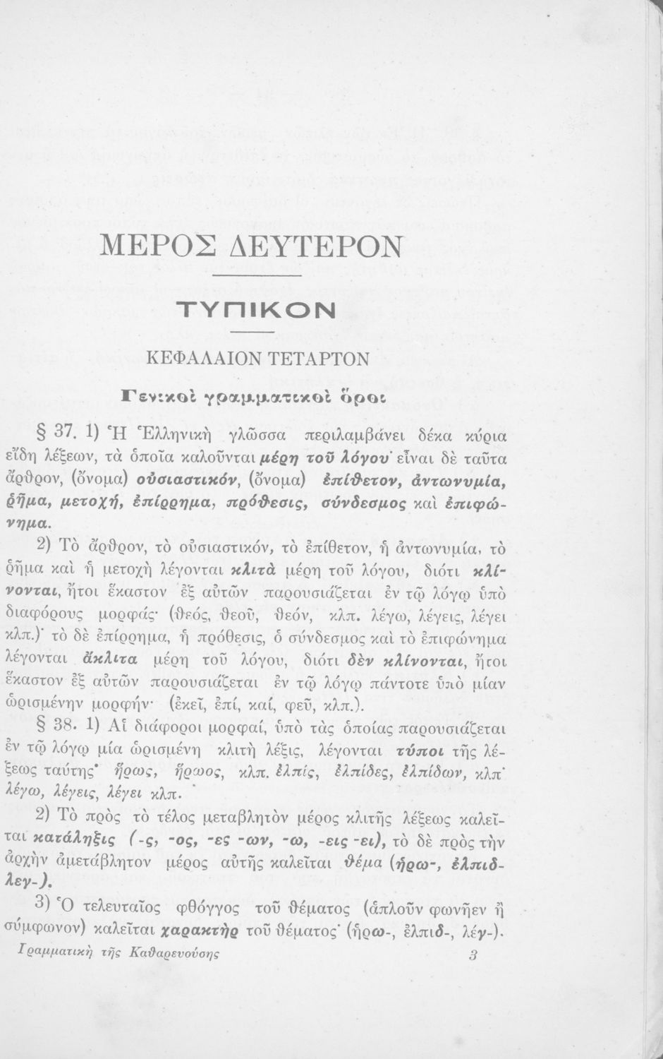 Σχολικό εγχειρίδιο Γλώσσας που περιλαμβάνει τους γραμματικούς κανόνες της καθαρεύουσας και είναι χωρισμένο σε φθογγολογικό και τυπολογικό μέρος