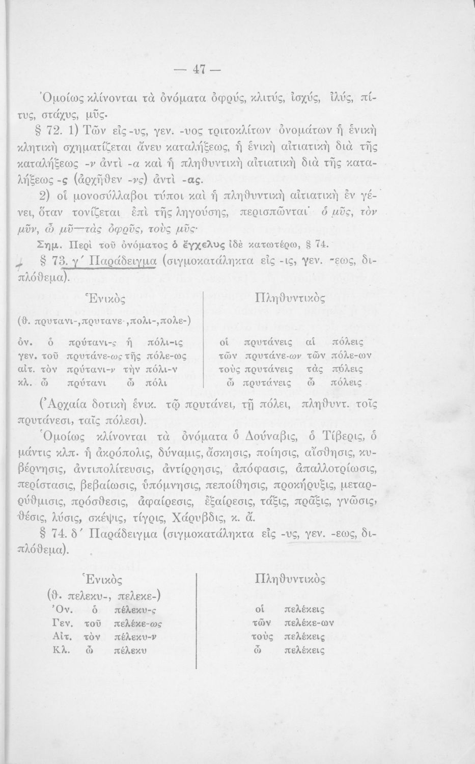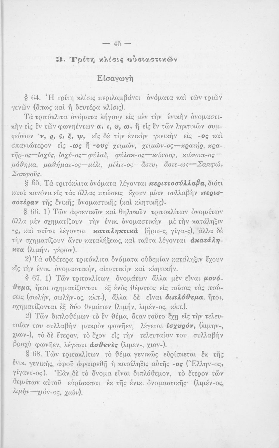 Σχολικό εγχειρίδιο Γλώσσας που περιλαμβάνει τους γραμματικούς κανόνες της καθαρεύουσας και είναι χωρισμένο σε φθογγολογικό και τυπολογικό μέρος