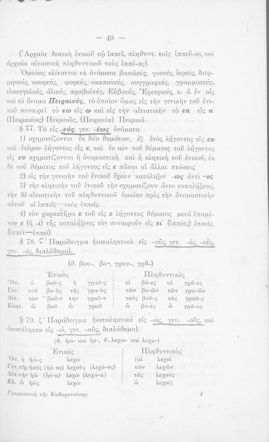 Παρουσίαση περιεχομένου: Σχολικό εγχειρίδιο Νέων Ελληνικών που περιλαμβάνει τους γραμματικούς κανόνες της καθαρεύουσας.