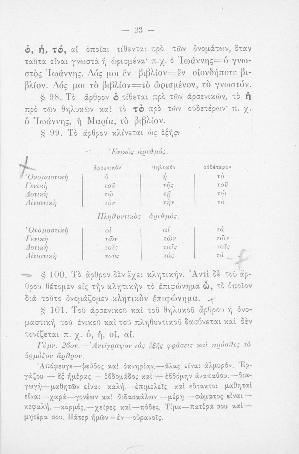Σχολικό εγχειρίδιο Γλώσσας Δημοτικού που περιλαμβάνει τη γραμματική της νέας ελληνικής και είναι χωρισμένο σε φθογγολογικό, τυπικό και ετυμολογικό μέρος.