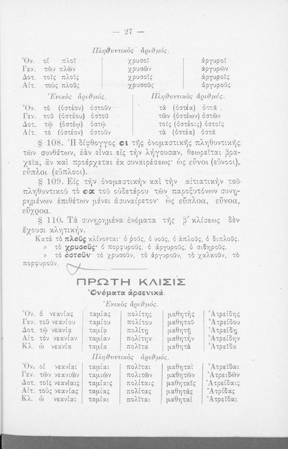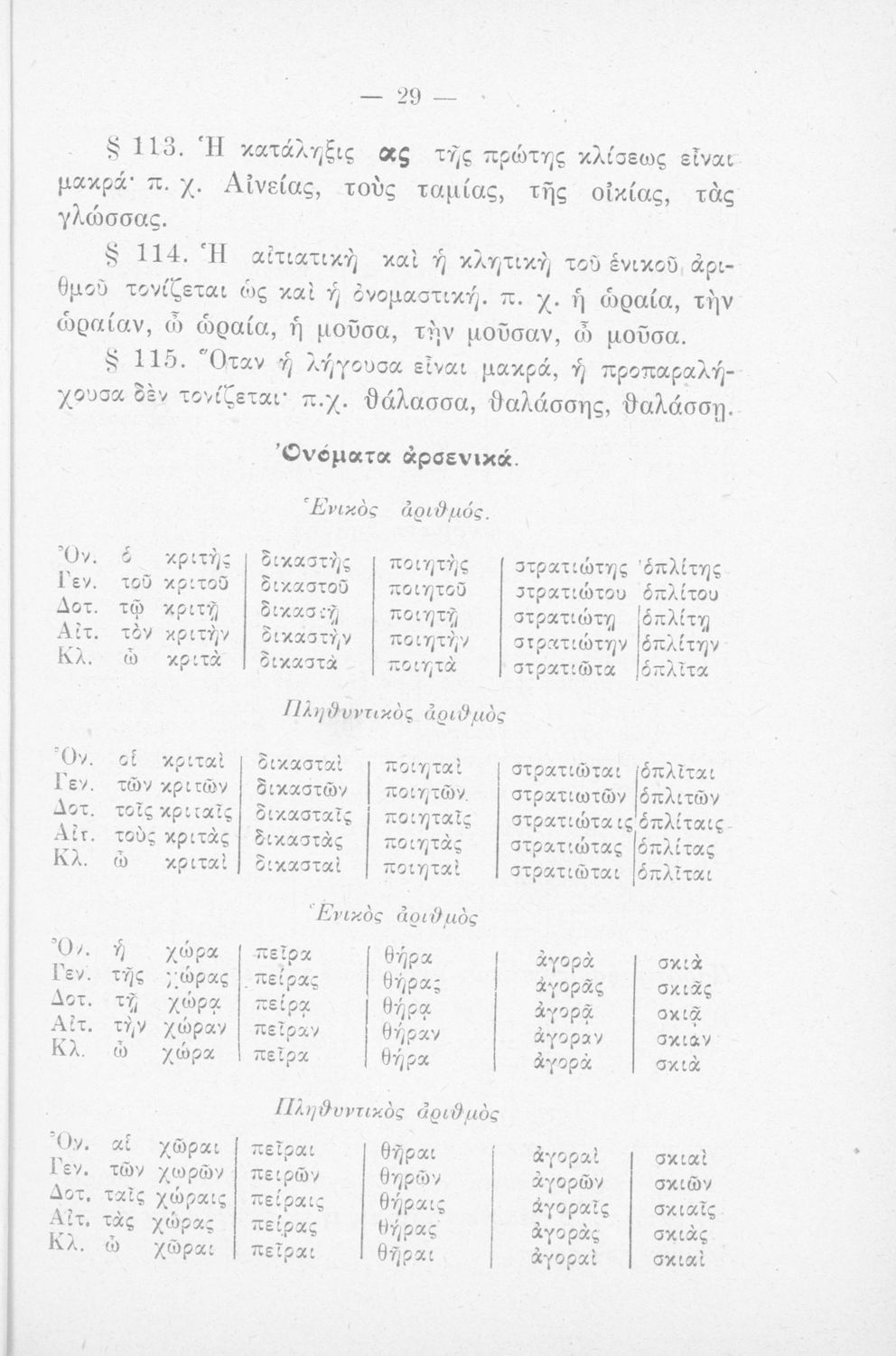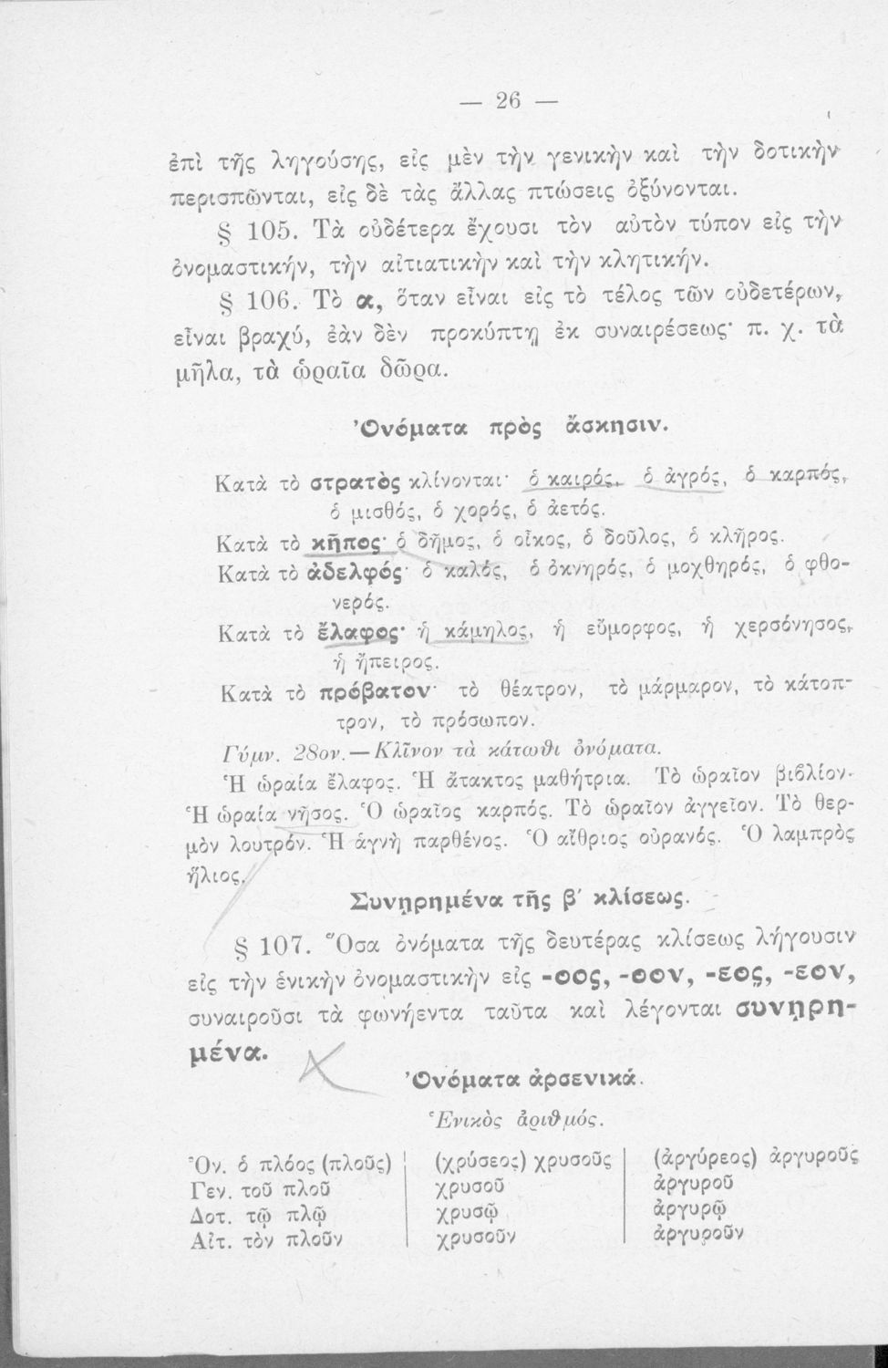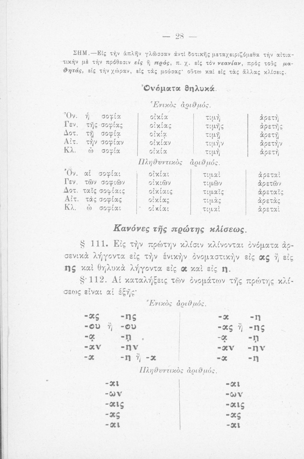 Σχολικό εγχειρίδιο Αρχαίων Ελληνικών για τα Ελληνικά Σχολεία και Παρθεναγωγεία που περιέχει τους κανόνες γραμματικής και είναι χωρισμένο σε φθογγολογικό, τυπολογικό και ετυμολογικό μέρος.