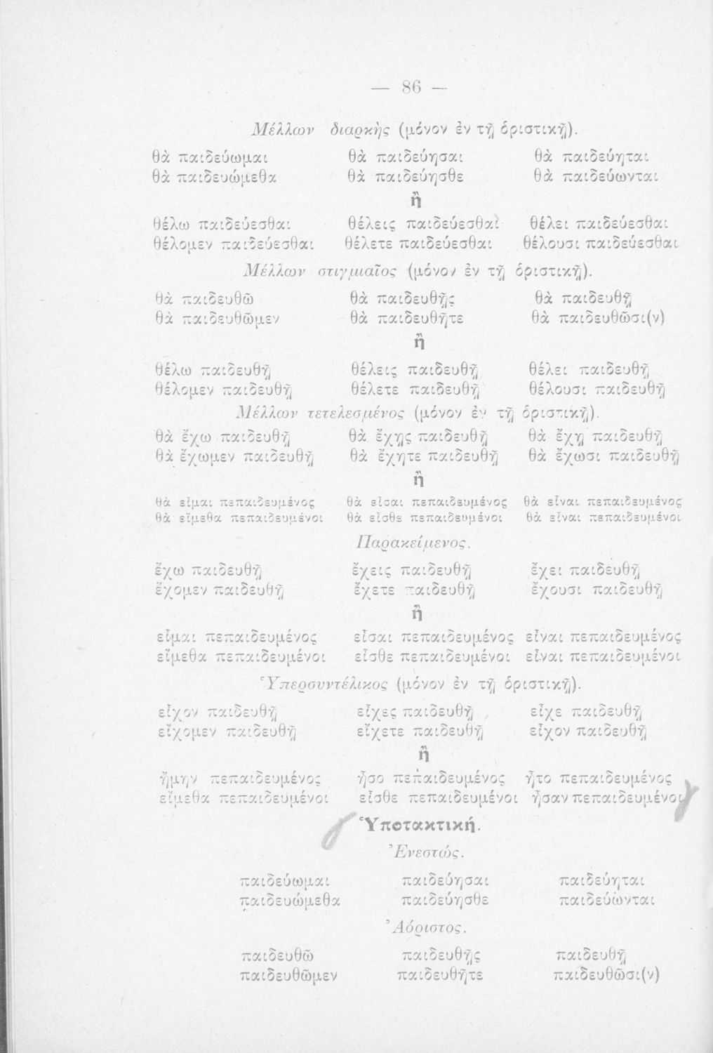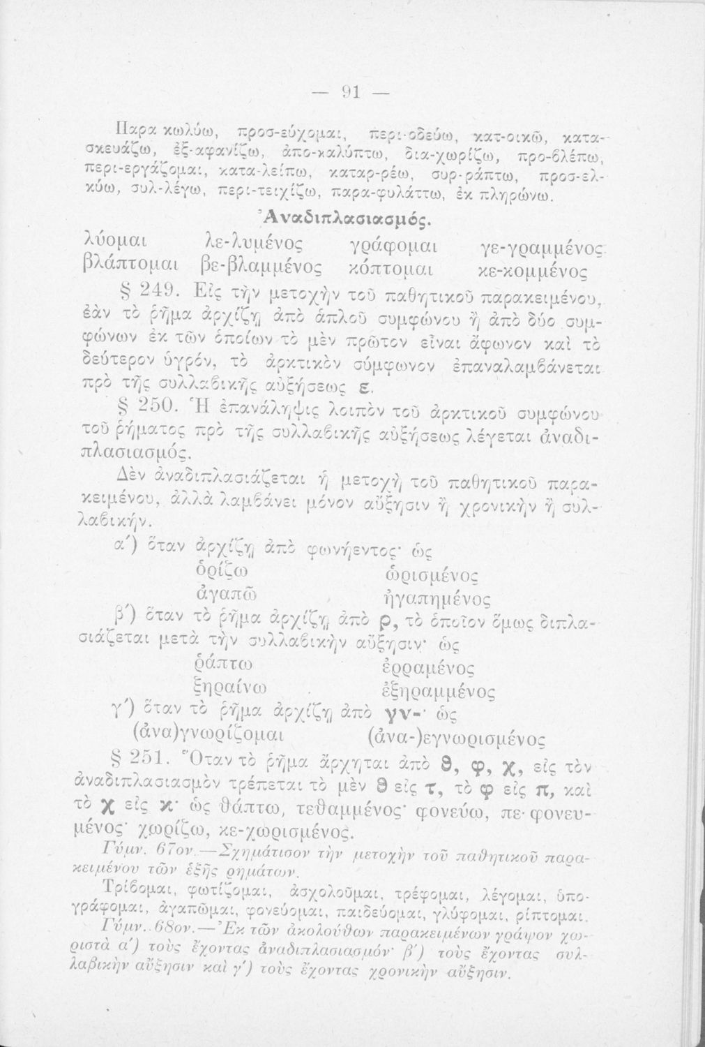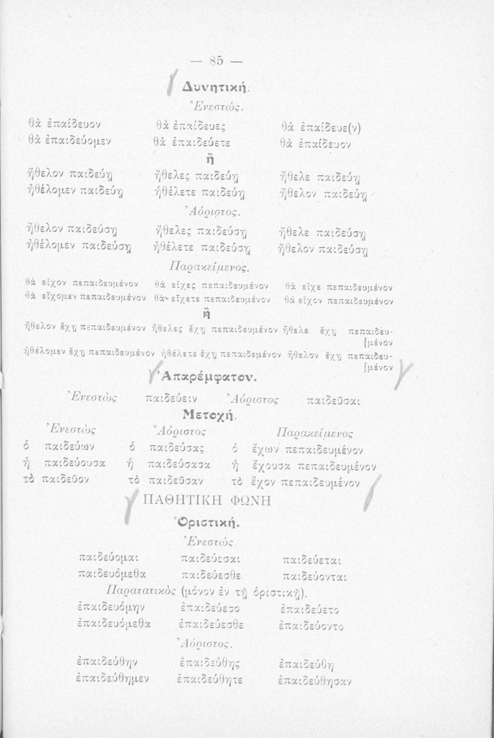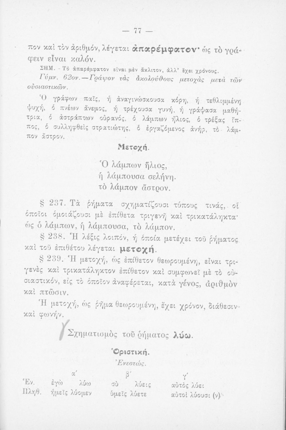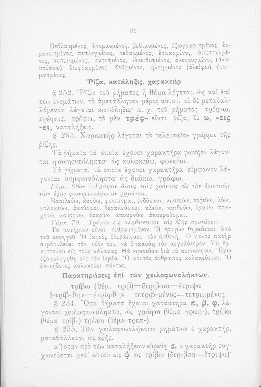 Σχολικό εγχειρίδιο Αρχαίων Ελληνικών για τα Ελληνικά Σχολεία και Παρθεναγωγεία που περιέχει τους κανόνες γραμματικής και είναι χωρισμένο σε φθογγολογικό, τυπολογικό και ετυμολογικό μέρος.
