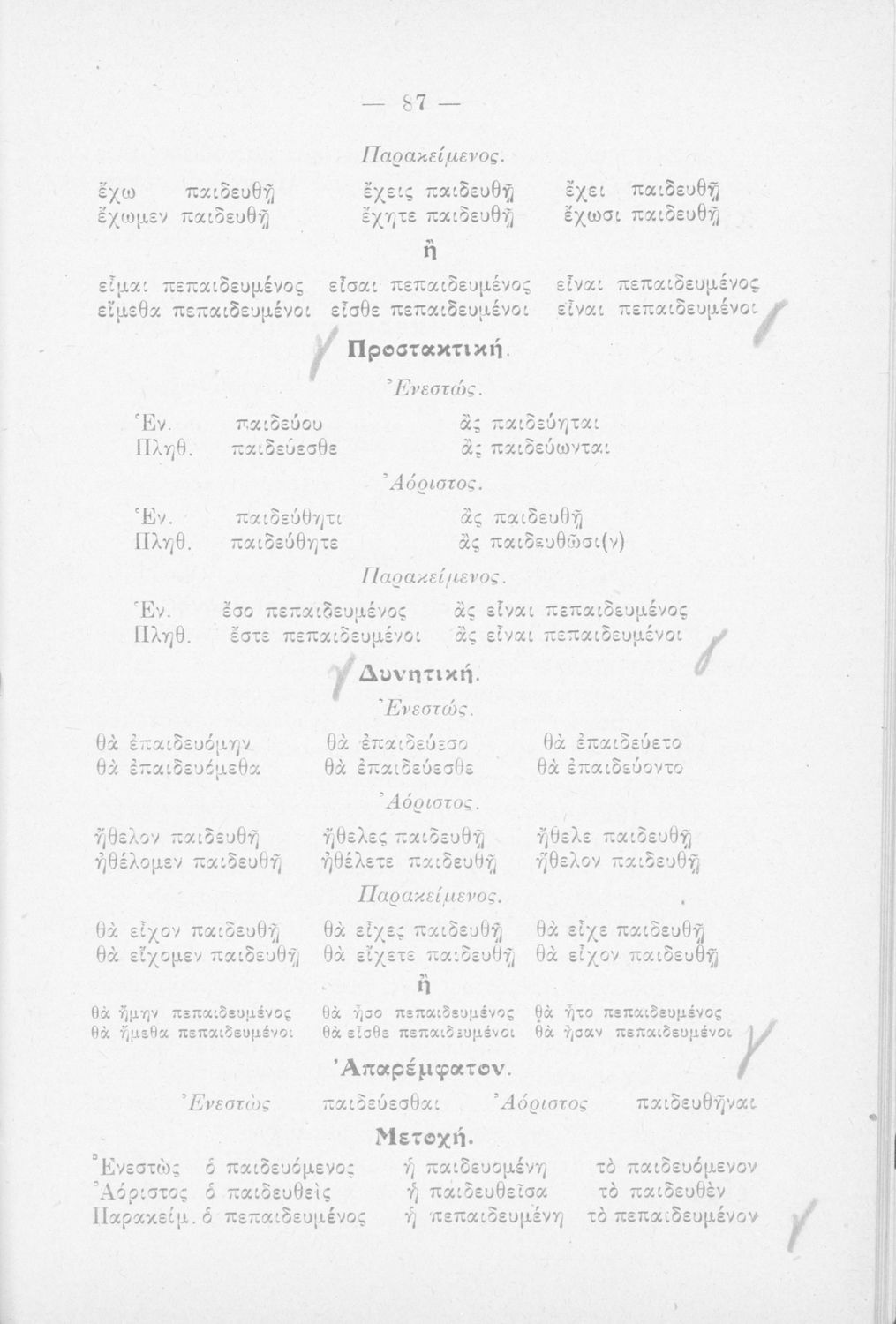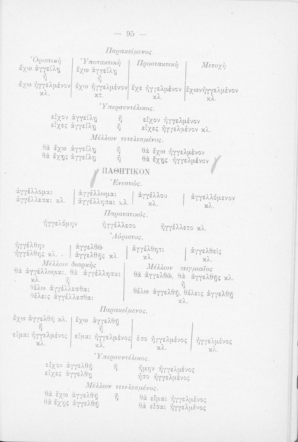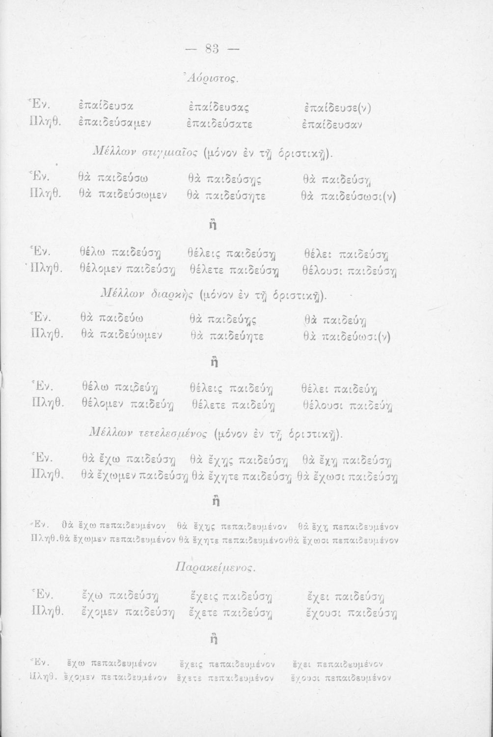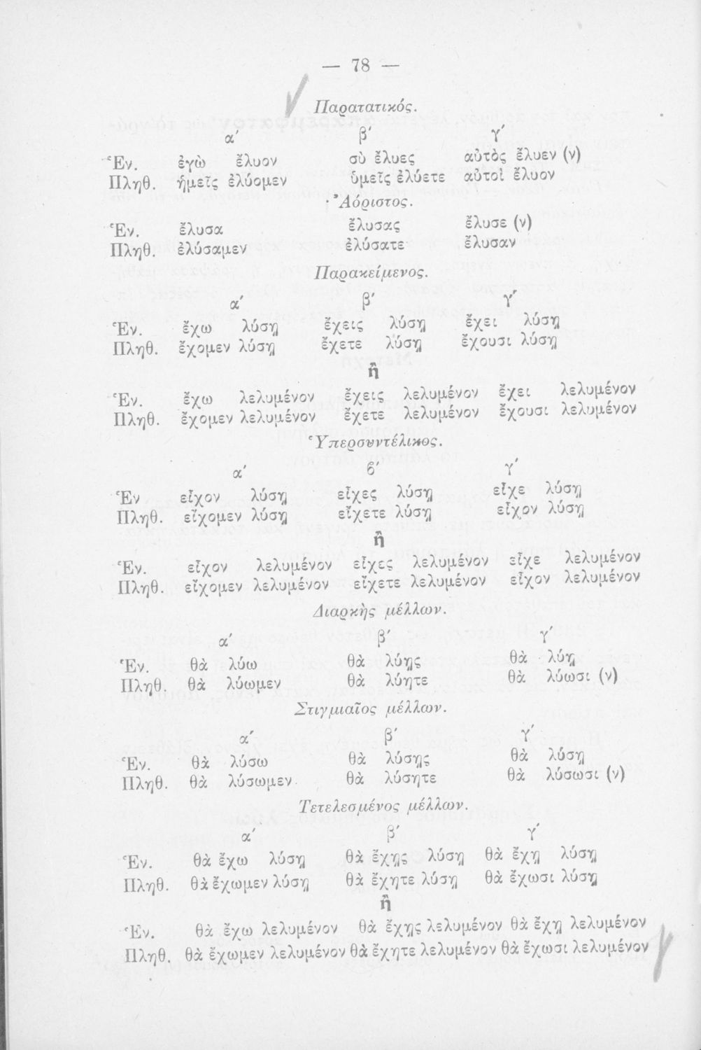 Σχολικό εγχειρίδιο Αρχαίων Ελληνικών για τα Ελληνικά Σχολεία και Παρθεναγωγεία που περιέχει τους κανόνες γραμματικής και είναι χωρισμένο σε φθογγολογικό, τυπολογικό και ετυμολογικό μέρος.