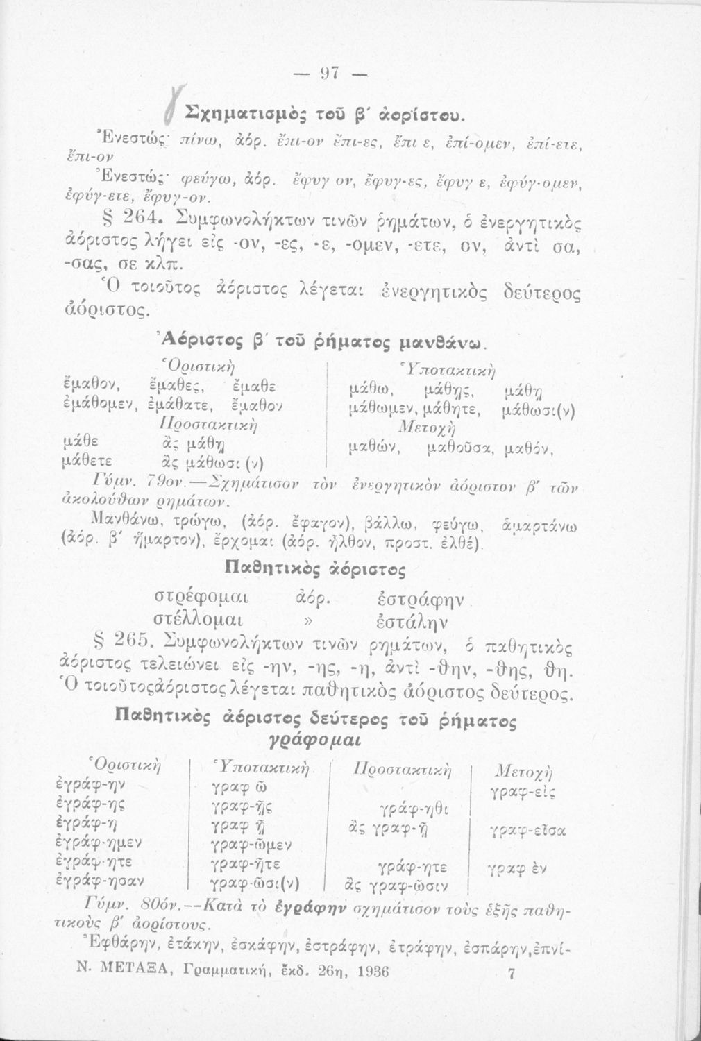 Σχολικό εγχειρίδιο Γ΄ και Δ΄ Δημοτικού που περιέχει τη γραμματικής της νέας ελληνικής. Την έκδοση επιμελήθηκε ο Γ. Λογοθέτης, τέως διευθυντής του επταταξίου δημ. Τμήμ.της Ευαγγελικής Σχολής.