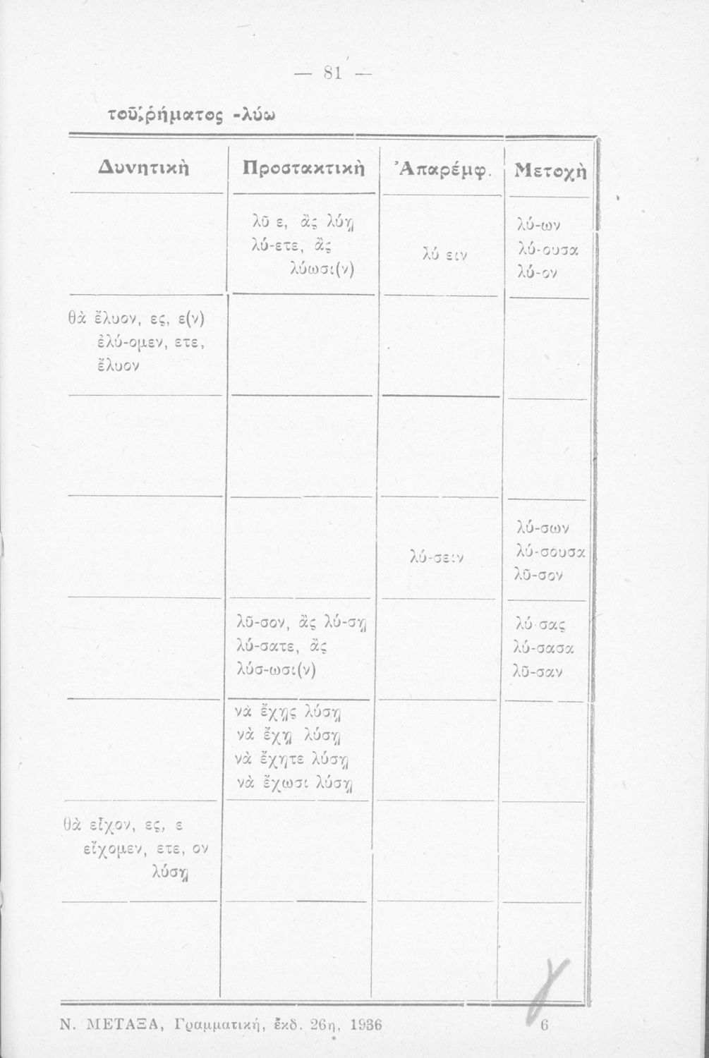 Σχολικό εγχειρίδιο Γλώσσας Δημοτικού που περιλαμβάνει τη γραμματική της νέας ελληνικής και είναι χωρισμένο σε φθογγολογικό, τυπικό και ετυμολογικό μέρος.