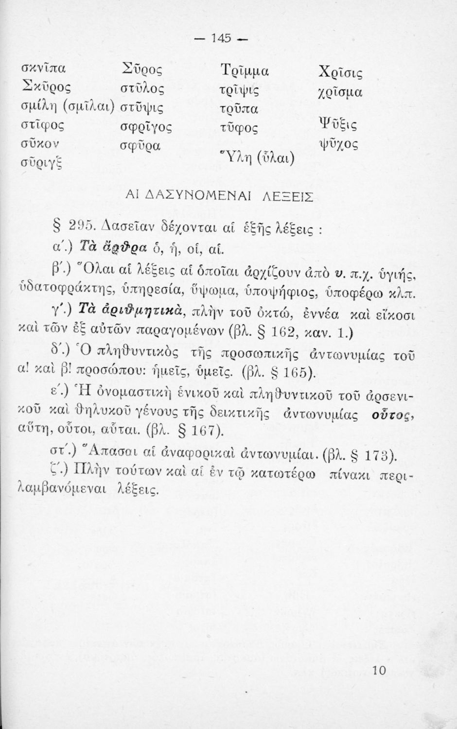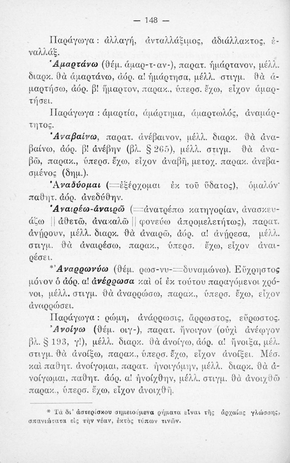 Σχολικό εγχειρίδιο Αρχαίων Ελληνικών Γυμνασίου που περιλαμβάνει τη γραμματική της αρχαίας ελληνικής και είναι χωρισμένο σε φθογγολογικό και τυπολογικό μέρος Περιέχει και κατάλογο ανωμάλων ρημάτων.