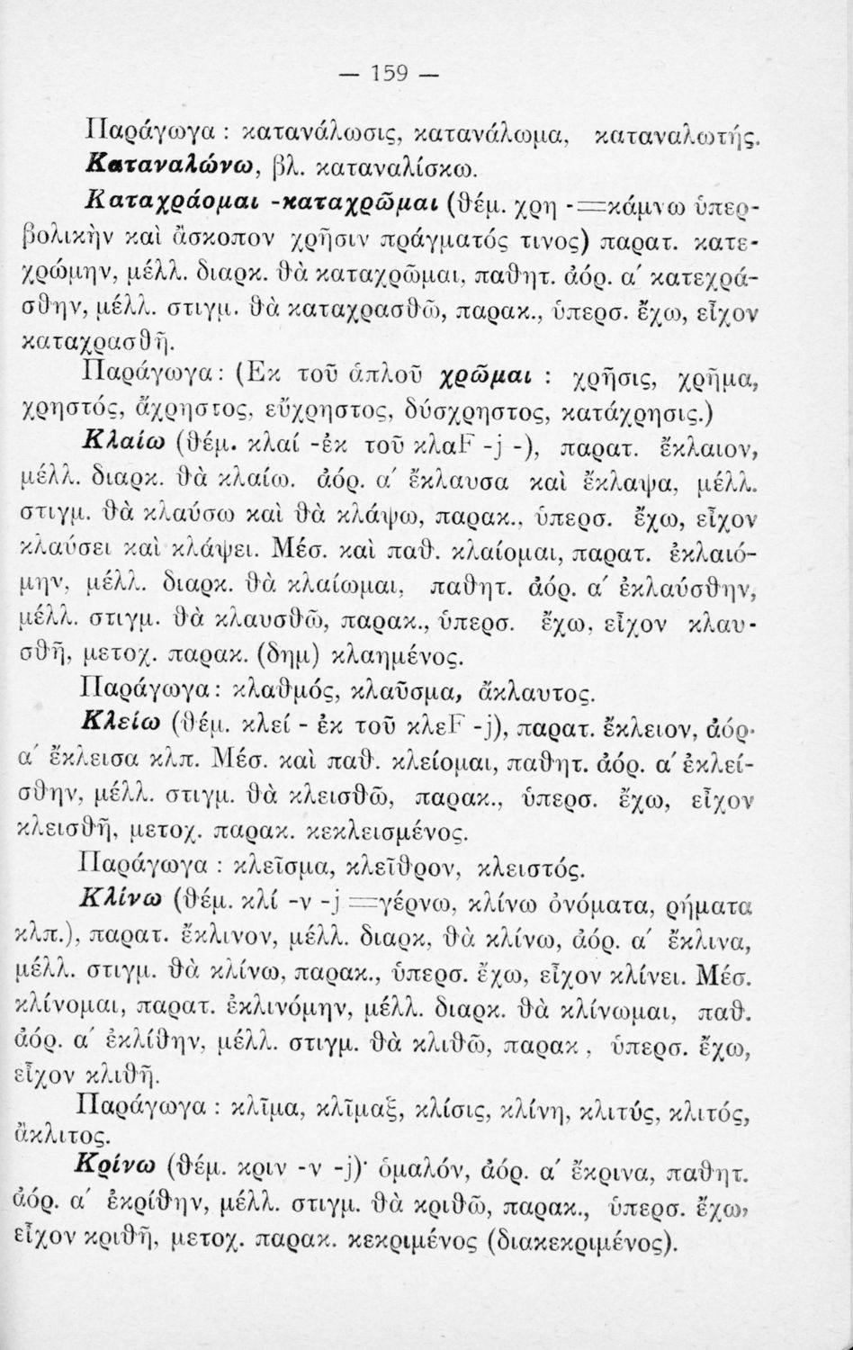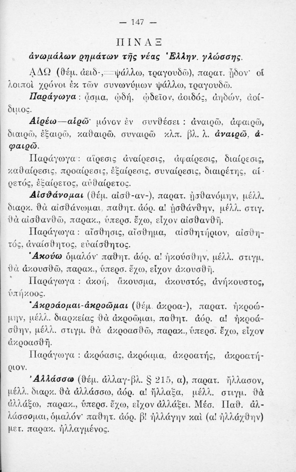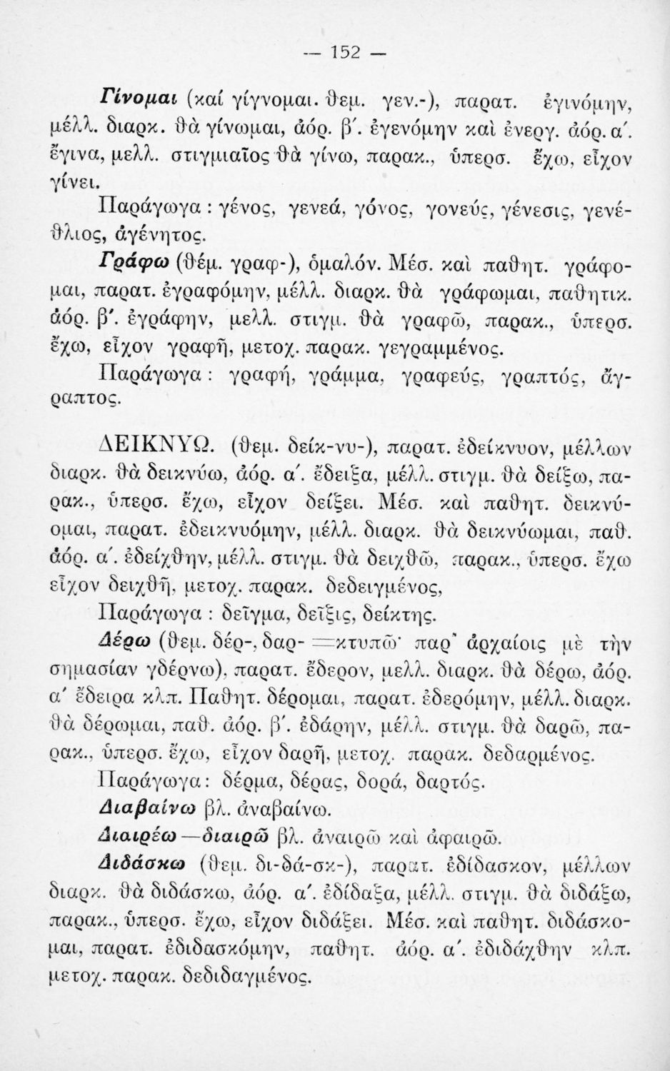 Μαθητικό βοήθημα Αρχαίων Ελληνικών για τα Ελληνικά Σχολεία, Παρθεναγωγεία και Γυμνάσια που περιλαμβάνει γραμματική της αρχαίας ελληνικής και κατάλογο ανωμάλων ρημάτων.