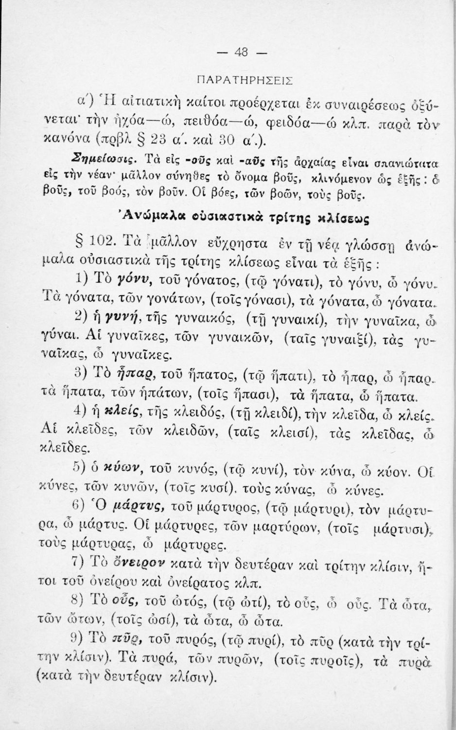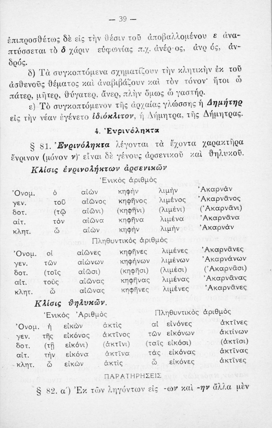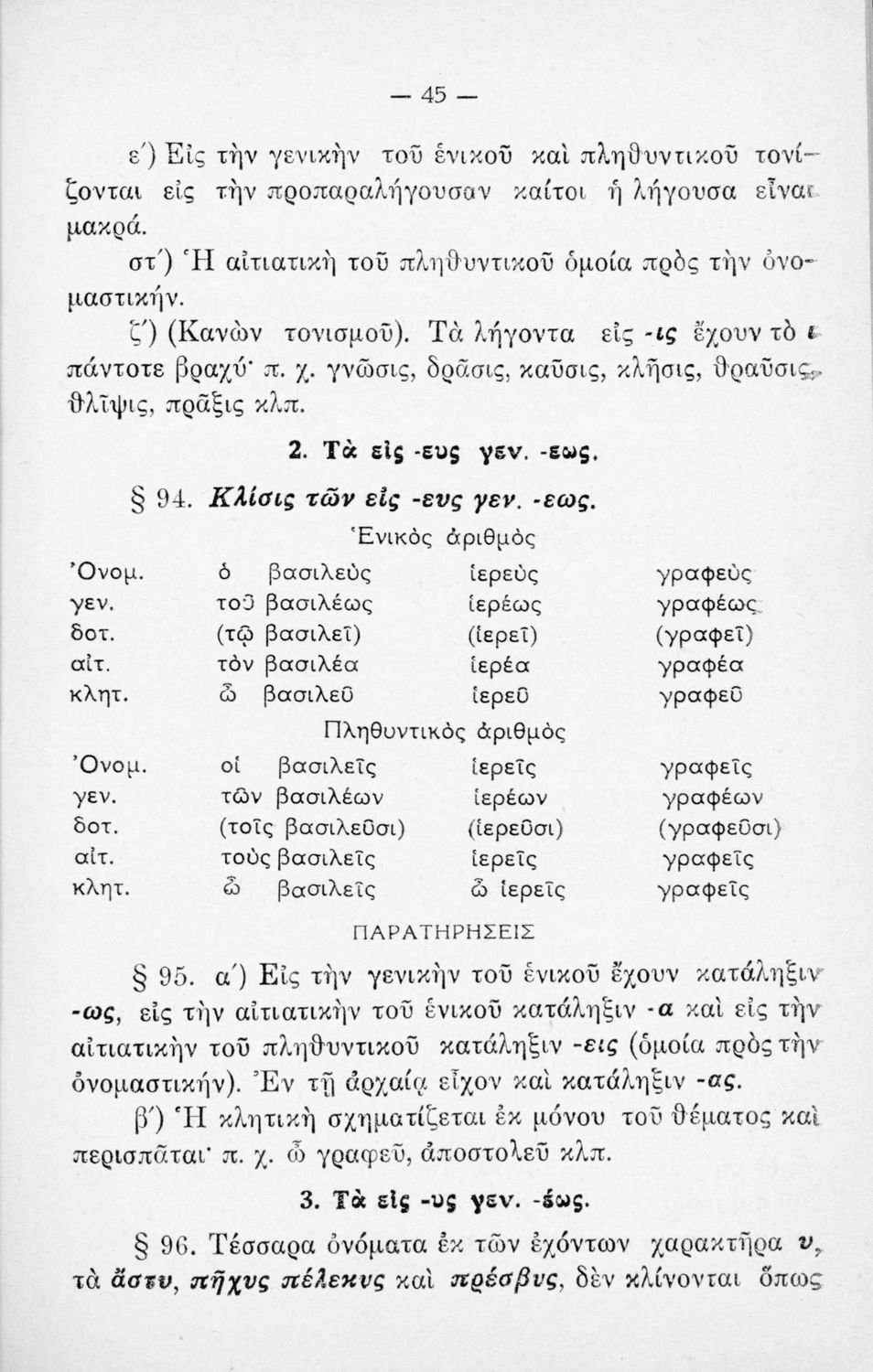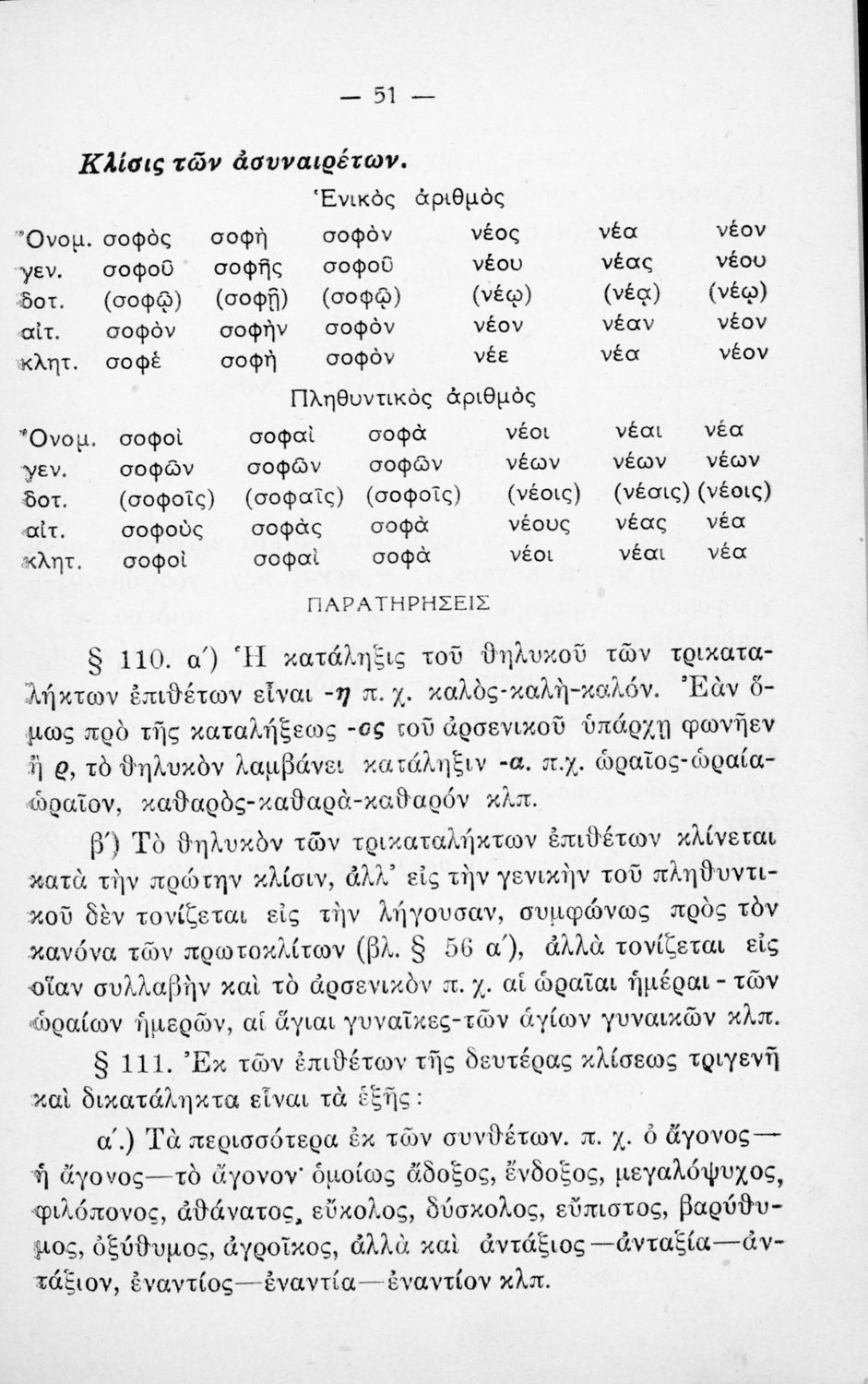Σχολικό εγχειρίδιο Αρχαίων Ελληνικών Γυμνασίου που περιλαμβάνει τη γραμματική της αρχαίας ελληνικής και είναι χωρισμένο σε φθογγολογικό και τυπολογικό μέρος Περιέχει και κατάλογο ανωμάλων ρημάτων.
