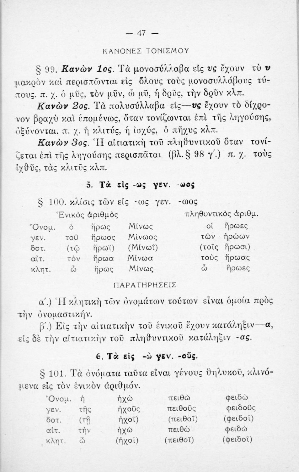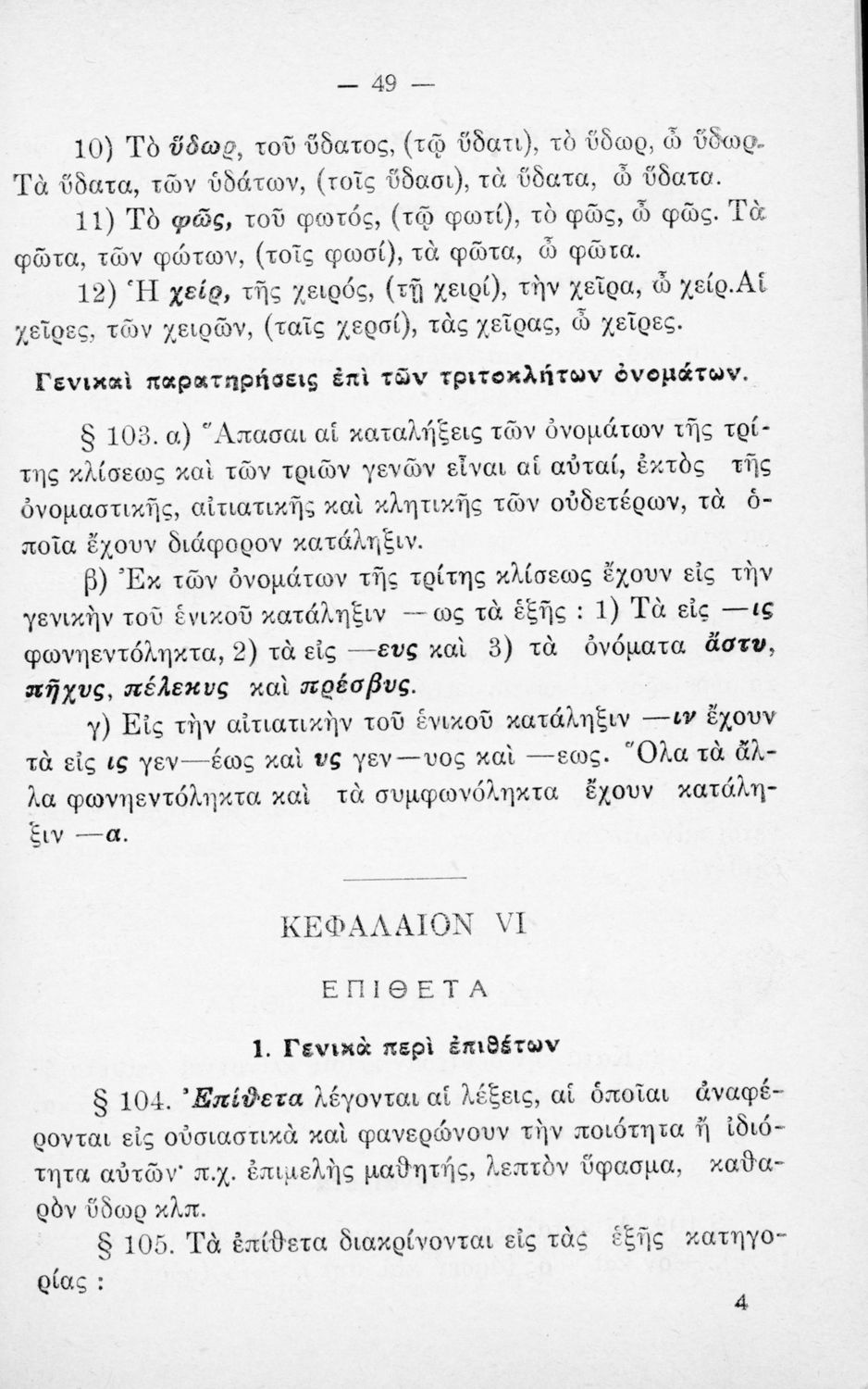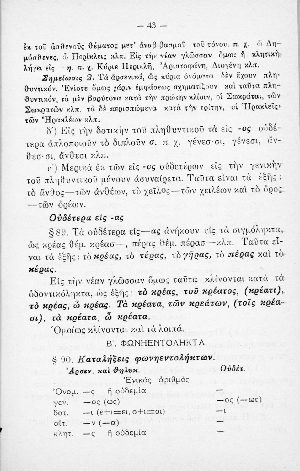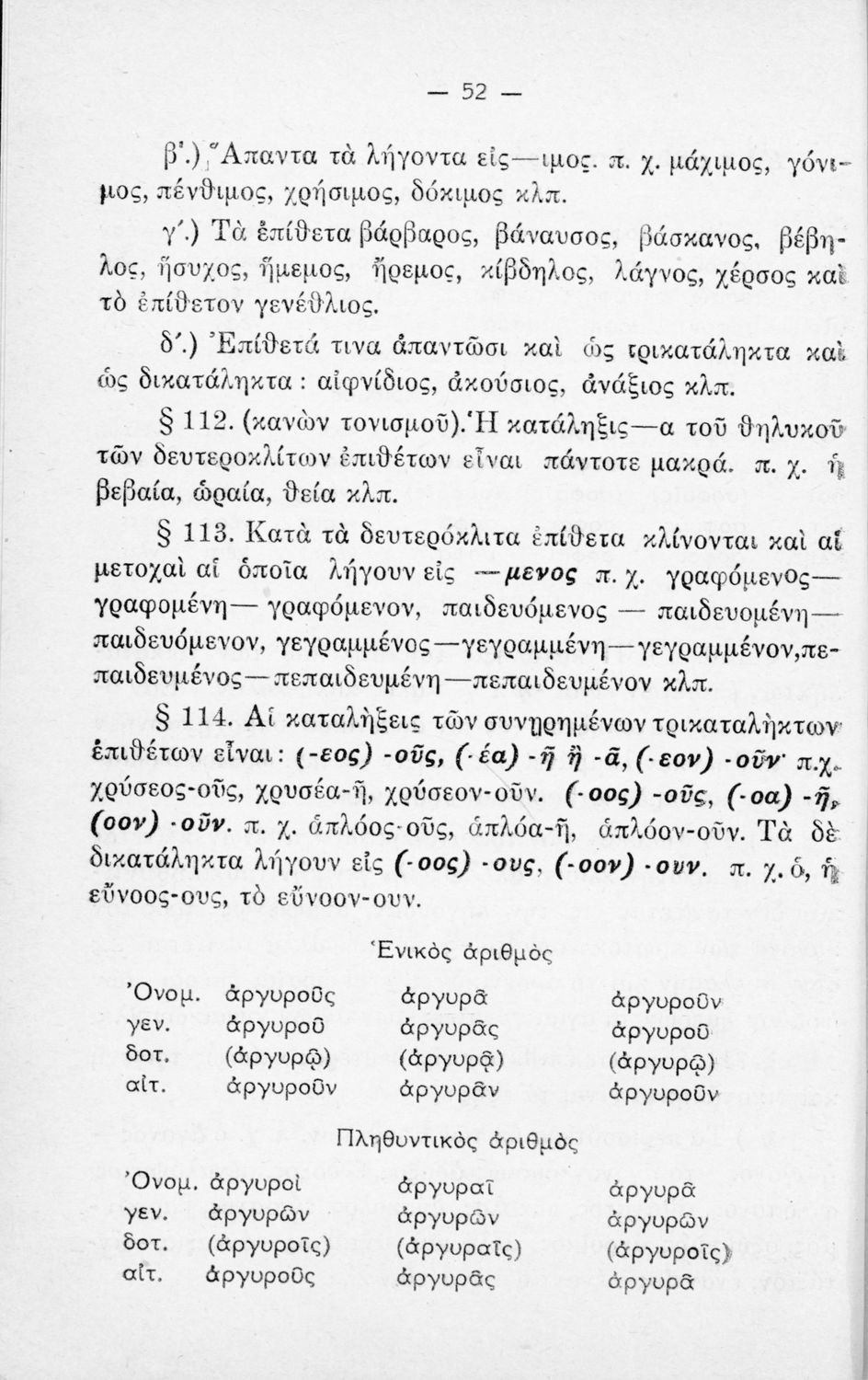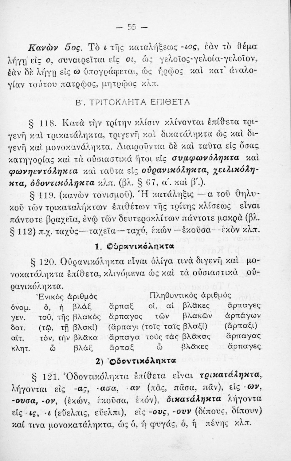 Σχολικό εγχειρίδιο Αρχαίων Ελληνικών για τα Ελληνικά Σχολεία, Παρθεναγωγεία και Γυμνάσια που περιέχει τους κανόνες γραμματικής και είναι χωρισμένο σε φθογγολογικό, τυπολογικό και ετυμολογικό μέρος.