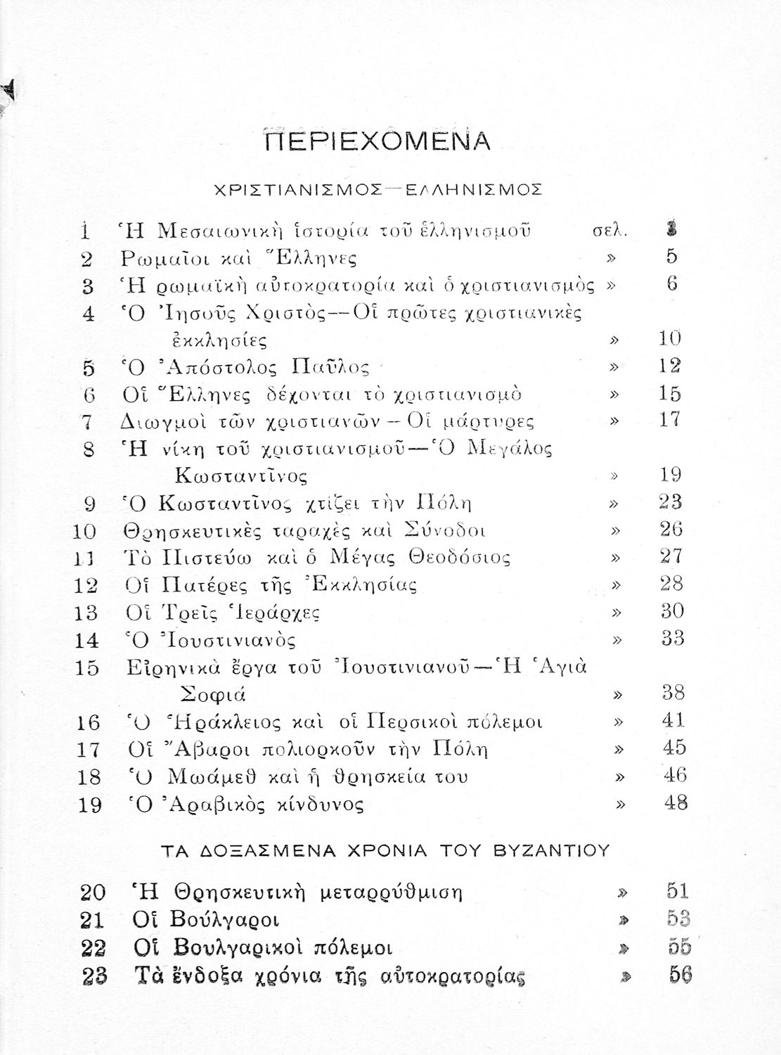 Σχολικό εγχειρίδιο για το μάθημα της Ιστορίας στους μαθητές του Δημοτικού. Αναφέρεται στα χρόνια της Βυζαντινής Αυτοκρατορίας μέχρι και την άλωση της Πόλης. Το τελευταίο κεφάλαιο αναφέρεται στα επιτεύγματα της
