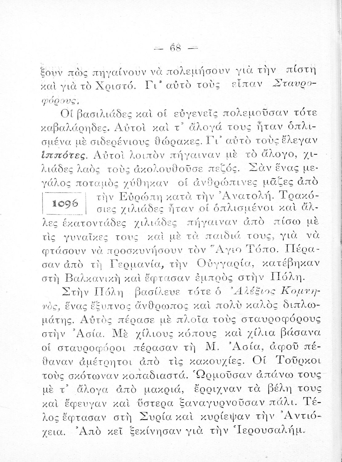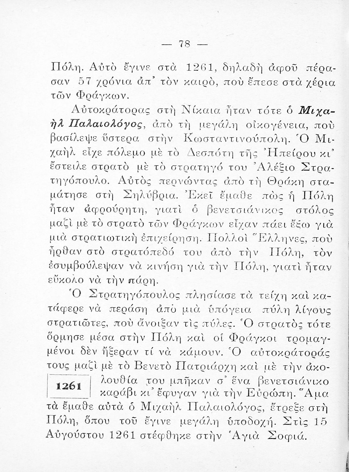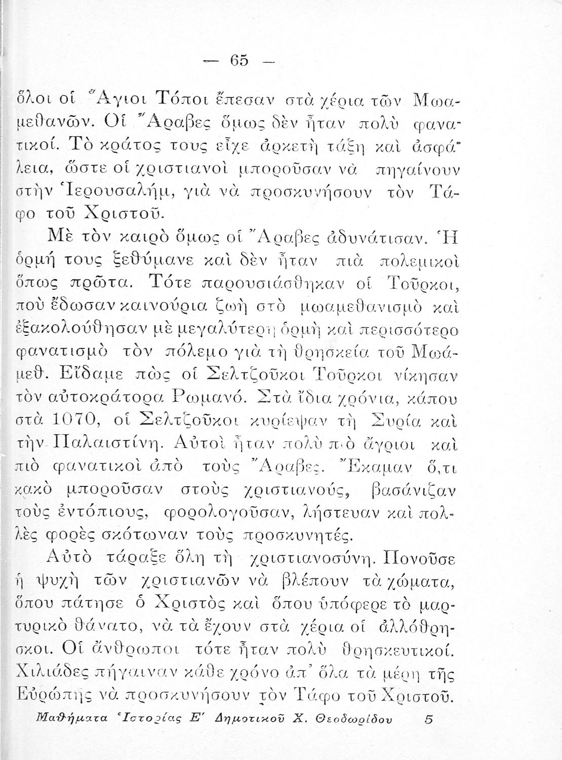 Σχολικό εγχειρίδιο για το μάθημα της Ιστορίας στους μαθητές του Δημοτικού. Αναφέρεται στα χρόνια της Βυζαντινής Αυτοκρατορίας μέχρι και την άλωση της Πόλης. Το τελευταίο κεφάλαιο αναφέρεται στα επιτεύγματα της