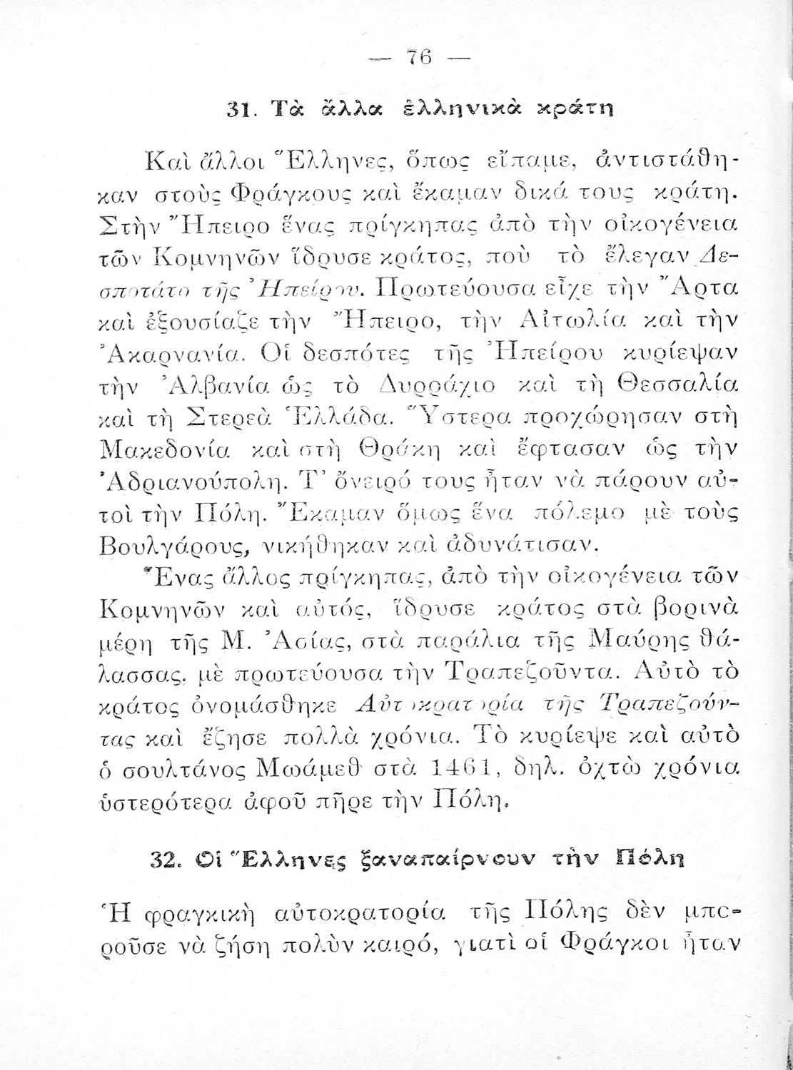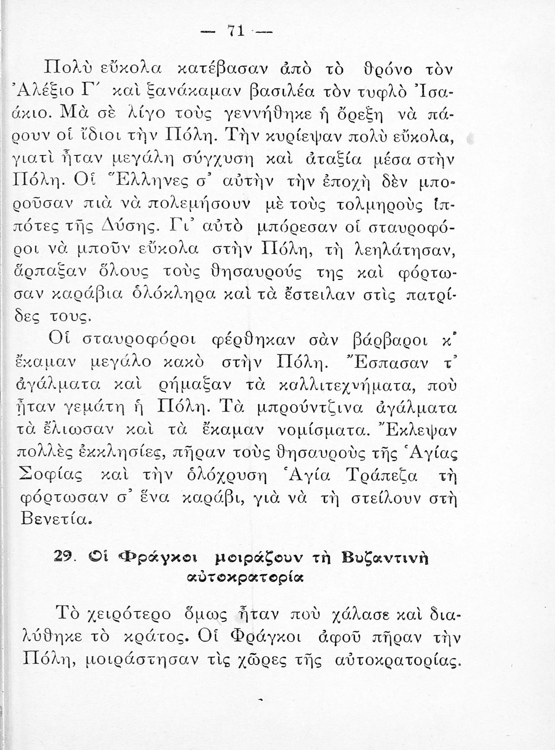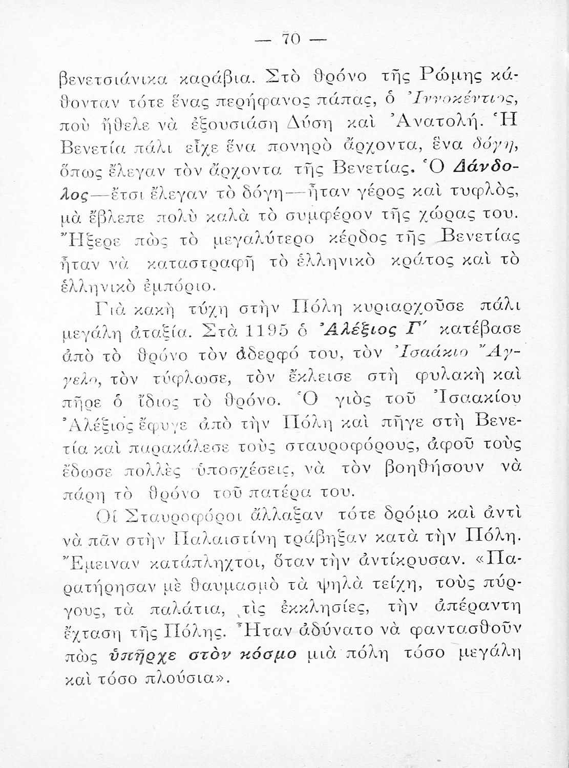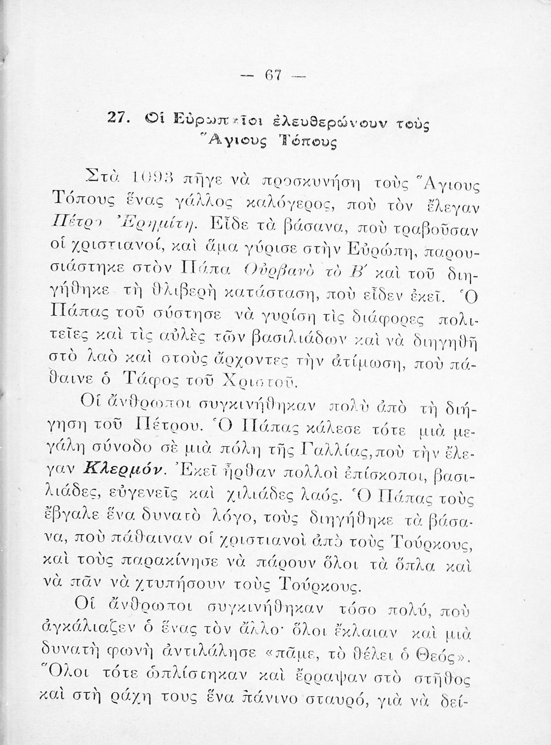 Σχολικό εγχειρίδιο για το μάθημα της Ιστορίας στους μαθητές του Δημοτικού. Αναφέρεται στα χρόνια της Βυζαντινής Αυτοκρατορίας μέχρι και την άλωση της Πόλης. Το τελευταίο κεφάλαιο αναφέρεται στα επιτεύγματα της