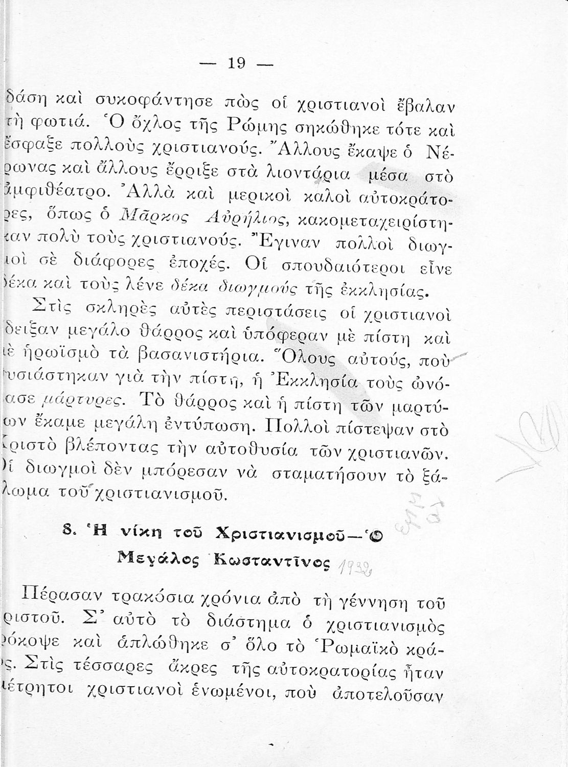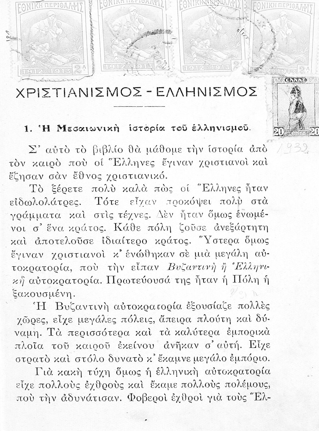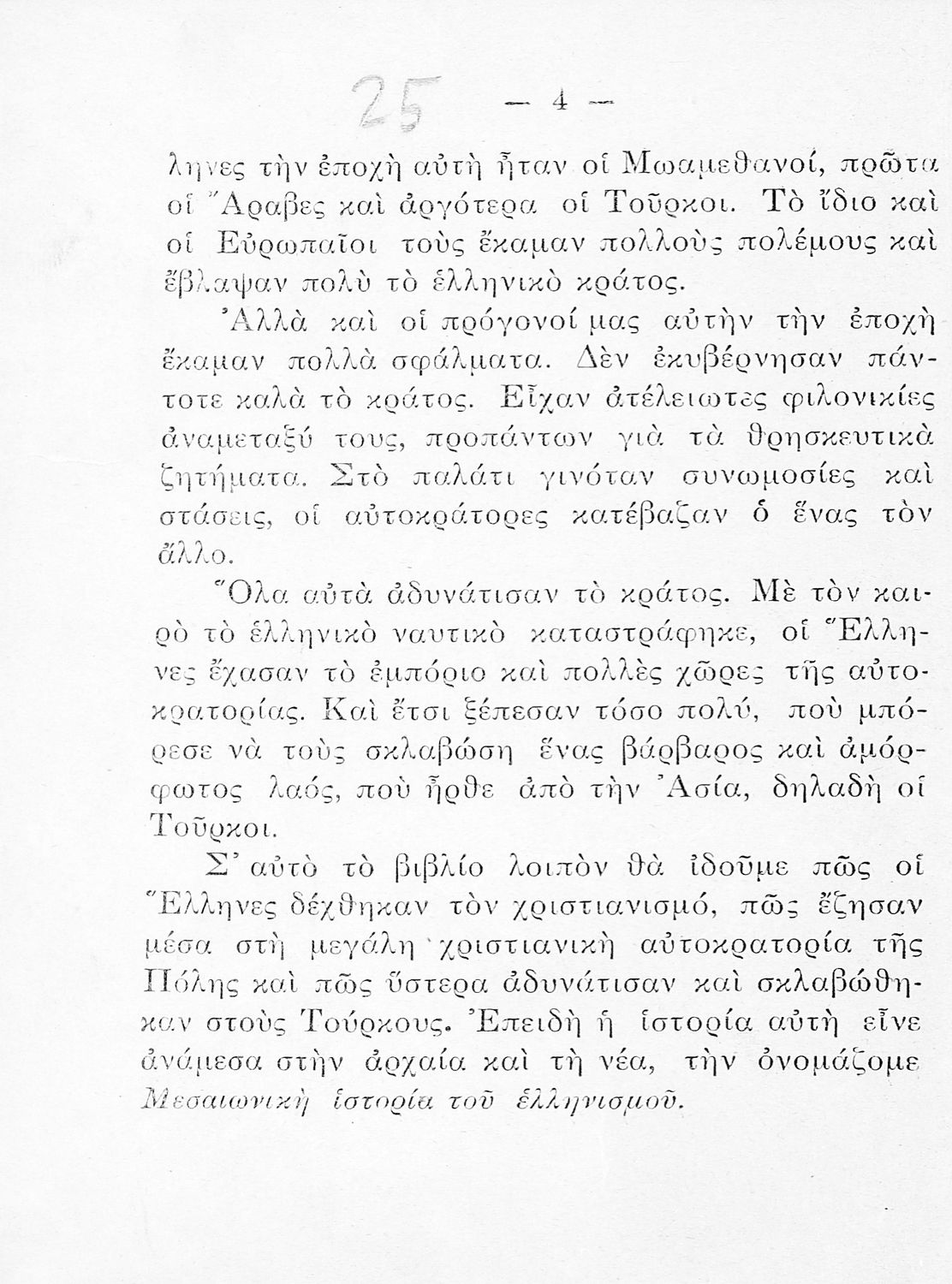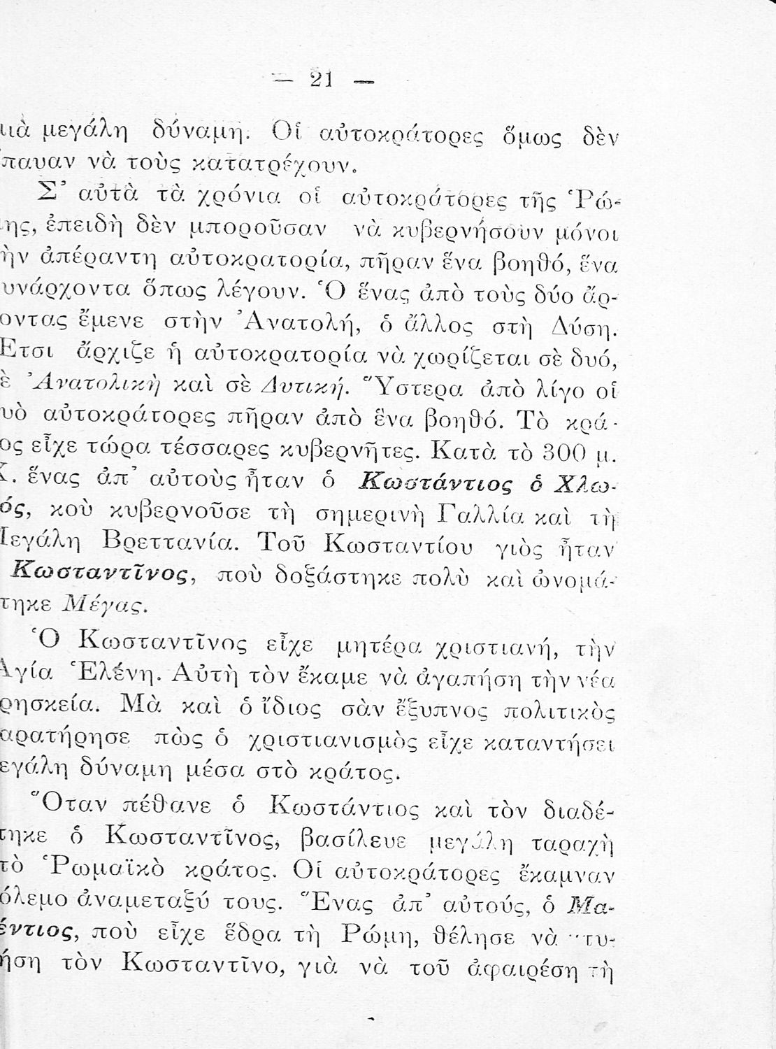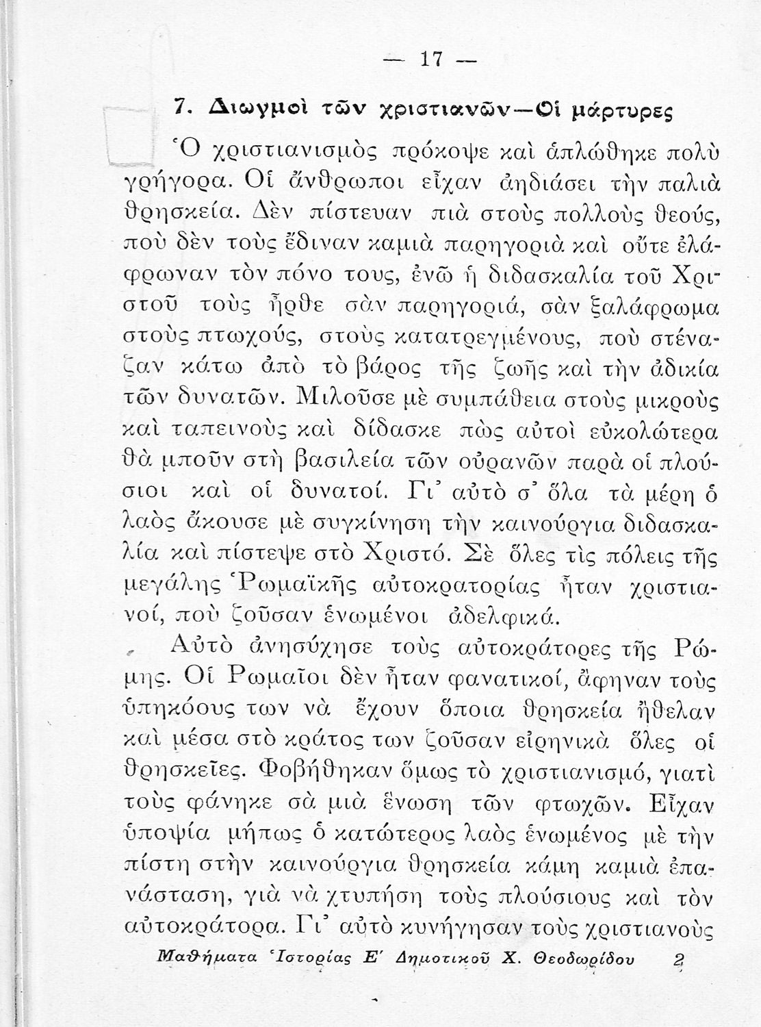 Σχολικό εγχειρίδιο για το μάθημα της Ιστορίας στους μαθητές του Δημοτικού. Αναφέρεται στα χρόνια της Βυζαντινής Αυτοκρατορίας μέχρι και την άλωση της Πόλης. Το τελευταίο κεφάλαιο αναφέρεται στα επιτεύγματα της