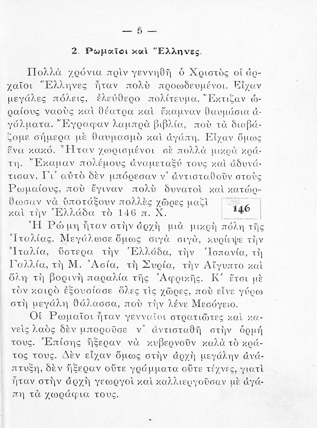 Σχολικό εγχειρίδιο Ιστορίας. Ε΄ Δημοτικού που καλύπτει την περίοδο από την ίδρυση της ρωμαϊκής αυτοκρατορίας ως την άλωση της Κωνσταντινούπολης και την Αναγέννηση στην Ευρώπη.