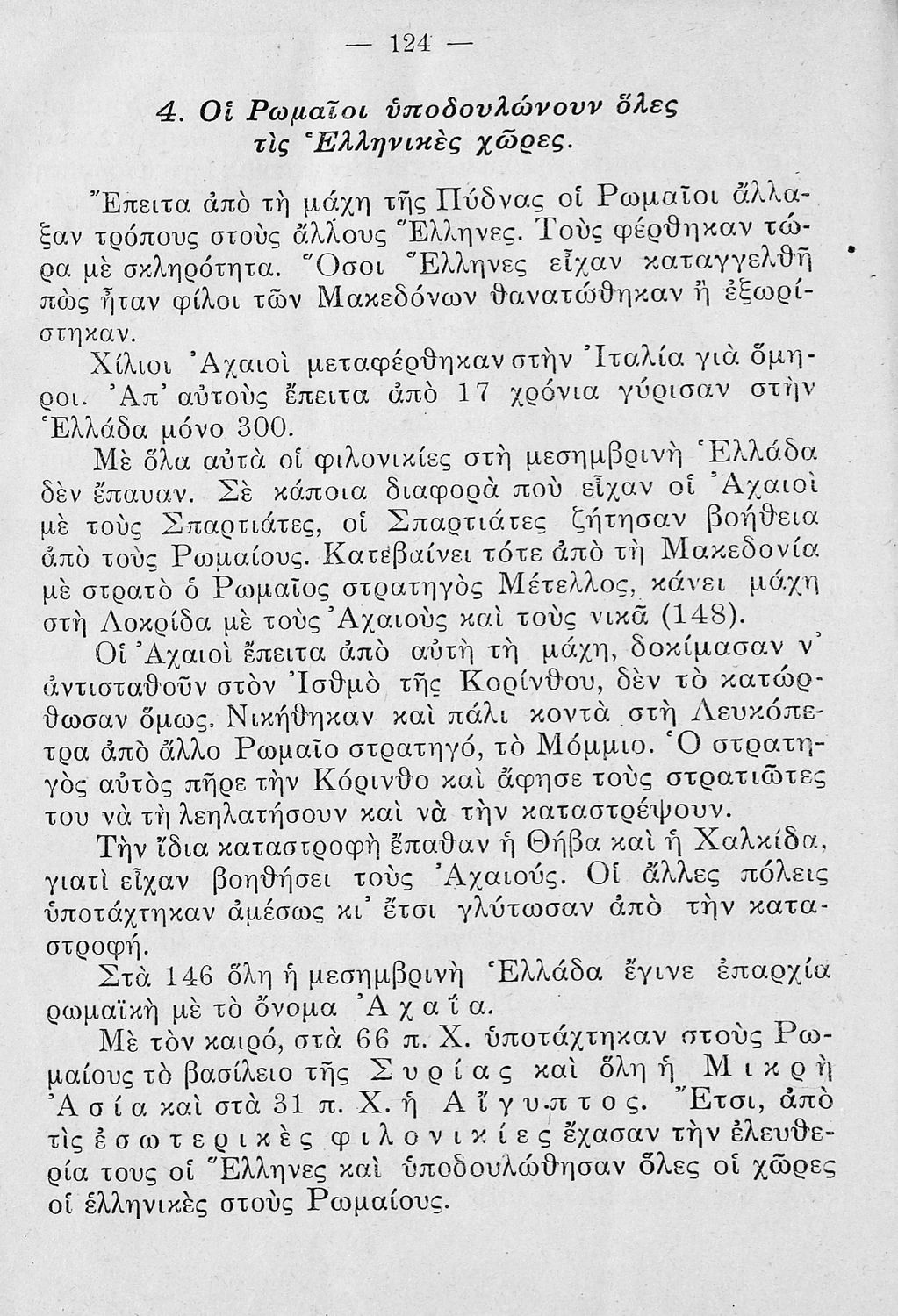Σχολικό εγχειρίδιο Ιστορίας. Δ' Δημοτικού που καλύπτει την περίοδο από την κάθοδο των Δωριέων ως την κατάληψη της Ελλάδας από τους Ρωμαίους.