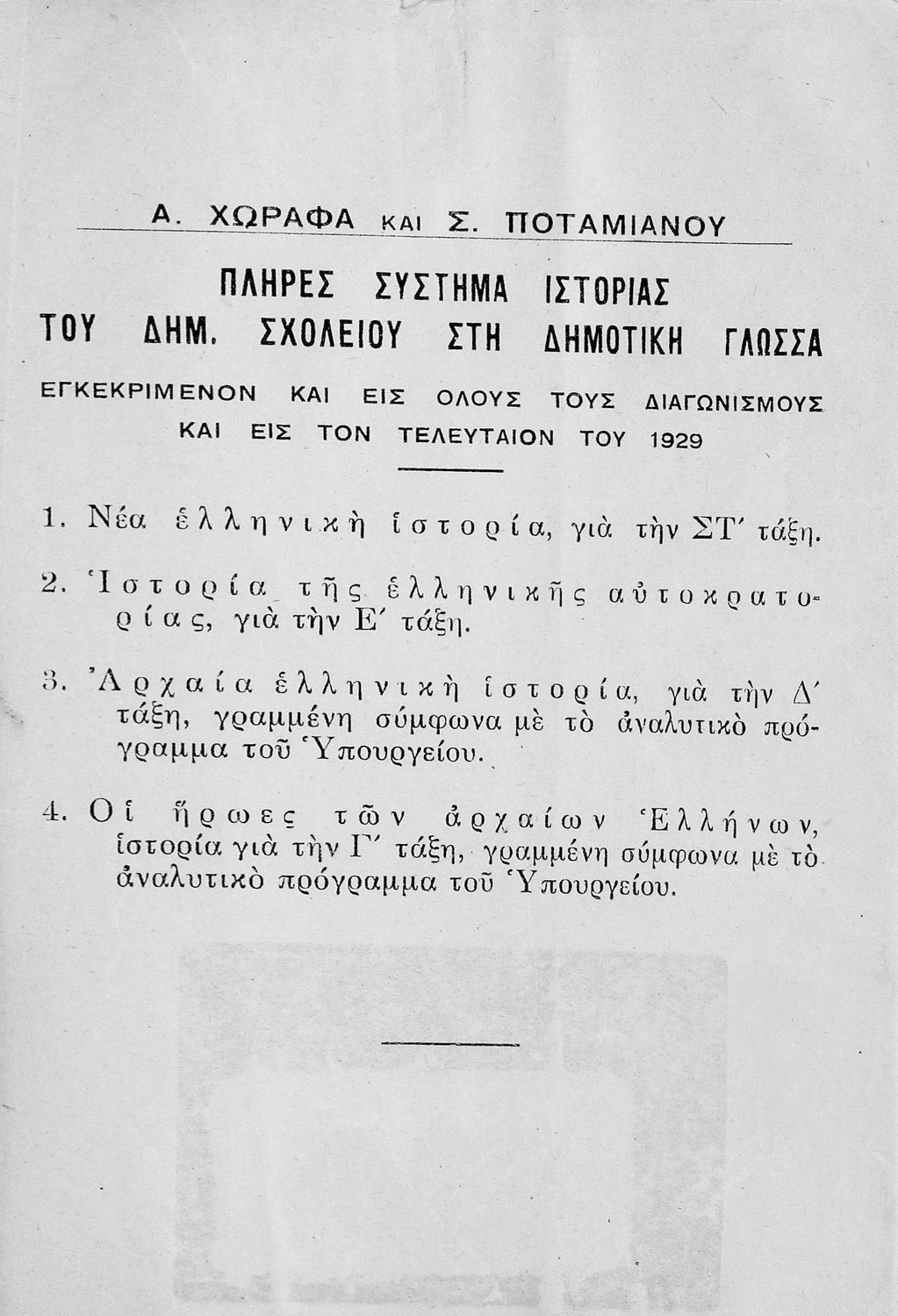 Σχολικό Εγχειρίδιο Ιστορίας Γ' και Δ΄ Δημοτικού Σχολείου που περιλαμβάνει την περίοδο από τους ηρωικούς και μυθικούς χρόνους μέχρι τη βασιλεία του Όθωνα και του Γεωργίου Α΄. Περιλαμβάνει ρητή αναφορά στο σχήμα