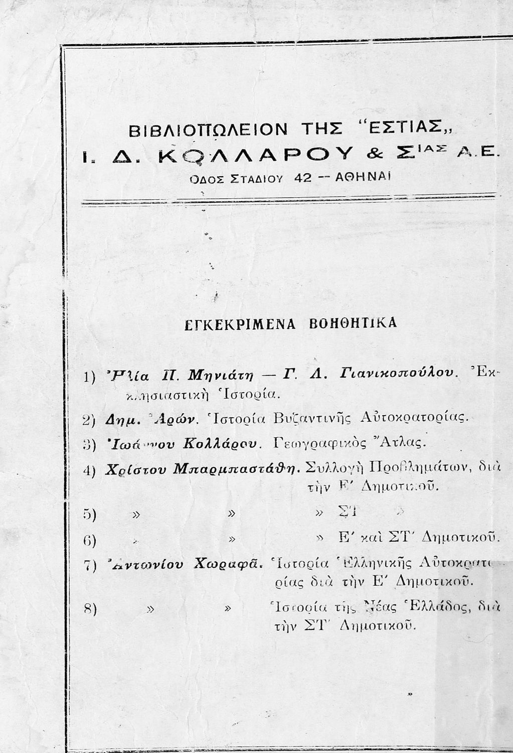 Εκδότης: Ιωάννης Δ. Κολλάρος και ΣΙΑ, Βιβλιοπωλείο της "Εστίας"