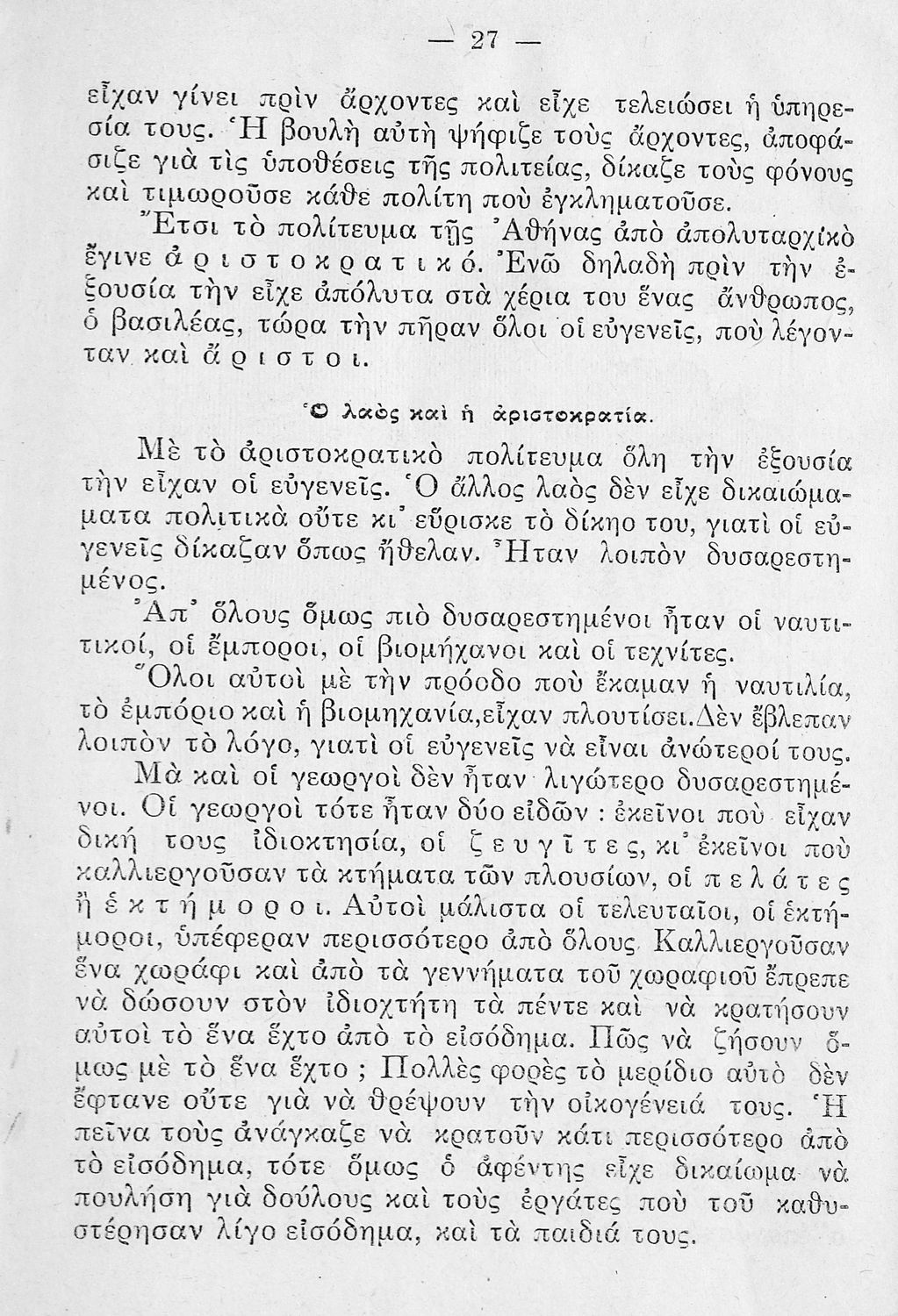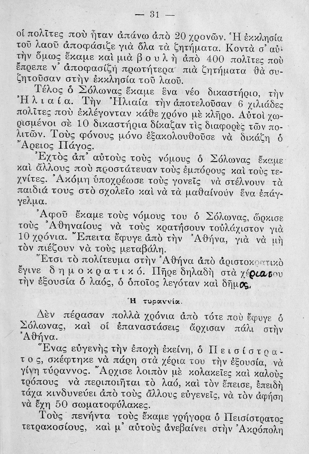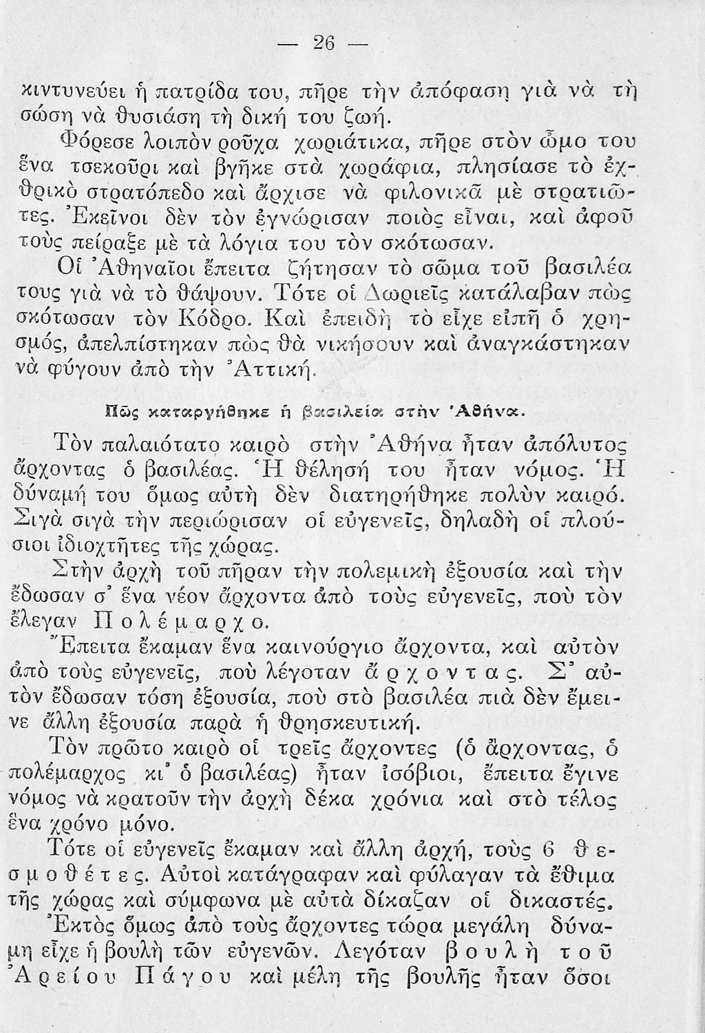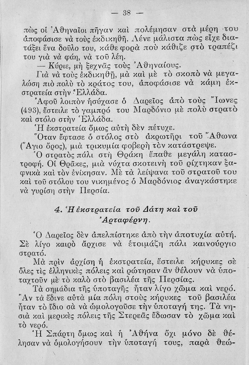 Σχολικό εγχειρίδιο Ιστορίας. Δ' Δημοτικού που καλύπτει την περίοδο από την κάθοδο των Δωριέων ως την κατάληψη της Ελλάδας από τους Ρωμαίους. Αποσκοπεί στην καλλιέργεια της εθνικής συνείδησης και της ιστορικής συνέχειας σύμφωνα με το κυρίαρχο εθνικό αφήγημα.