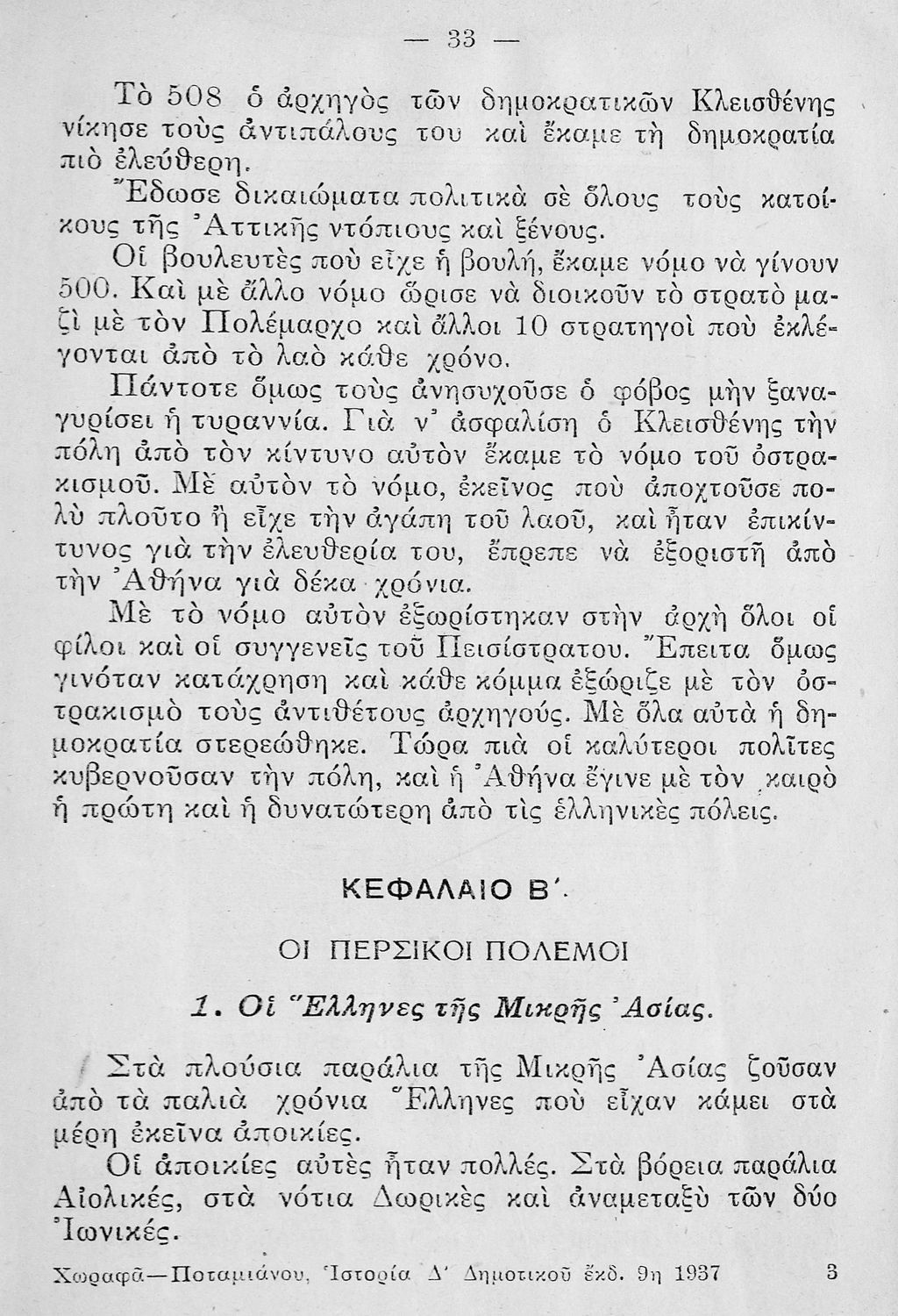 Σχολικό Εγχειρίδιο Ιστορίας Γ' και Δ΄ Δημοτικού Σχολείου που περιλαμβάνει την περίοδο από τους ηρωικούς και μυθικούς χρόνους μέχρι τη βασιλεία του Όθωνα και του Γεωργίου Α΄. Περιλαμβάνει ρητή αναφορά στο σχήμα