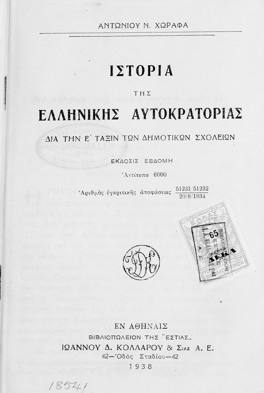 Τίτλος: Ιστορία της Ελληνικής Αυτοκρατορίας. Δια την Ε΄ τάξιν των Δημοτικών σχολείων