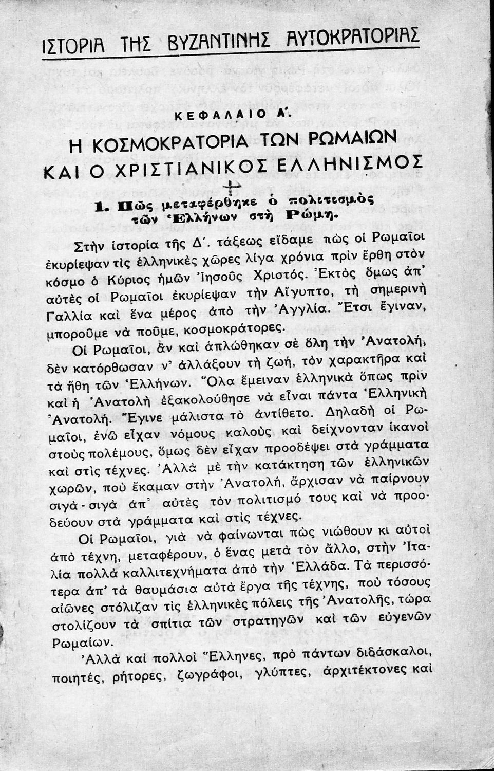 Μαθητικό βοήθημα Ιστορίας Ε΄ Δημοτικού που καλύπτει την περίοδο από την ίδρυση της ρωμαϊκής αυτοκρατορίας ως την άλωση της Κωνσταντινούπολης και την Αναγέννηση στην Ευρώπη.