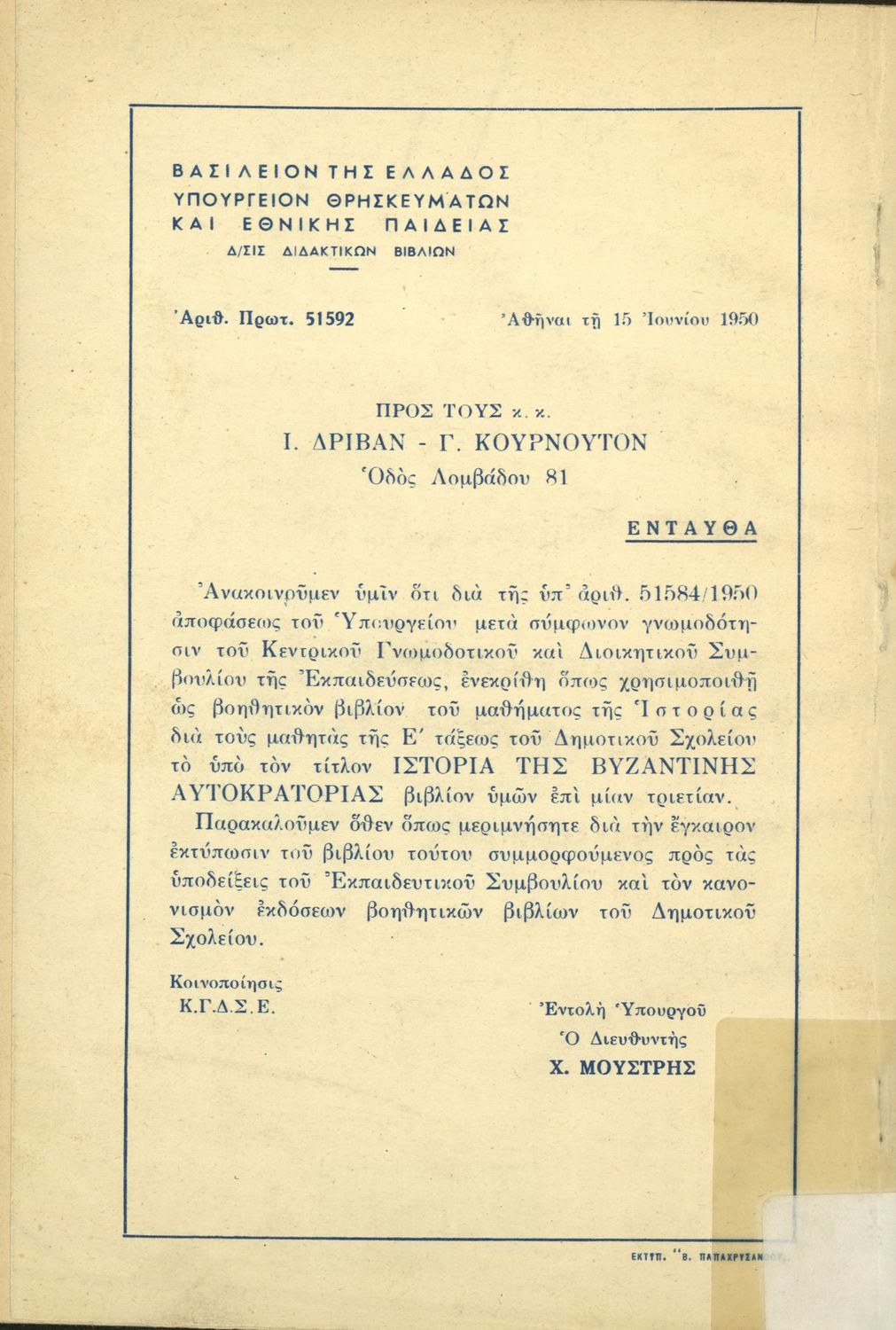 Τίτλος: Βυζαντινή ιστορία δια την Ε΄ τάξιν του Δημοτικού Σχολείου