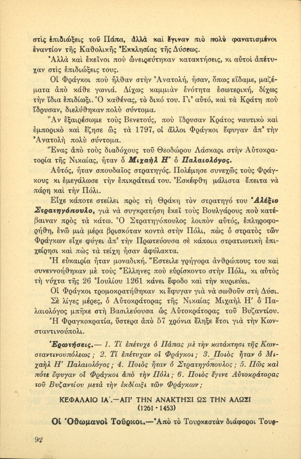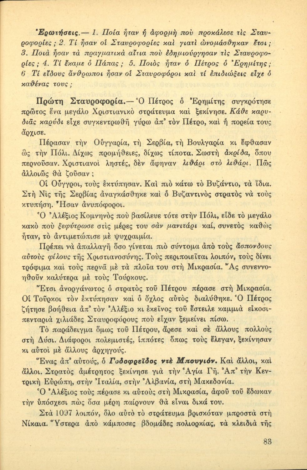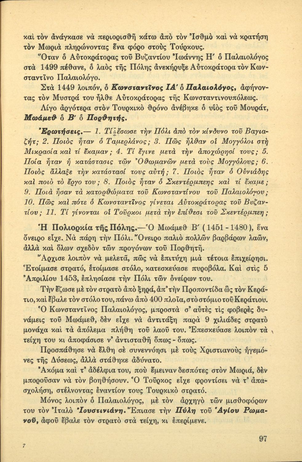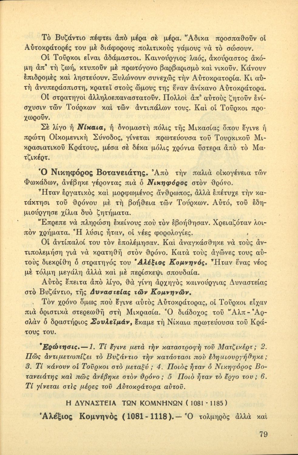 Σχολικό εγχειρίδιο για το μάθημα της Ιστορίας στους μαθητές του Δημοτικού. Αναφέρεται στα χρόνια της Βυζαντινής Αυτοκρατορίας μέχρι και την άλωση της Πόλης. Το τελευταίο κεφάλαιο αναφέρεται στα επιτεύγματα της