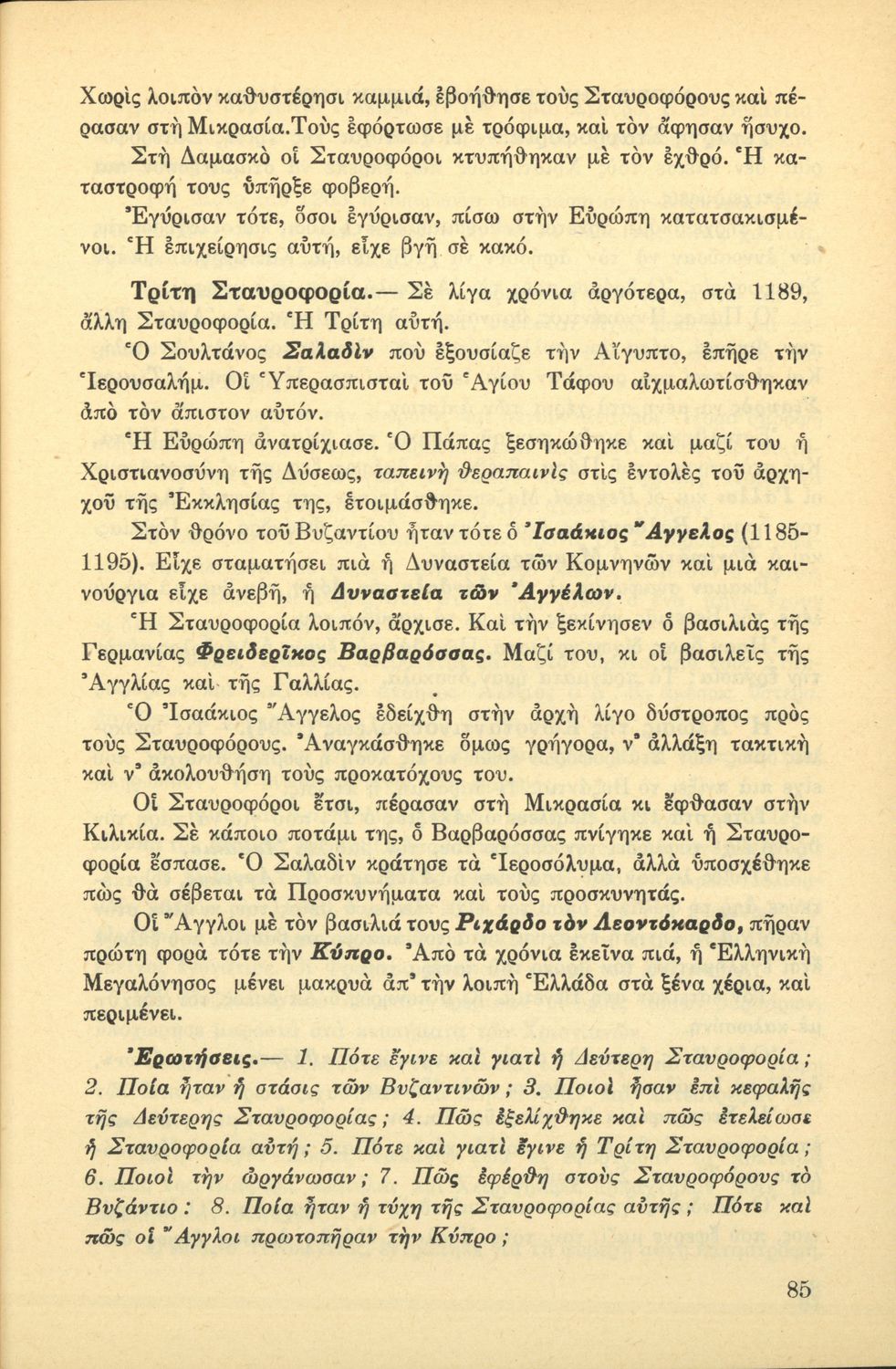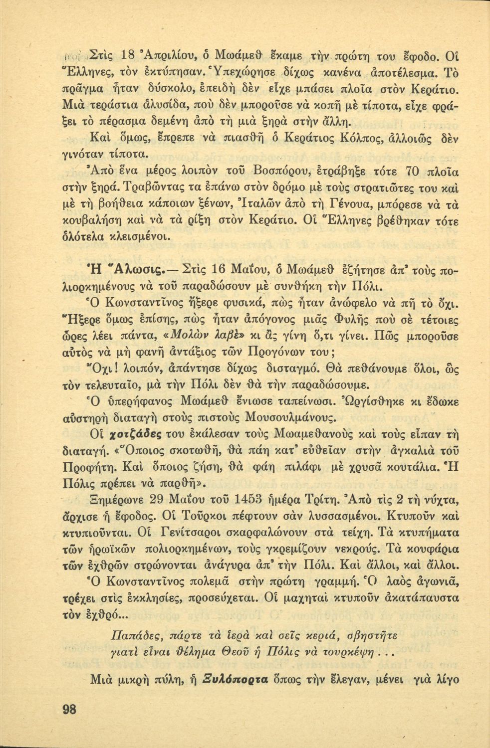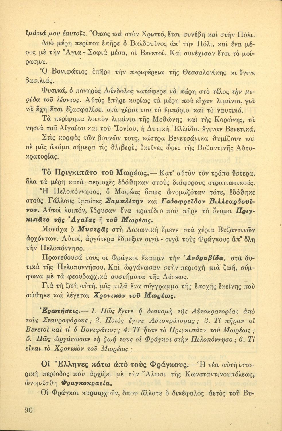 Σχολικό εγχειρίδιο για το μάθημα της Ιστορίας στους μαθητές του Δημοτικού. Αναφέρεται στα χρόνια της Βυζαντινής Αυτοκρατορίας μέχρι και την άλωση της Πόλης. Το τελευταίο κεφάλαιο αναφέρεται στα επιτεύγματα της
