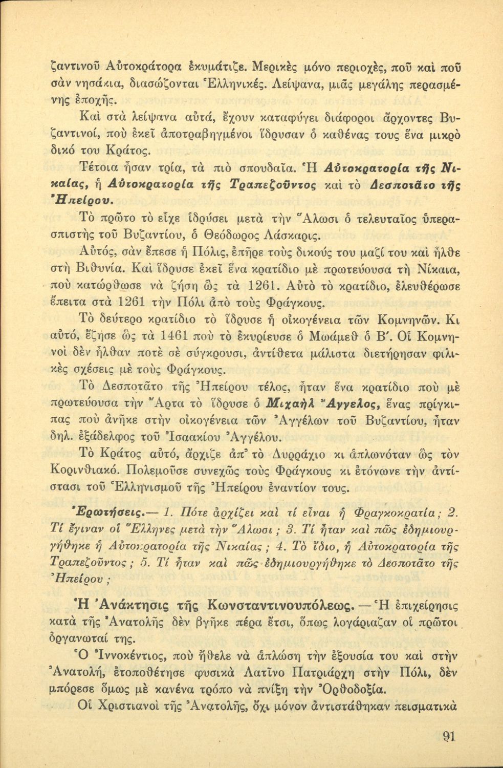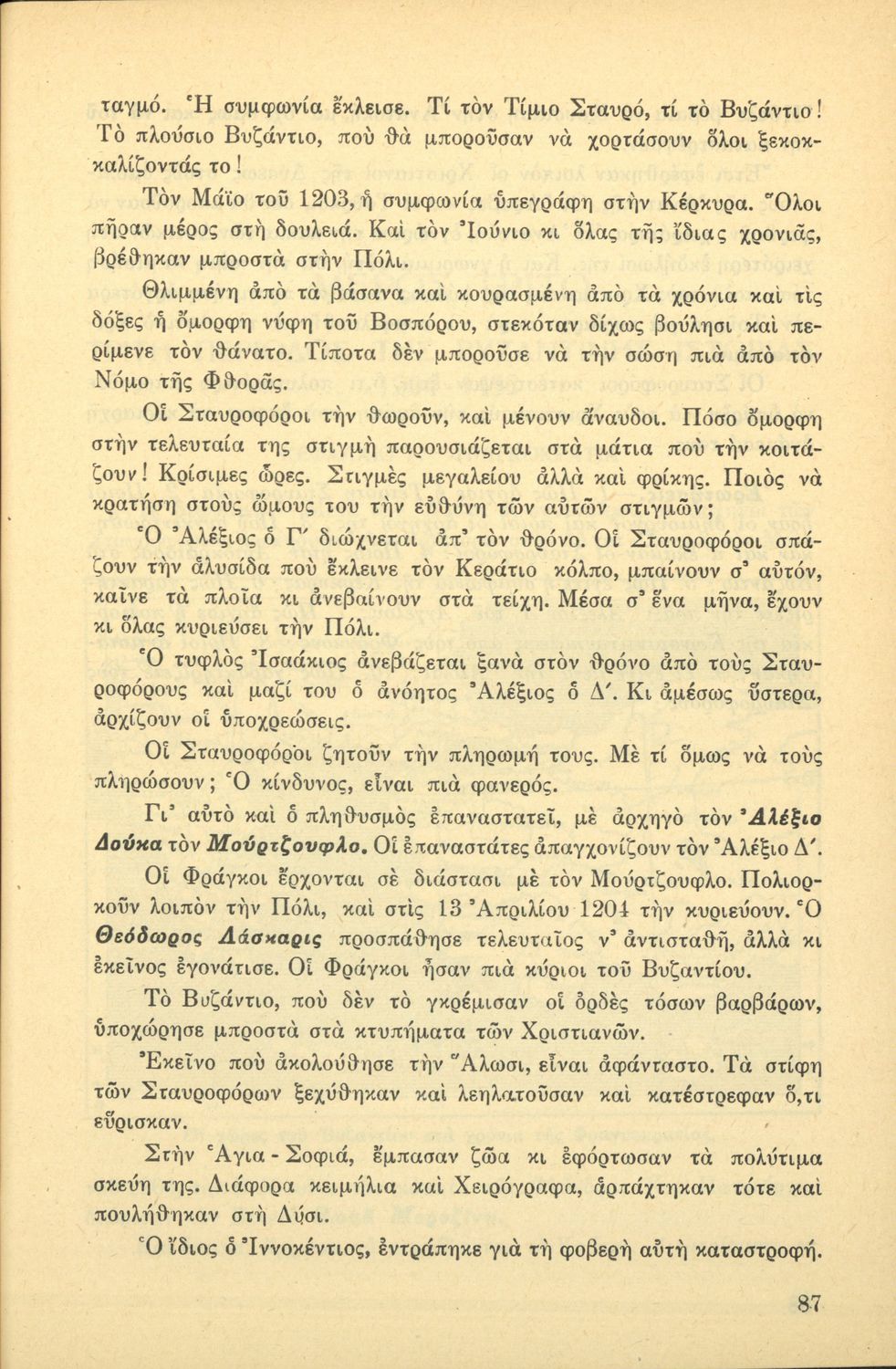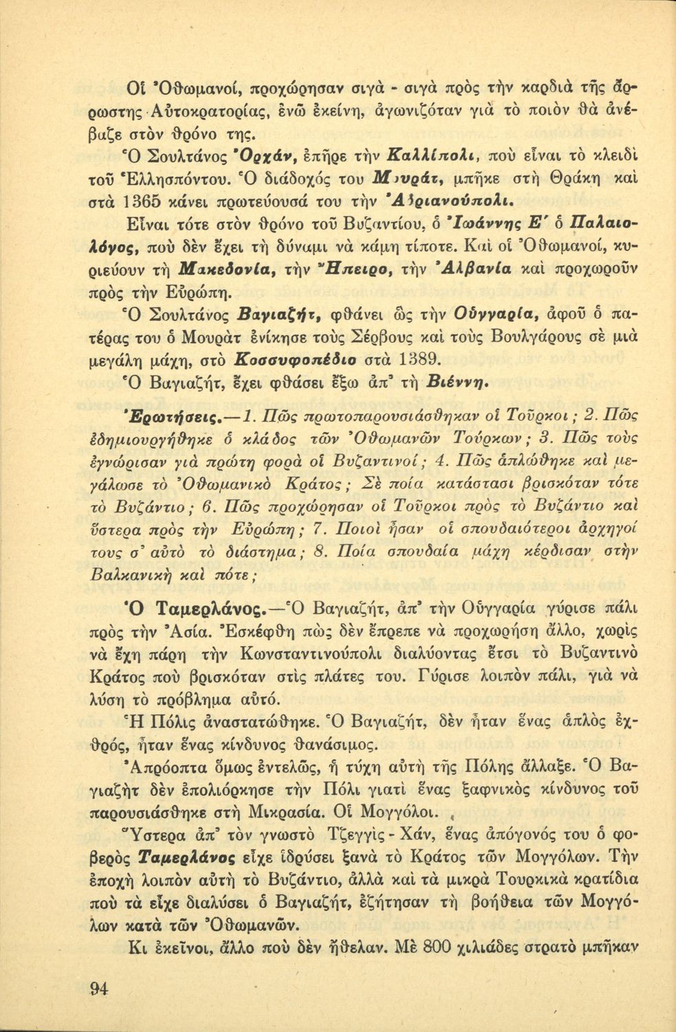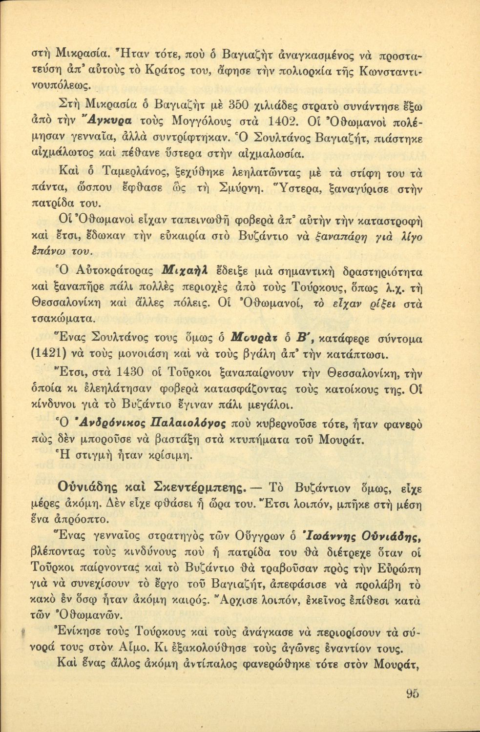 Σχολικό εγχειρίδιο για το μάθημα της Ιστορίας στους μαθητές του Δημοτικού. Αναφέρεται στα χρόνια της Βυζαντινής Αυτοκρατορίας μέχρι και την άλωση της Πόλης. Το τελευταίο κεφάλαιο αναφέρεται στα επιτεύγματα της