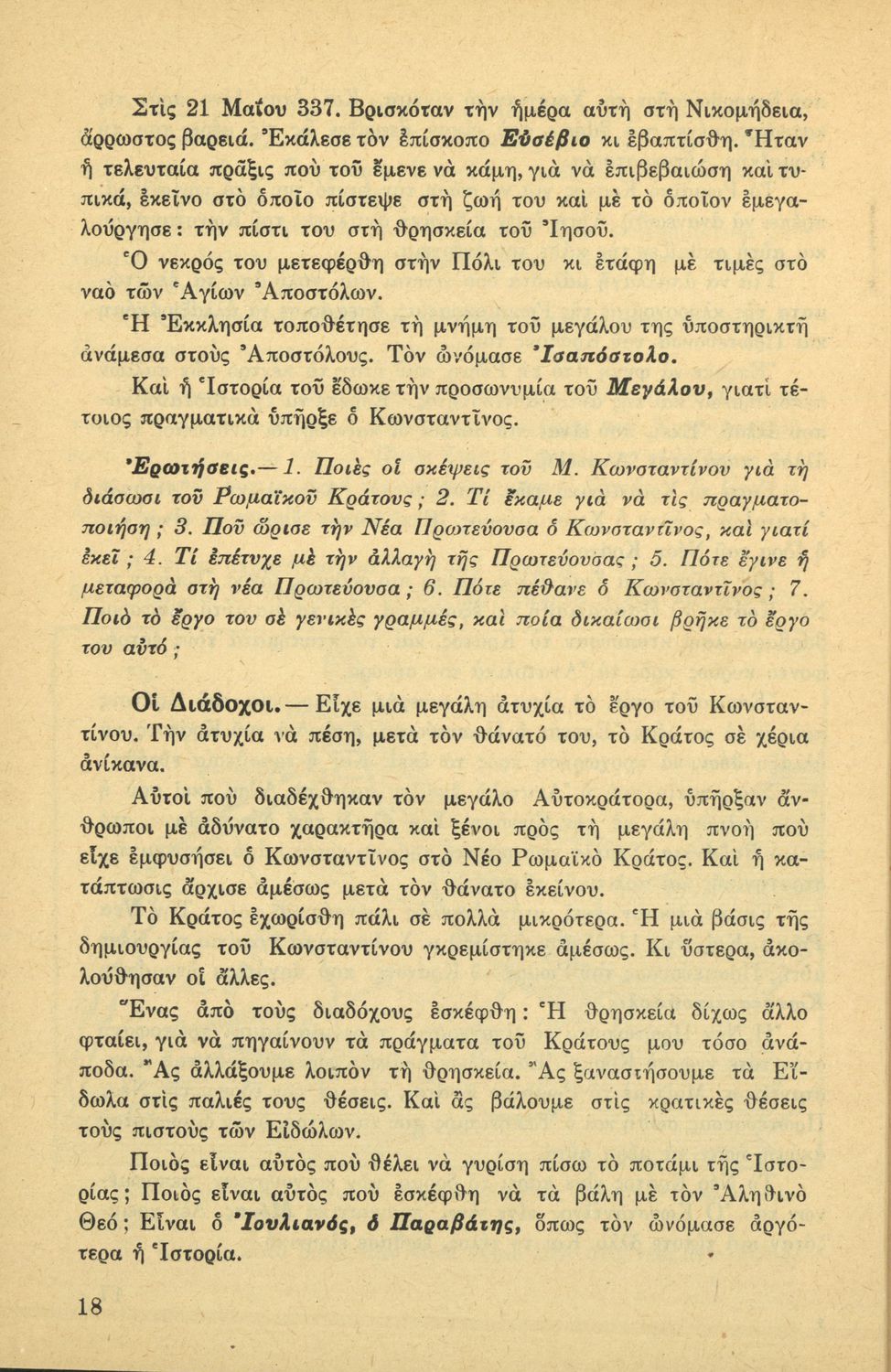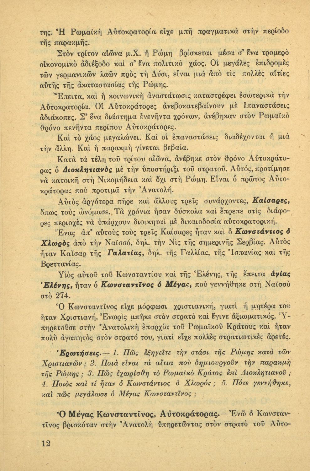 LDR 01170 2200205 4500 035 ## _a01-18544 040 ## _aΙνστιτούτο Εκπαιδευτικής Πολιτικής 041 ## _ael 100 ## _aΓ. Π. Κουρνούτος _aΙ. Γ. Δρίβας 110 ## _a18544 245 0# _aΒυζαντινή ιστορία δια την Ε΄ τάξιν του Δημοτικού Σχολείου 260 ## _aΑθήνα _bΙωάννης Δ. Κολλάρος και ΣΙΑ _c1950 300 ## _a111 _bΕξώφυλλο (έγχρωμο), Σκίτσα (ασπρόμαυρα) _c21 520 ## _aΜαθητικό βοήθημα Ιστορίας Ε΄ Δημοτικού που καλύπτει την περίοδο από την ίδρυση της Ρώμης μέχρι την Αναγέννηση. 521 ## _aΕ' Δημοτικού 522 ## _aΕλλάδα 546 ## _aΔημοτική με στοιχεία καθαρεύουσας 563 ## _aΜαλακό Εξώφυλλο 583 ## _a51592/15-6-1950 _c1950 650 #4 _aΙουστινιανός _aΚολόμβος _aΚωνσταντίνος Παλαιολόγος _aΜέγας Κωνσταντίνος _aΧριστιανισμός