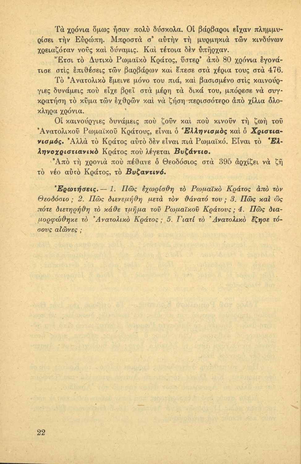 Βαθμίδα εκπαίδευσης: Πρωτοβάθμια Τάξη: Ε' Δημοτικού Μάθημα: Ιστορία Γλώσσα: Δημοτική με στοιχεία καθαρεύουσας Παρουσίαση περιεχομένου: Μαθητικό βοήθημα Ιστορίας Ε΄ Δημοτικού που καλύπτει την περίοδο από την ίδρυση της Ρώμης μέχρι την Αναγέννηση. |