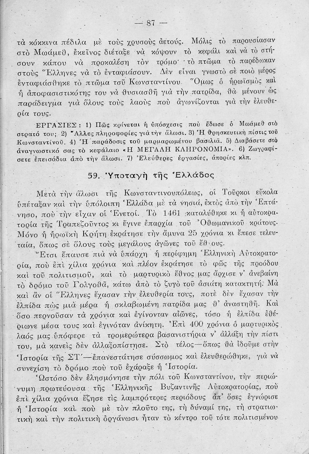 Σχολικό εγχειρίδιο για το μάθημα της Ιστορίας στους μαθητές του Δημοτικού. Αναφέρεται στα χρόνια της Βυζαντινής Αυτοκρατορίας μέχρι και την άλωση της Πόλης. Το τελευταίο κεφάλαιο αναφέρεται στα επιτεύγματα της