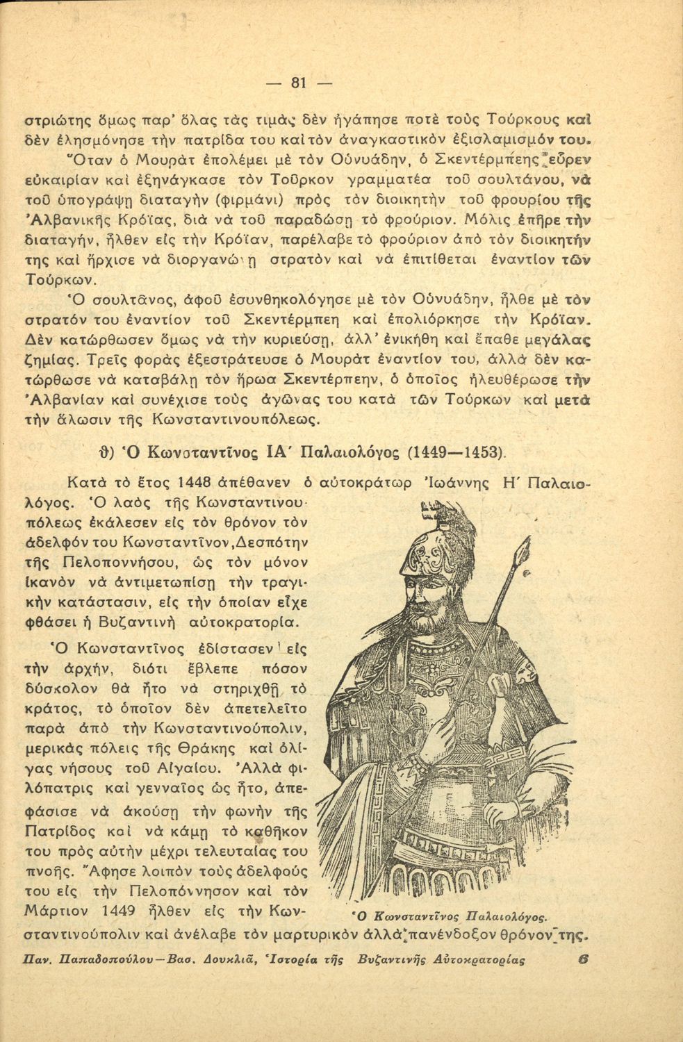 Σχολικό εγχειρίδιο για το μάθημα της Ιστορίας στους μαθητές του Δημοτικού. Αναφέρεται στα χρόνια της Βυζαντινής Αυτοκρατορίας μέχρι και την άλωση της Πόλης. Το τελευταίο κεφάλαιο αναφέρεται στα επιτεύγματα της