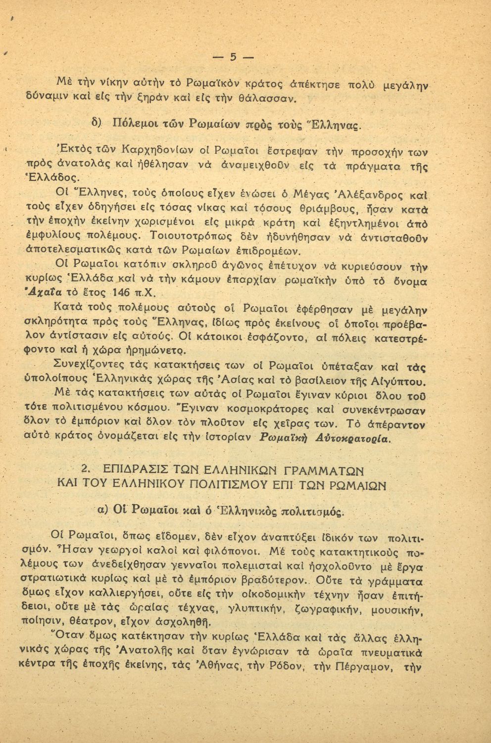Βαθμίδα εκπαίδευσης: Πρωτοβάθμια Τάξη: Ε' Δημοτικού Μάθημα: Ιστορία Γλώσσα: Απλή καθαρεύουσα Παρουσίαση περιεχομένου: Μαθητικό βοήθημα Ιστορίας Ε΄ Δημοτικού που καλύπτει το διάστημα από την ίδρυση της Ρωμαϊκής Αυτοκρατορίας ως την Αναγέννηση. |