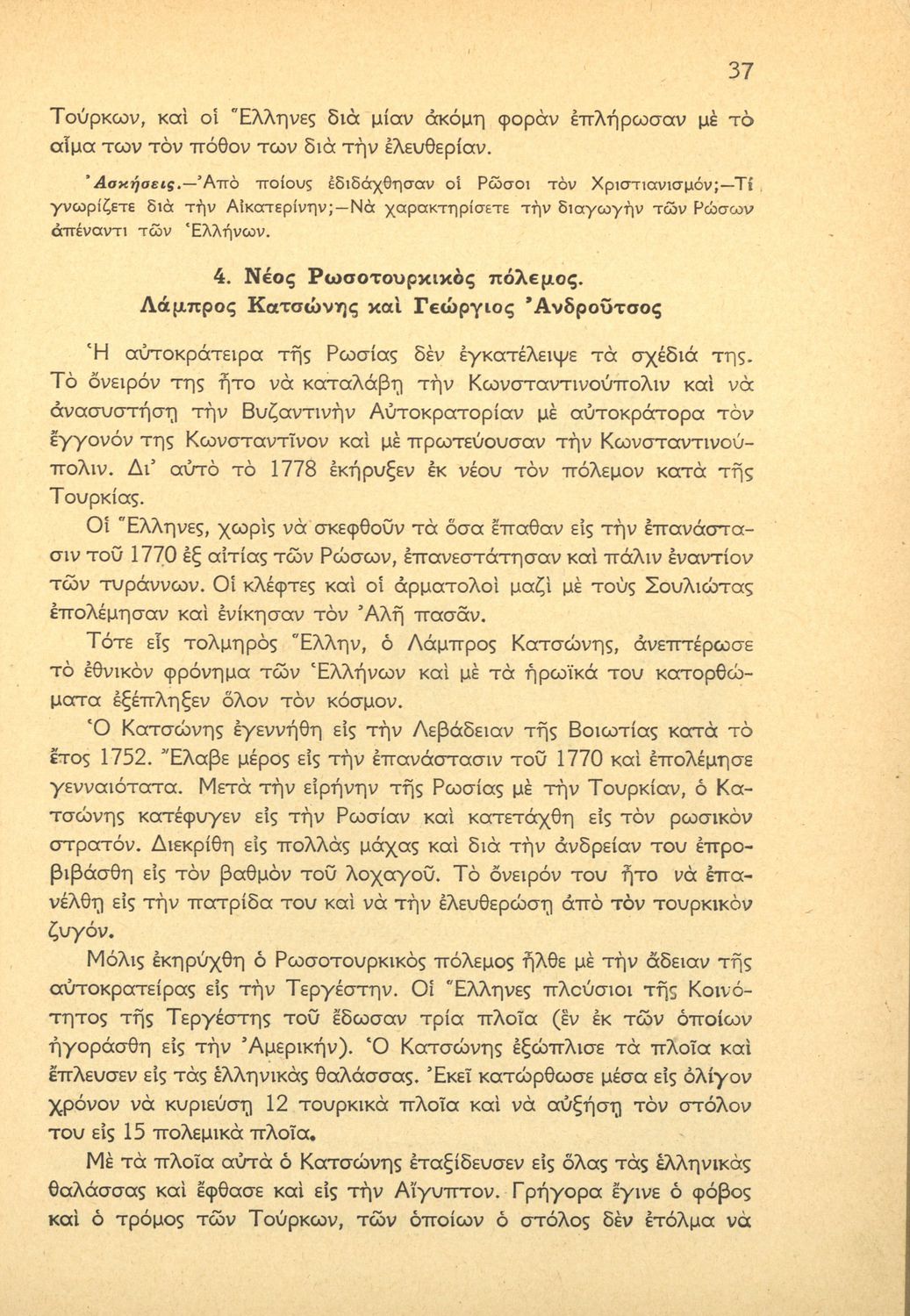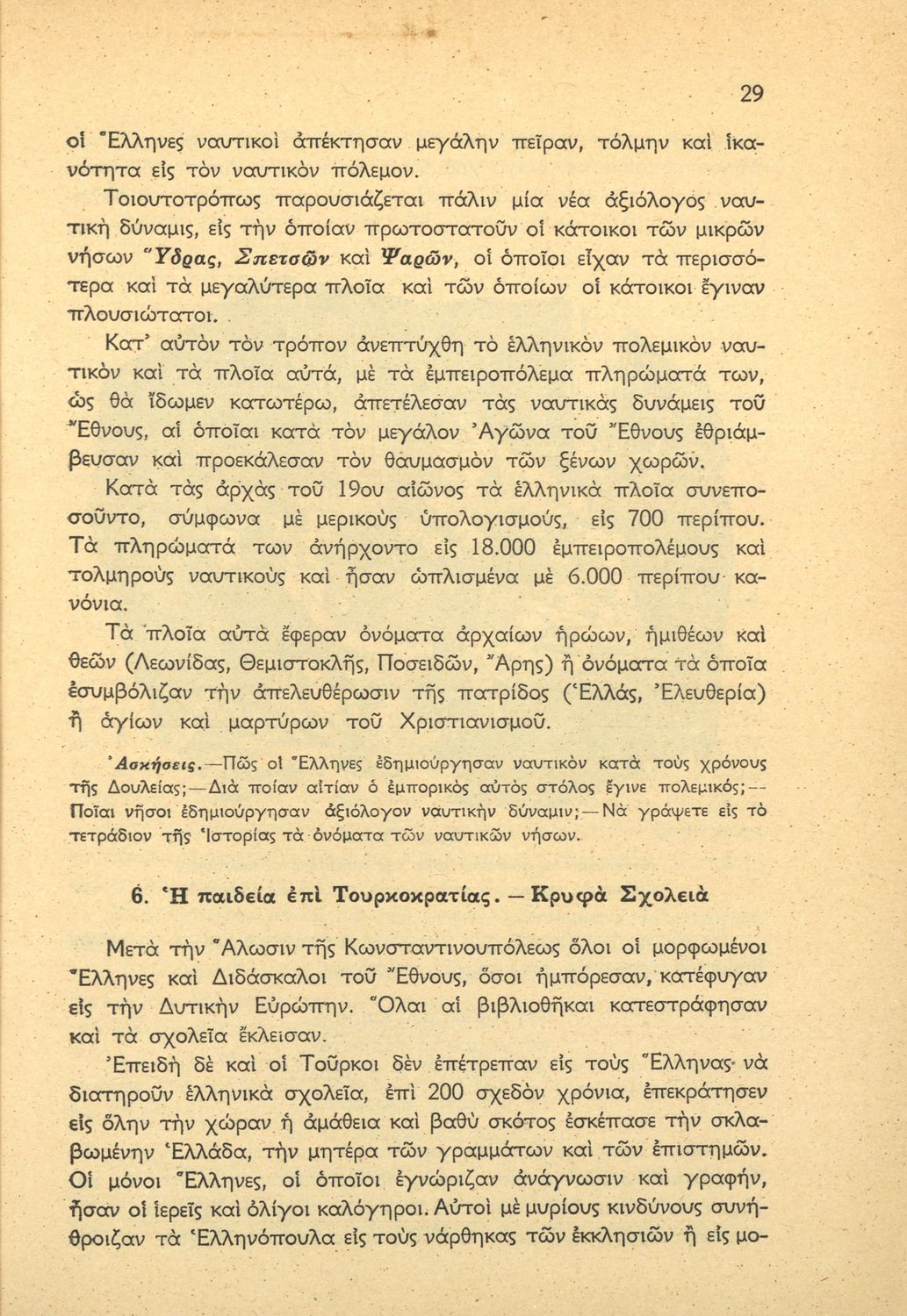 Βαθμίδα εκπαίδευσης: Πρωτοβάθμια Τάξη: ΣΤ' Δημοτικού Μάθημα: Ιστορία Γλώσσα: Απλή καθαρεύουσα Παρουσίαση περιεχομένου: Μαθητικό βοήθημα Ιστορίας ΣΤ΄ Δημοτικού που καλύπτει το διάστημα από την άλωση της Κωνσταντινούπολης ως τη βασιλεία του Γεωργίου Α΄ . |