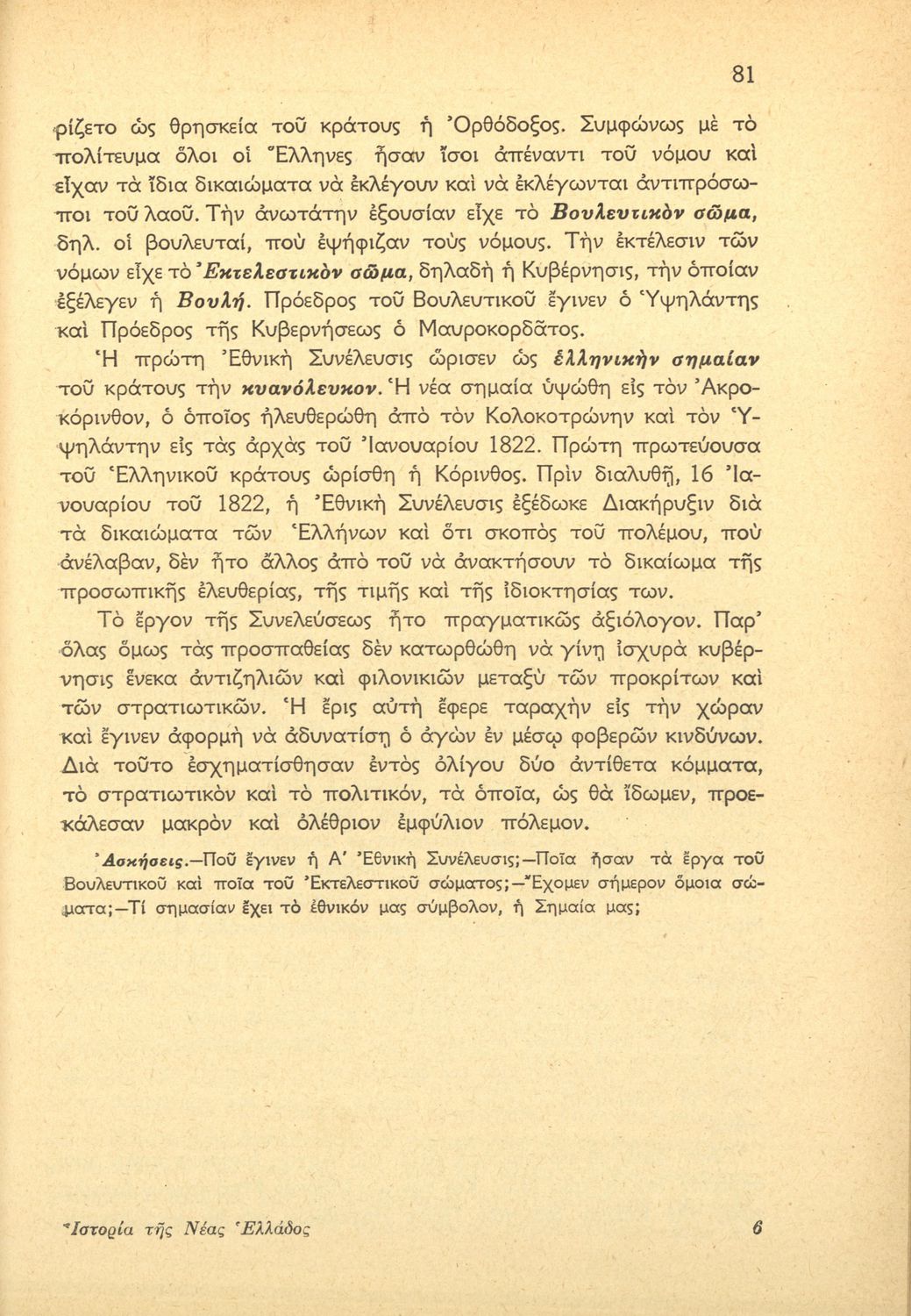 Σχολικό εγχειρίδιο Ιστορίας ΣΤ΄ Δημοτικού που περιλαμβάνει την περίοδο από την Ελληνική Επανάσταση ως τους Βαλκανικούς Πολέμους και την Μικρασιατική καταστροφή.