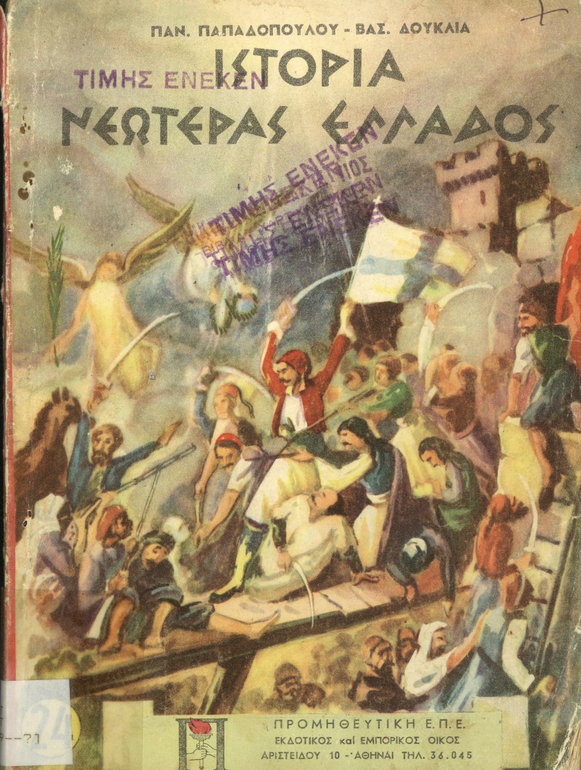Κωδικός αναγνώρισης: 01-18547 Τίτλος: Ιστορία νεωτέρας Ελλάδος δια του μαθητάς της ΣΤ΄ τάξεως των Δημοτικών Σχολείων Συγγραφέας: Παναγιώτης Παπαδόπουλος, Βασίλειος Δούκλιας Μέγεθος και υπόστρωμα: Μαθητικό βοήθημα, 21εκ., μαλακό εξώφυλλο, 148 σελίδες. Εξώφυλλο (έγχρωμο), σκίτσα (ασπρόμαυρα). |