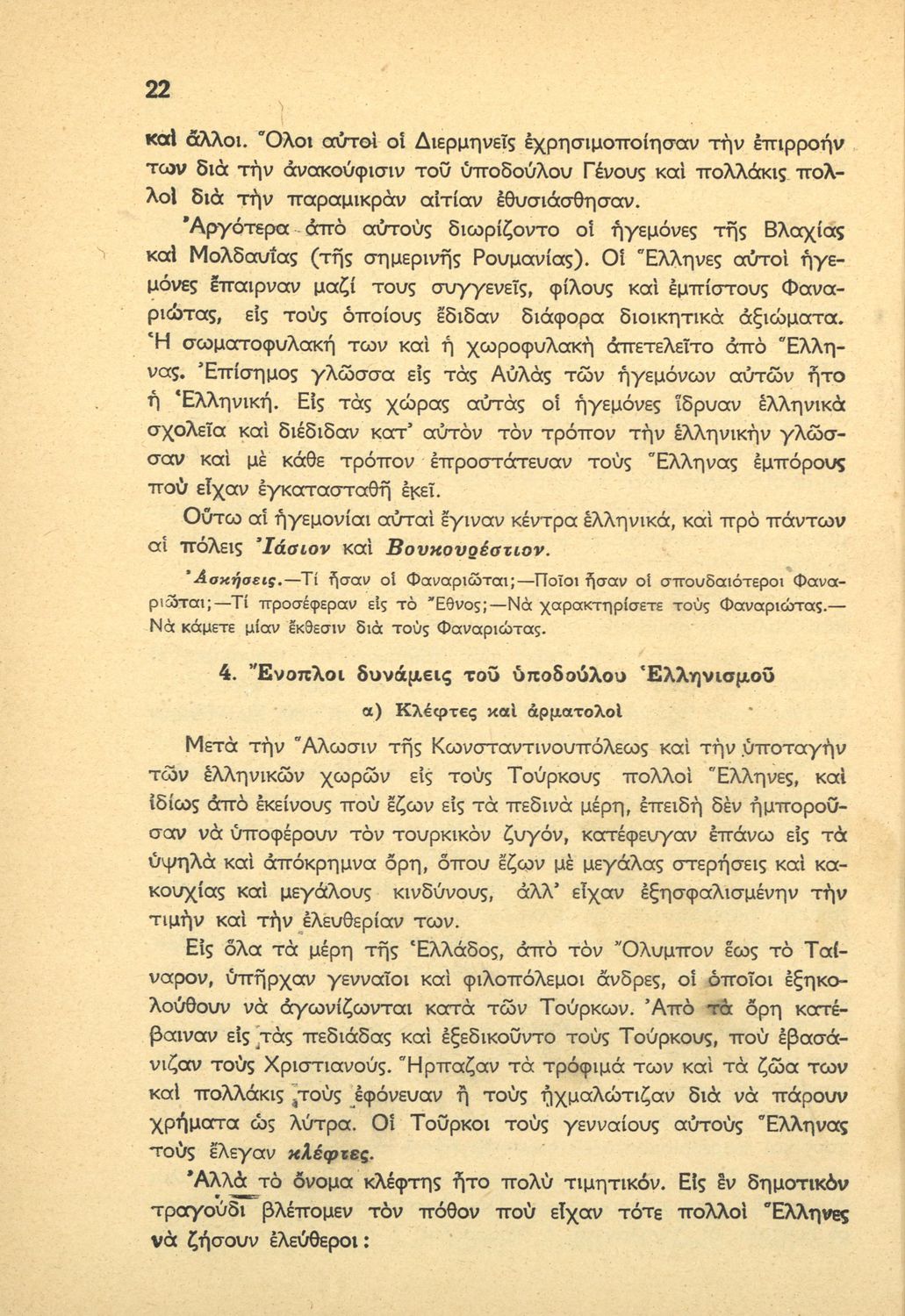Βαθμίδα εκπαίδευσης: Πρωτοβάθμια Τάξη: ΣΤ' Δημοτικού Μάθημα: Ιστορία Γλώσσα: Απλή καθαρεύουσα Παρουσίαση περιεχομένου: Μαθητικό βοήθημα Ιστορίας ΣΤ΄ Δημοτικού που καλύπτει το διάστημα από την άλωση της Κωνσταντινούπολης ως τη βασιλεία του Γεωργίου Α΄ . |