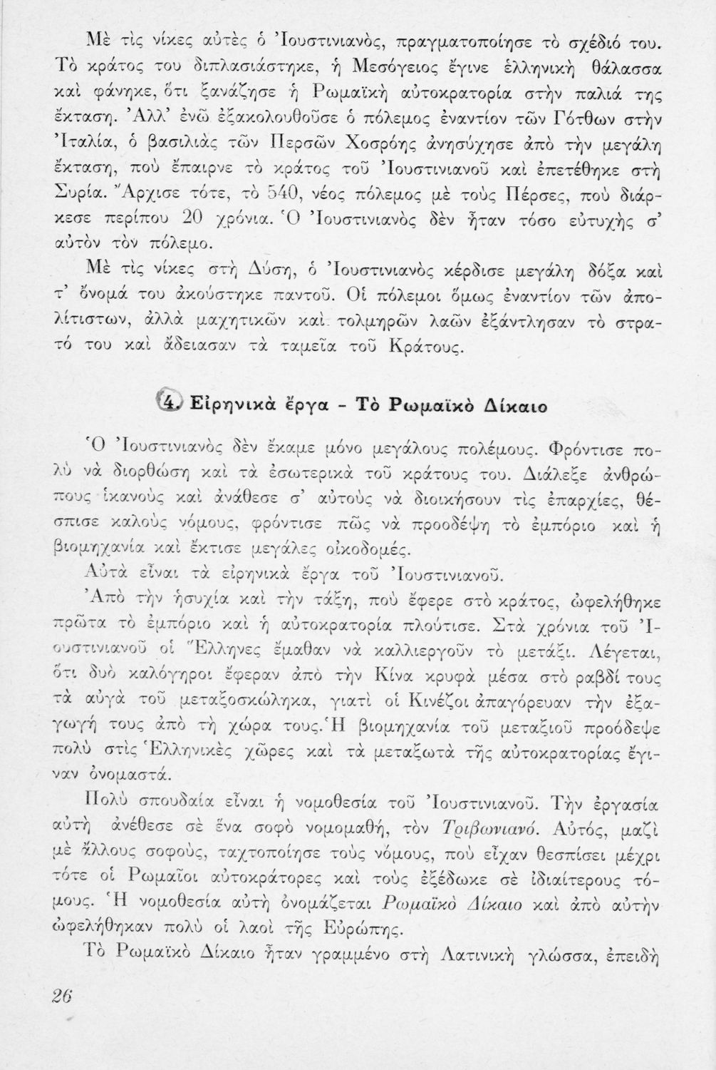 Μαθητικό βοήθημα Ιστορίας Δ΄ Δημοτικού που καλύπτει την περίοδο της Ρωμαϊκής και Βυζαντινής Αυτοκρατορίας μέχρι και την άλωση της Κωνσταντινούπολης. Ο συγγραφέας ήταν επιθεωρητής Δημοτικών Σχολείων.
